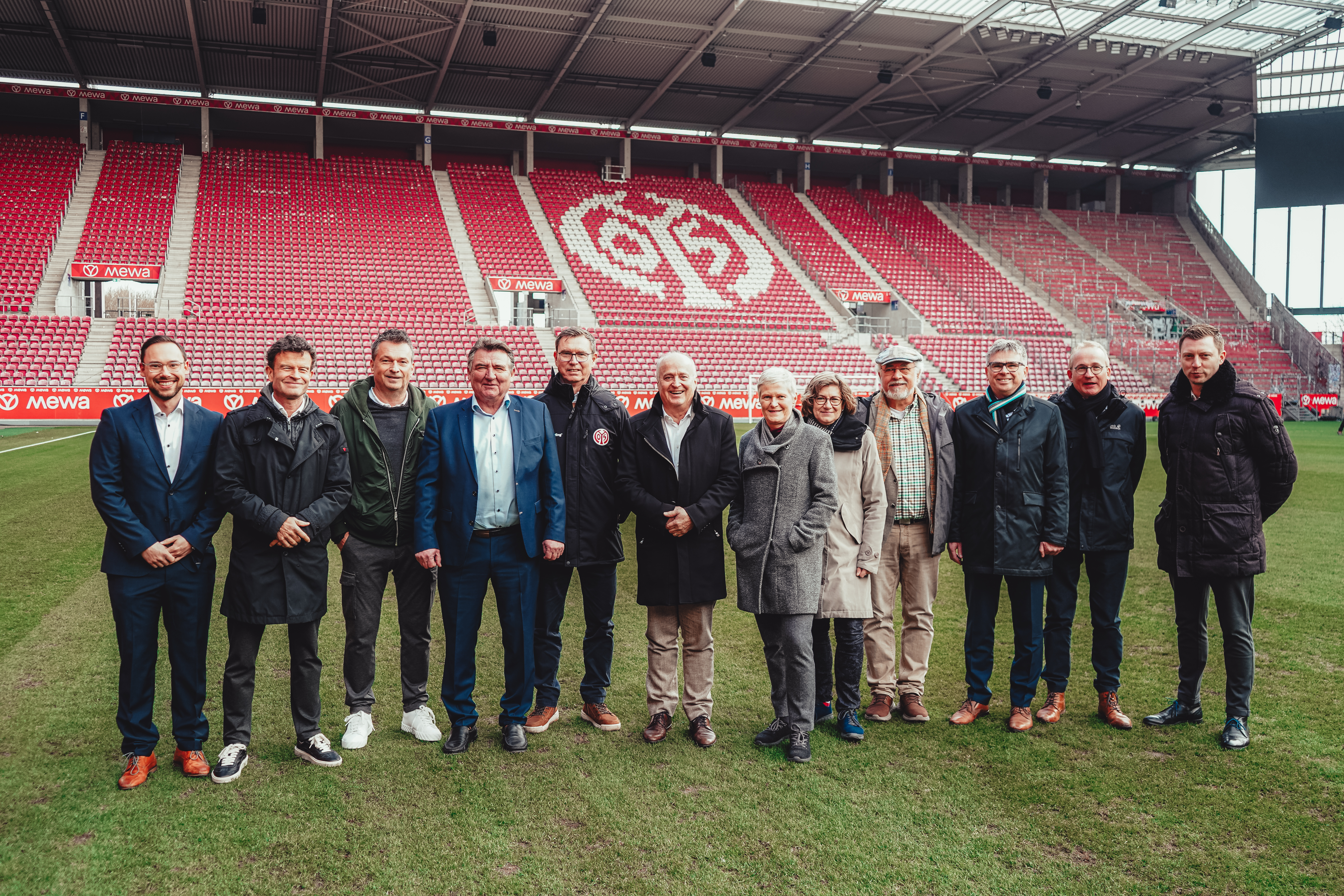 Stellvertretend für die Stadt unterzeichneten Sport- und Finanzdezernent Günter Beck und Franz Ringhoffer, Geschäftsführer der Grundstücksverwaltungsgesellschaft der Stadt Mainz, den Vertrag. Die GVG war Bauherrin der 2011 eröffneten Arena.