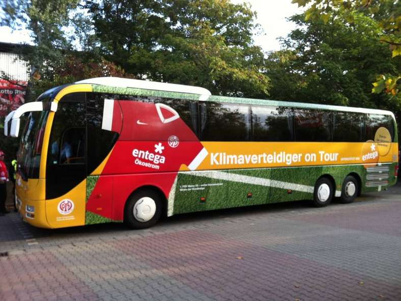 Das gemeinsame Engagement von ENTEGA und Mainz 05 trägt erste Früchte. Der neue CO2-Fußabdruck, der durch das Ökoinstitut e.V. Darmstadt erstellt worden ist, hat aufgezeigt, dass seit dem Umzug in die Coface Arena deutlich mehr Fans klimafreundlich zu den Heimspielen anreisen. Rund 60 Prozent der Zuschauer in der Coface Arena reisen mit öffentlichen Verkehrsmitteln an – ein toller Erfolg. Am Bruchweg war der Anteil der mit öffentlichen Verkehrsmitteln anreisenden Anhänger weitaus geringer. Und auch bei den Fanfahrten zu den Auswärtsspielen konnten im Vergleich zur Saison 2010/2011 deutliche Einsparungen beim CO2-Ausstoß erzielt werden.