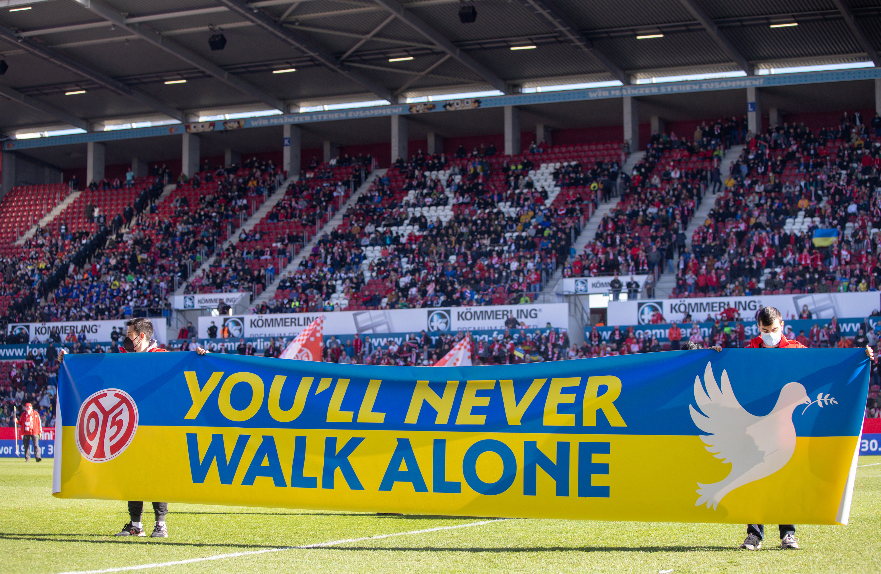 Der Fußball lebt von Ritualen. Wenn wenige Minuten vor Spielbeginn aus tausenden Kehlen das "You’ll Never Walk Alone“ in der MEWA ARENA erklingt, dann ist das eine in Mainz adaptierte und weiterentwickelte Tradition zur Einstimmung auf das bevorstehende Spiel. An diesem Sonntag allerdings mit einem entscheidenden Unterschied: Der Song, der in der Version von Gerry & The Pacemakers aus dem Jahr 1963 in Fußballstadien Berühmtheit erlangte, läuft vor dem Heimspiel gegen den SC Freiburg nicht aus dem Computer, sondern wird im Rahmen der Aktion "One Voice“ live von Musikern der Band Firma4i aus dem ukrainischen Charkiw gespielt und in die Arena gestreamt.