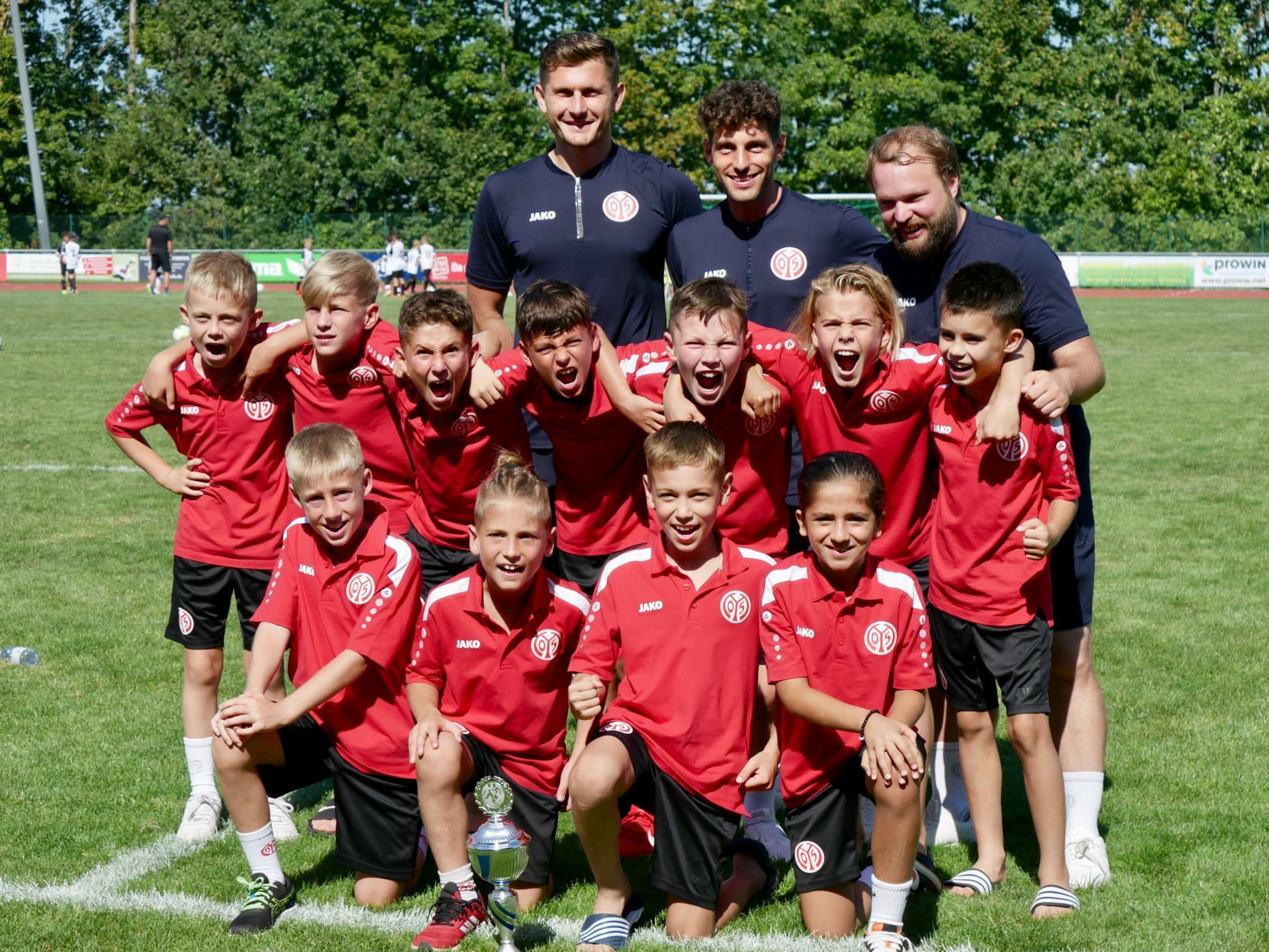 U12: Beim 7. Joe Penas Cup in Waiblingen qualifizierten sich die 05ER nach der Gruppenphase für die Goldrunde. In sechs überzeugenden Spielen gegen Ferencvaros Budapest, Wuppertaler SV, Grashoppers Zürich und den VfB Stuttgart zog das Team von Benny Hahn und Martin Leibold als Gruppenerster ins Halbfinale ein. Dank eines starken Auftritts gegen PAOK Saloniki buchten die Mainzer auch die Finalteilnahme. Leider konnte sich die U12 für ihren tollen Auftritt im Finale nicht belohnen und belegte als offensivstärkstes Team den 2. Platz.