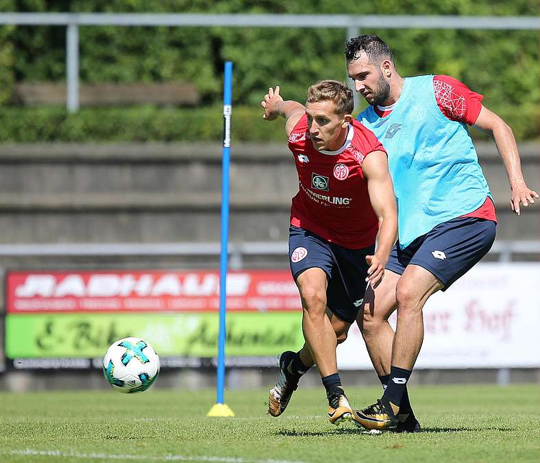 Als frisch gebackener Doppel-Europameister feierte Levin Öztunali zu Beginn des Trainingslagers der 05er in Grassau seinen Wiedereinstand im Teamtraining. 2014 war der 21-jährige Mittelfeldspieler mit den U19-Junioren des DFB Europameister geworden. Ende Juni 2017 nun krönte er seine Karriere im Juniorenauswahlbereich mit dem Europameisterschaftstitel mit der U21 unter Trainer Stefan Kuntz. Die Vorbereitung auf das Turnier in Polen hatte er in Grassau absolviert, im Golfressort Achental, wohin er am Montagvormittag zurückgekehrt ist.