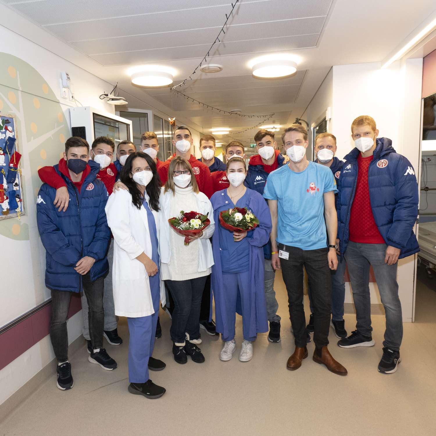 Auch in diesem Jahr verbrachte das Team der U23 einen Nachmittag in der Kinderklinik der Mainzer Unimedizin. Trainer, Spieler und Staff der höchsten Ausbildungsmannschaft aus dem Nachwuchsleistungszentrum von Mainz 05 besuchten am Dienstag die verschiedenen Stationen, um den jungen Patientinnen und Patienten eine kleine vorweihnachtliche Freude zu bereiten und in ihrem nicht immer leichten Alltag in der Klinik für eine kleine Abwechslung zu sorgen.