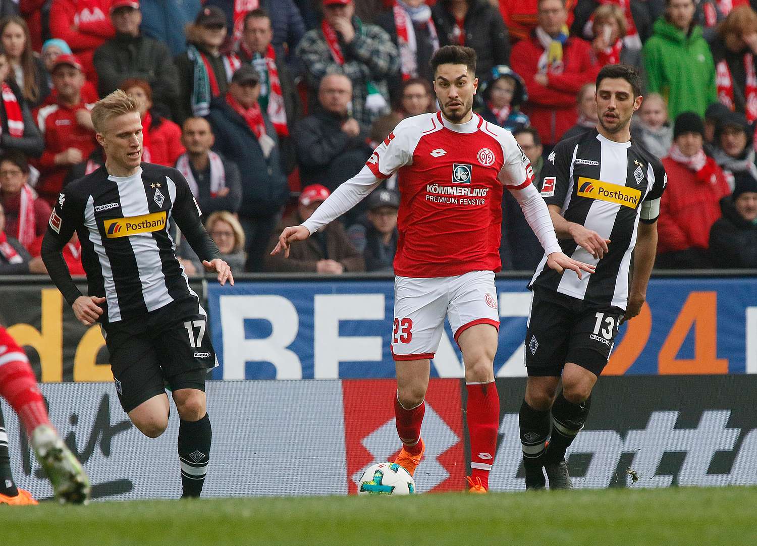 In einer stimmungsvollen OPEL ARENA entwickelte sich am Ostersonntag sofort eine intensive Partie, in der Torchancen zunächst rar gesät waren. Die erste Möglichkeit hatten nach zehn Minuten die Gäste, als Patrick Herrmann zurücklegte auf Raffel, dessen Schuss aber am linken Pfosten vorbeirauschte. Die erste Gelegenheit für die 05er hatte sieben Minuten später Kapitän Stefan Bell. Yann Sommer konnte den 30-Meter-Kracher aber entschärfen (17.). Die Mainzer waren in der Folge gut im Spiel und hätten nach einer knappen halben Stunde erneut in Führung gehen können. Giulio Donati chippte das Leder auf De Blasis, der ablegte für Danny Latza, doch der Schuss landete knapp über dem Querbalken. Kurz darauf hatte der FSV Glück, dass Donati eine Direktabnahme von Oscar Wendt nach Flanke von Gäste-Kapitän Lars Stindl blocken konnte (32.). Ein Schlenzer des Vorlagengebers sieben weitere Minuten später verfehlte das Ziel dann deutlich (39.). Auf der gegenüberliegenden Seite entschäfte Sommer gut drei Minuten vor der Pause einen Versuch von Öztunali, der von Suat Serdar bedient worden war (42.). Für die Gäste-Führung hätte im Gegenzug Thorgan Hazard sorgen können, der frei auf Adler zulief, aber quer und zudem ungenau spielte, anstatt selbst den Abschluss zu suchen, so dass es vor 30.173 Zuschauern mit dem torlosen Remis in die Katakomben ging.