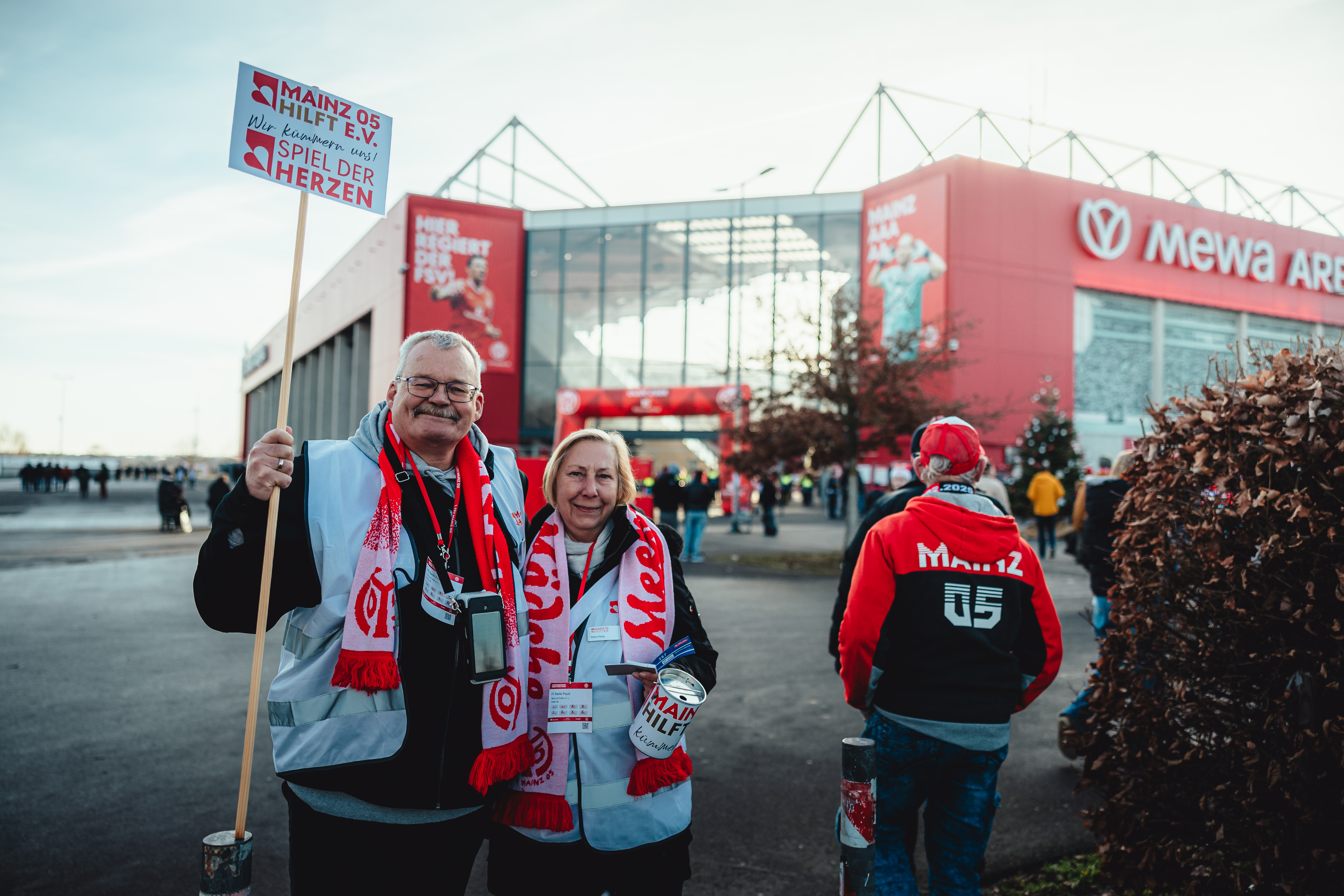 Beim Spiel der Herzen hat der Fußball-Bundesligist mit seinem karitativen Verein nun schon zum 18. Mal mit der Unterstützung der Fans Spenden für bedürftige Menschen gesammelt. Beteiligt waren die Supporters Mainz, die Fanabteilung, die Sportjugend Rheinland-Pfalz, die Clowndoktoren sowie zahlreiche weitere ehrenamtliche Helferinnen und Helfer. Mitglieder der "AG Soziales Engagement" und der Szene Mainz unterstützten das Spiel der Herzen beispielsweise über die Pfandbechersammlung am Spieltag.