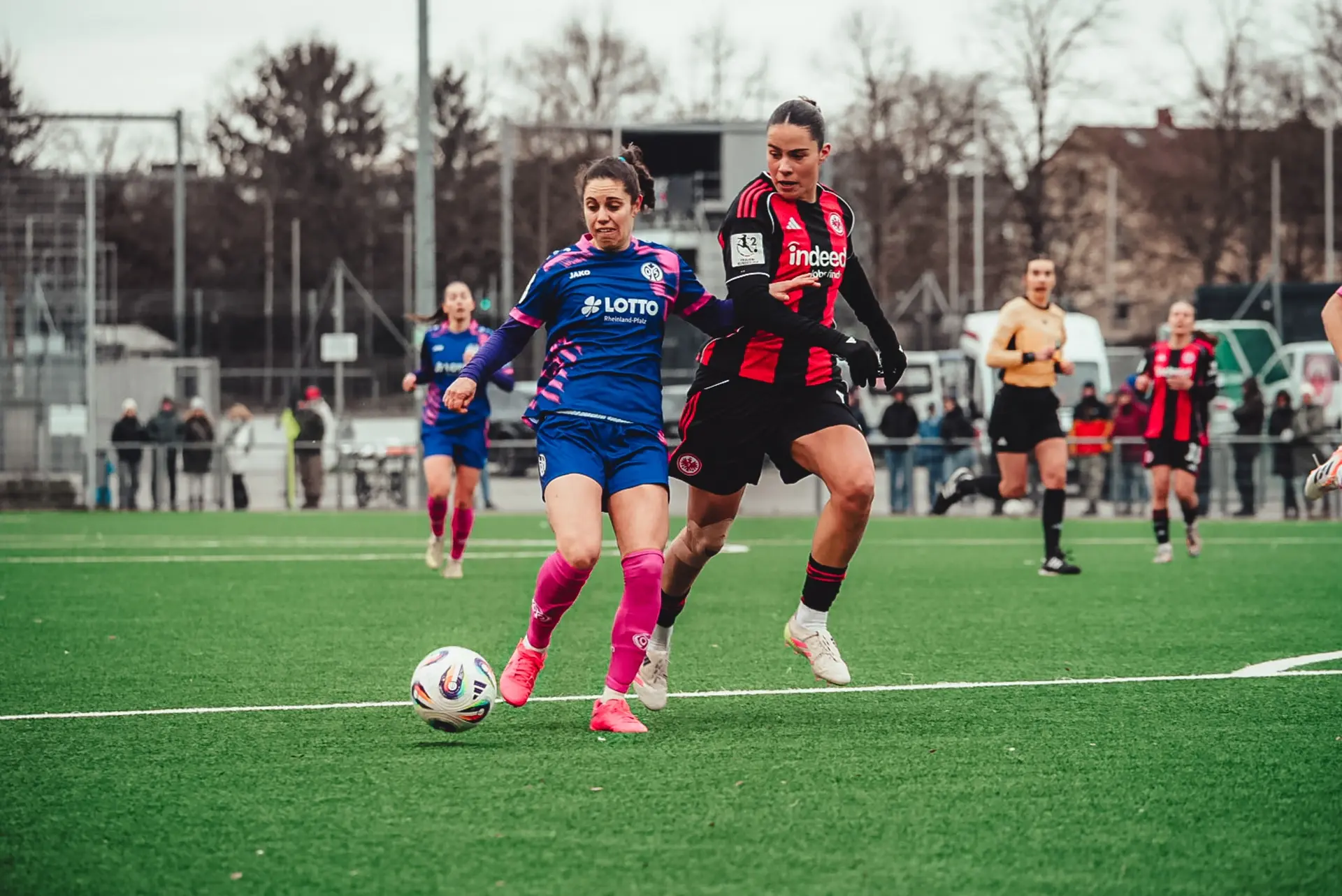 Die Rheinhessinnen bleiben im neuen Jahr weiterhin ohne Pflichtspielsieg: Bei der Zweitvertretung von Eintracht Frankfurt unterlag der FSV am Sonntagnachmittag mit 0:2. Aufgrund einer Gelb-Roten Karte gegen Frankfurts Ilayda Acikgöz in der 40. Spielminute waren die Mainzerinnen zwar für einen Großteil der Partie in Überzahl, konnten diesen Vorteil aber nicht für sich nutzen. Stattdessen zeigte die Eintracht Kampfgeist und konnte sich zweimal in Person von Mira Arouna belohnen, die der Eintracht mit zwei Toren quasi im Alleingang zum Heimsieg verhalf (67., 84.), während sich die 05-Frauen auch nach dem Rückstand trotz mehr Ballbesitz kaum hochkarätige Chancen herausspielten.