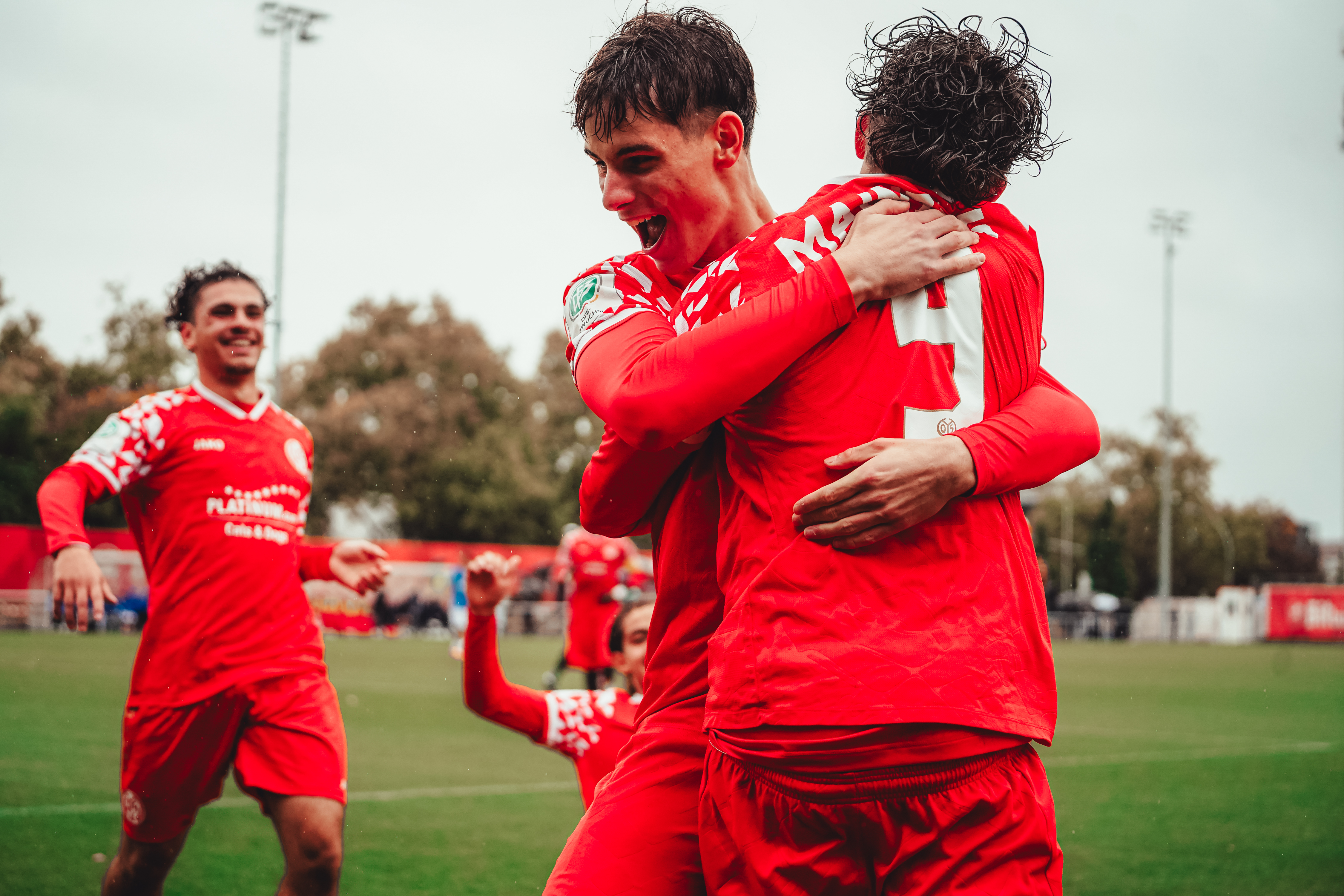 Die dritthöchste Mainzer Ausbildungsmannschaft ist auch in Elversberg erfolgreich und kehrt mit verdienten drei Punkten im Gepäck nach Mainz zurück. Dabei brachte Alessio Kersten den FSV mit seinem frühen Tor zum 1:0 (6.) schnell auf die Siegerstraße, Luca Hampel legte im weiteren Verlauf der ersten Halbzeit gleich doppelt nach (23., 25.). Mit einem bereits nach 45 Minuten hoch verdienten Zwischenstand von 3:0 für die Rot-Weißen ging es zunächst in die Pause, ehe die Gastgeber binnen zwölf Minuten durch die Tore von Ahmad Farokh (46.) und Connor Metzger (56., 58.) ausglichen und die Partie plötzlich wieder völlig offen war. Die 05ER blieben dennoch bei sich, kontrollierten das Spiel weiterhin und erzielten in Person von Yannis Klein das 4:3 aus Sicht der Mainzer (76.), was einen Auswärtssieg für den FSV bedeutete.