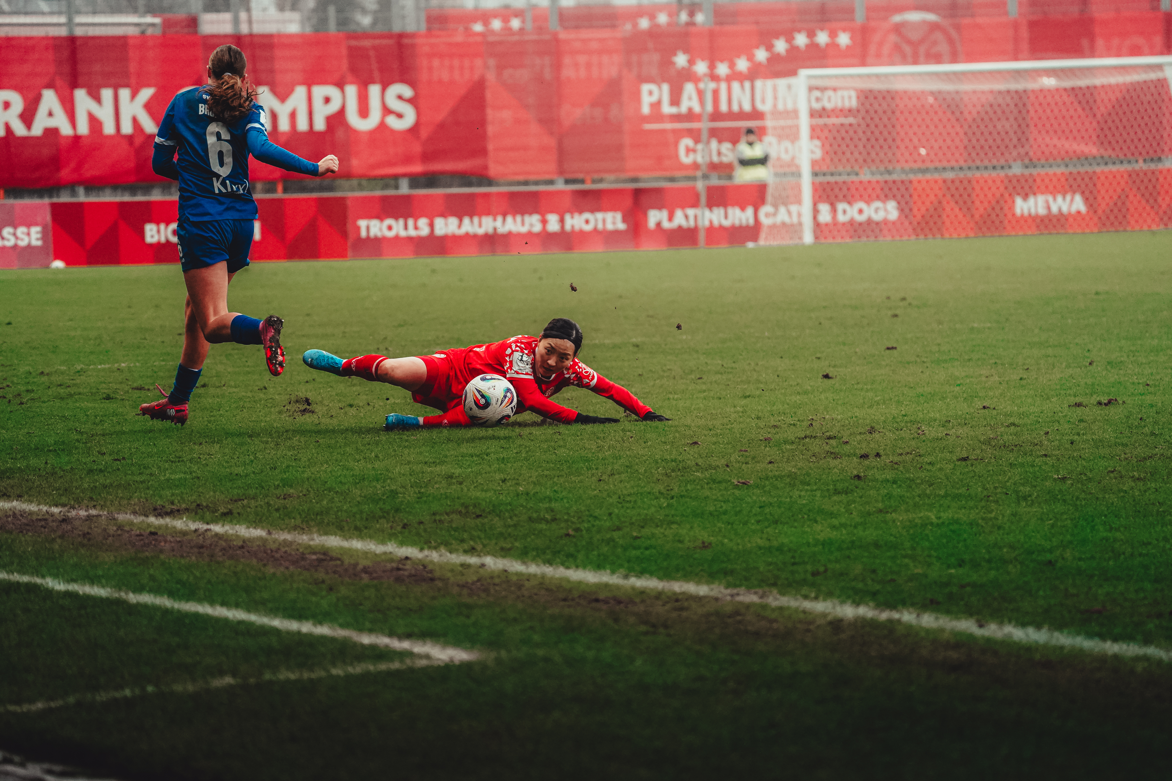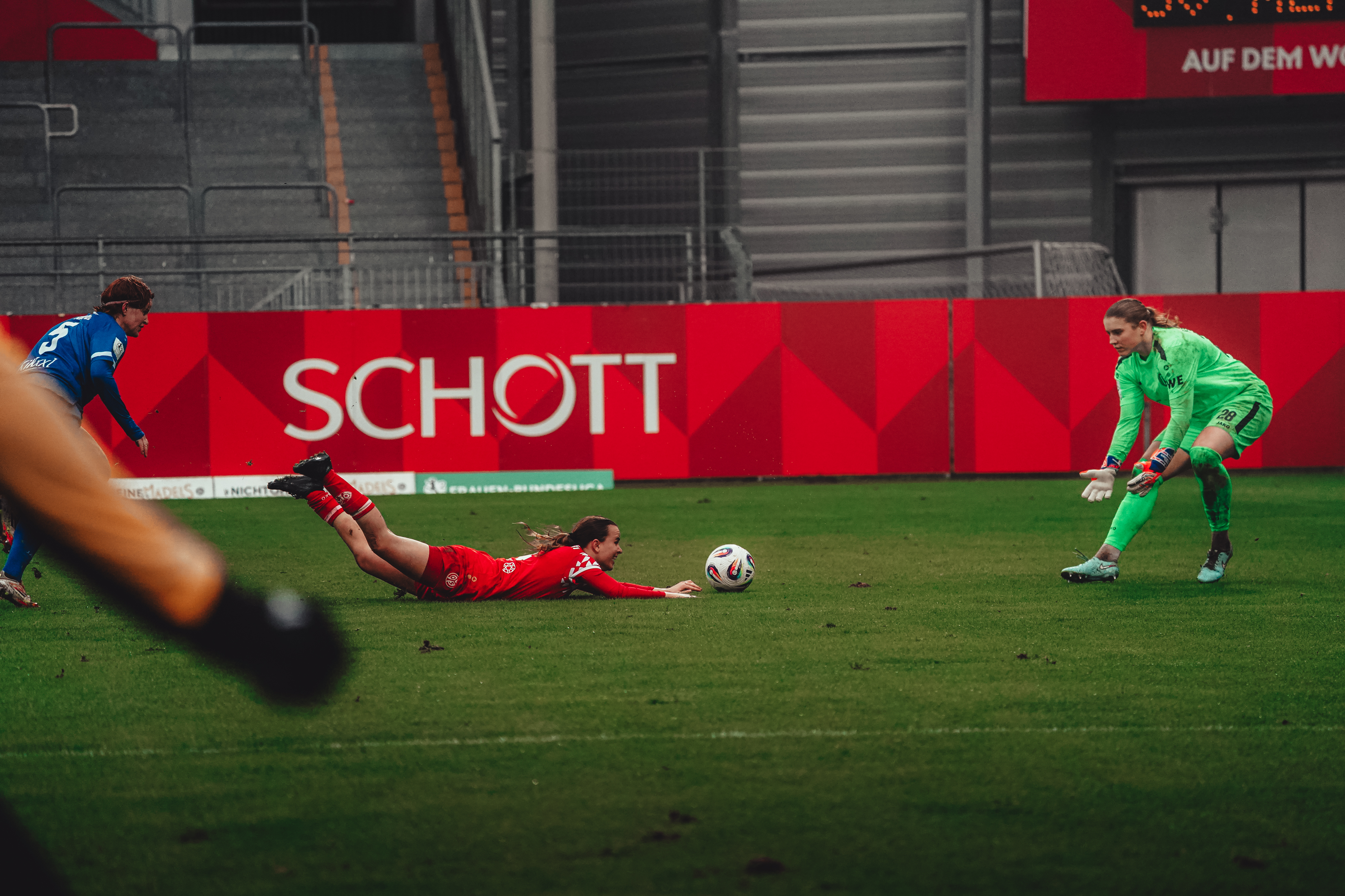 In einem intensiven und unterhaltsamen Heimspiel der Mainzer Frauen gab es im ersten Pflichtspiel des Jahres in der 2. Frauen-Bundesliga keinen Sieger: Nach 90 Minuten lautete der Endstand in der Partie gegen den SV Meppen 0:0. Trotz eines sehr aktiven und griffigen Auftretens der Mainzerinnen sowie zahlreichen Chancen fehlte an diesem Tag vor allem das notwendige Spielglück, um mit einem Sieg und drei Punkten aus der Winterpause zurückzukehren. In der Schlussphase fand die Dominanz des FSV schließlich seinen Höhepunkt, zuvor wurde bei einem vermeintlichen Tor von Kara Bathmann auf Abseits entschieden (72.).