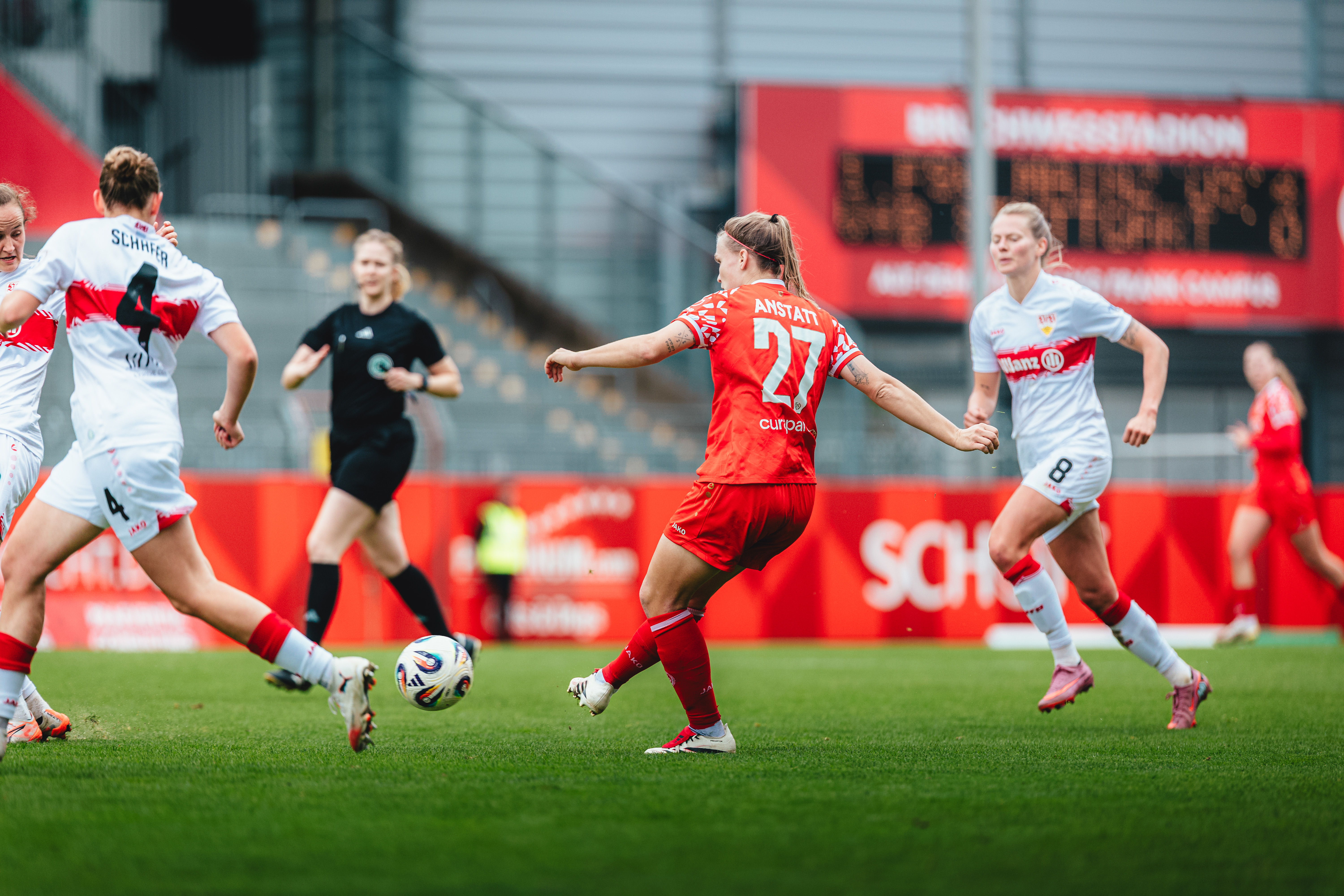 Nach einer furiosen ersten Halbzeit der Mainzerinnen holt der VfB Stuttgart einen 0:4-Rückstand auf und entführt drei Punkte aus dem Bruchwegstadion