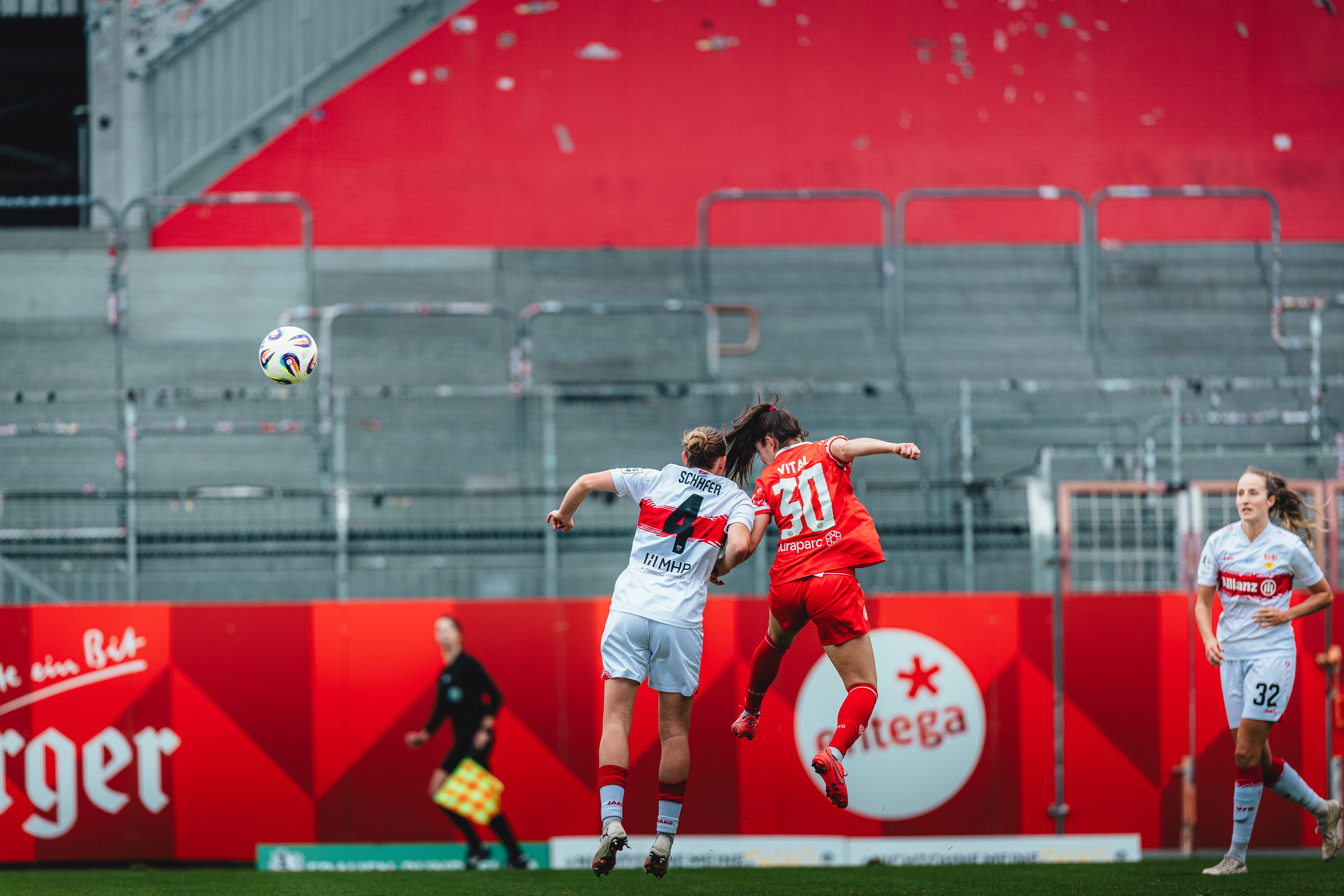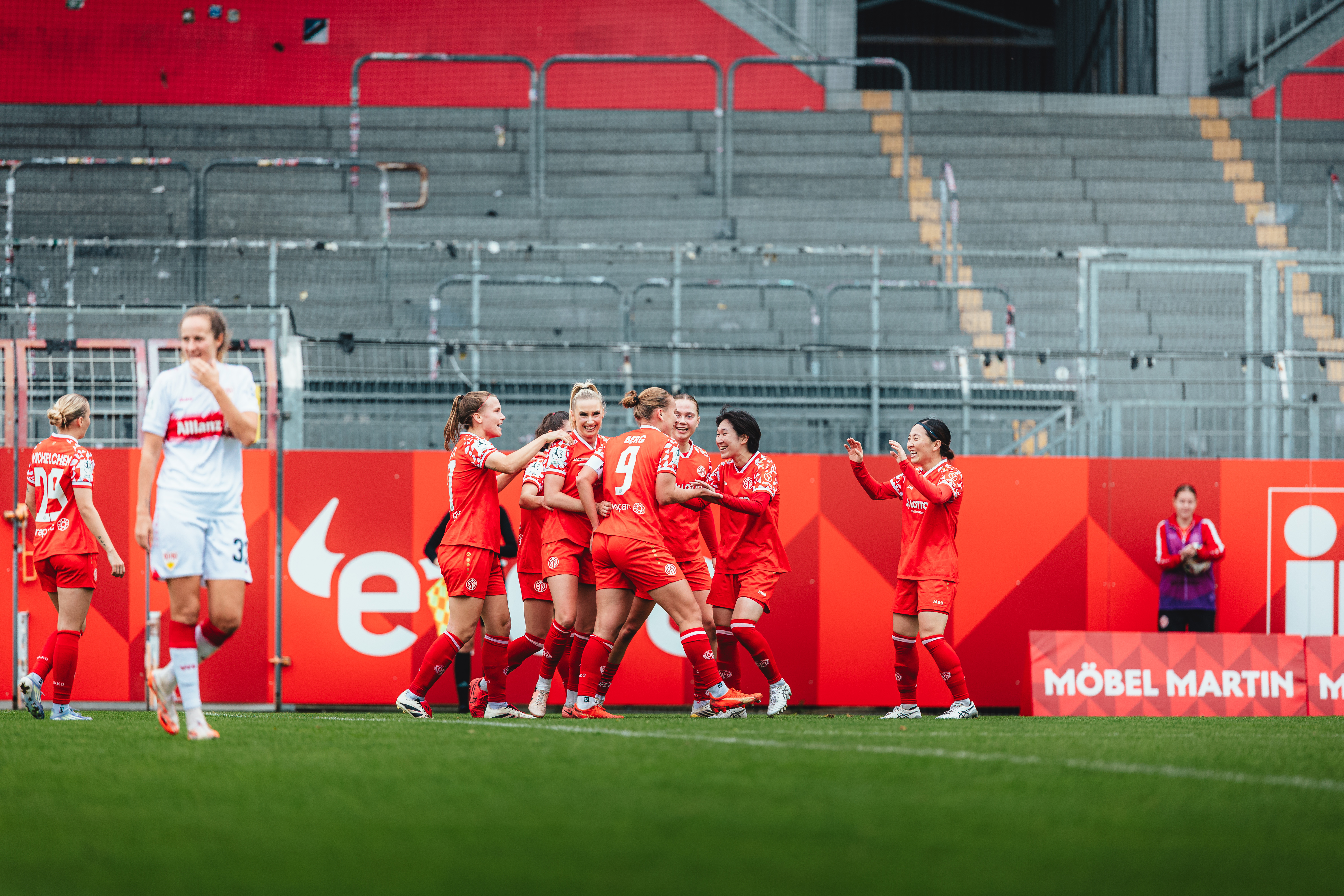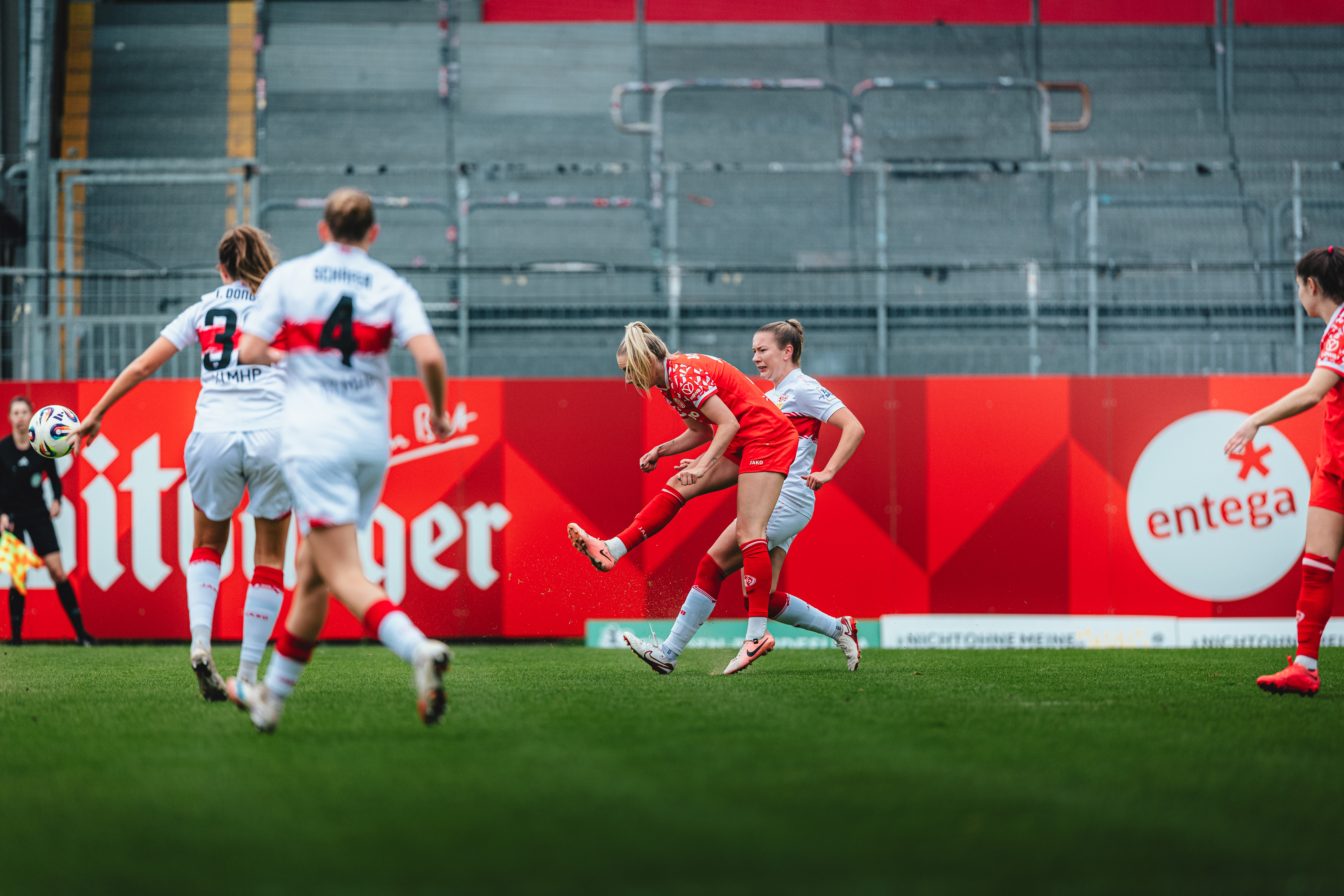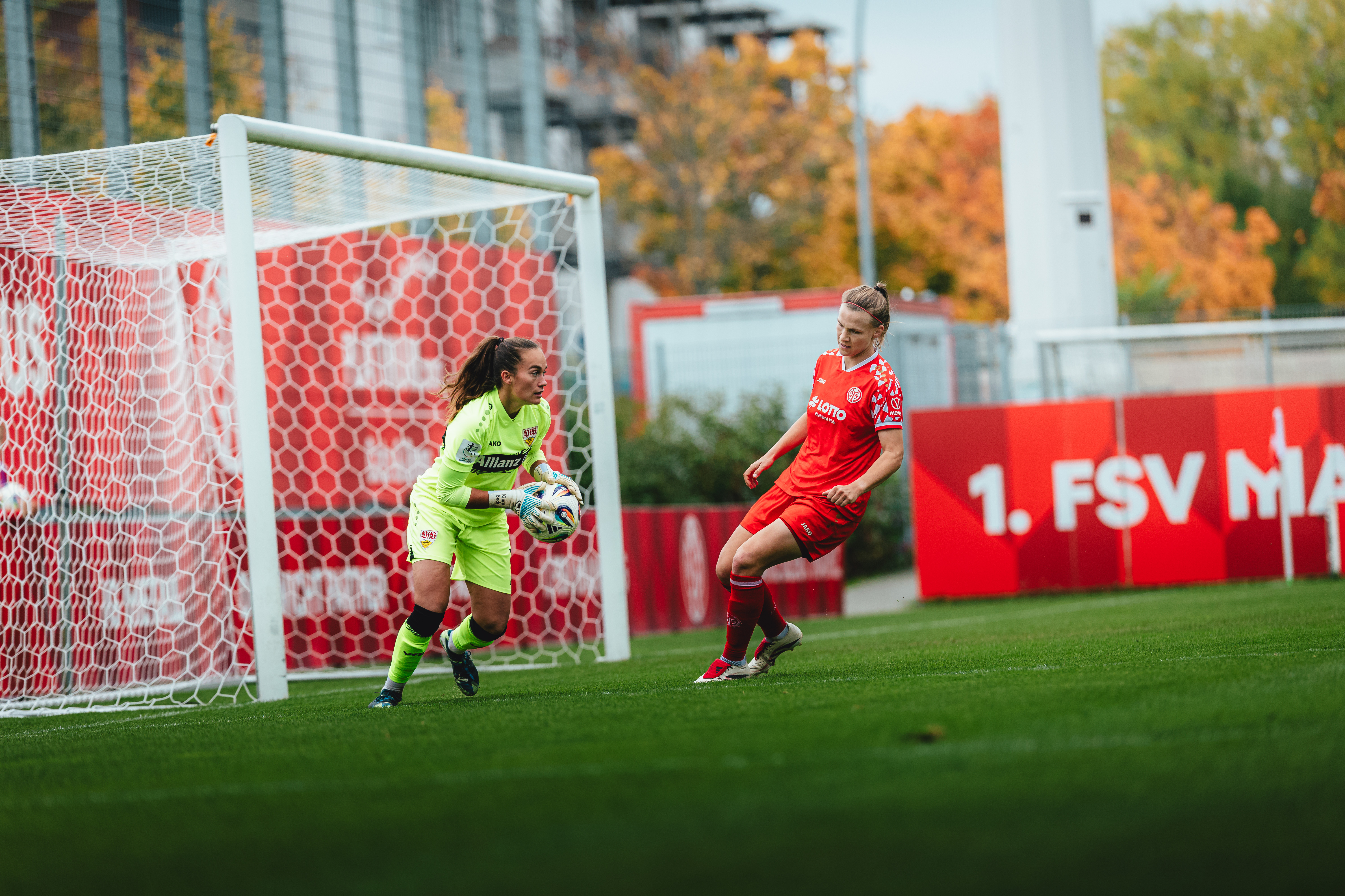 In einem unfassbaren Duell mit dem VfB Stuttgart unterliegen die Mainzerinnen am siebten Spieltag in der 2. Frauen-Bundesliga zuhause mit 4:5 (4:1). Nach einer grandiosen ersten Halbzeit, in der die 05-Frauen höchst konzentriert, griffig und effizient agierten und dank der Tore von Johanna Berg (16.), Nadine Anstatt (20., 30.) sowie Chiara Bouziane (32.) zwischenzeitlich mit 4:0 in Führung lagen, sorgte ein Eigentor der Gastgeberinnen kurz vor dem Pausenpfiff (41.) für einen Funken Hoffnung aufseiten der Stuttgarterinnen. Kurz nach dem Wiederanpfiff bekamen die Schwäbinnen einen Strafstoß zugesprochen, den Nicole Billa eiskalt verwandelte (48.) und die Partie somit wieder offener gestaltete. Nun mit mehr Selbstvertrauen im Rücken wurde der VfB mutiger und drückte auf ein weiteres Tor, welches Maximiliane Rall schließlich erzielte (73.). Kurz darauf sorgte eine Gelb-Rote Karte gegen Maja Pageler für eine Mainzer Unterzahl, die Stuttgart ausnutzte: Auf das 4:4 durch Linette Hofmann (82.) folgte tief in der Nachspielzeit tatsächlich das 4:5 durch die eingewechselte Rosa Rückert (90. +4), was gleichbedeutend mit dem Endstand war.