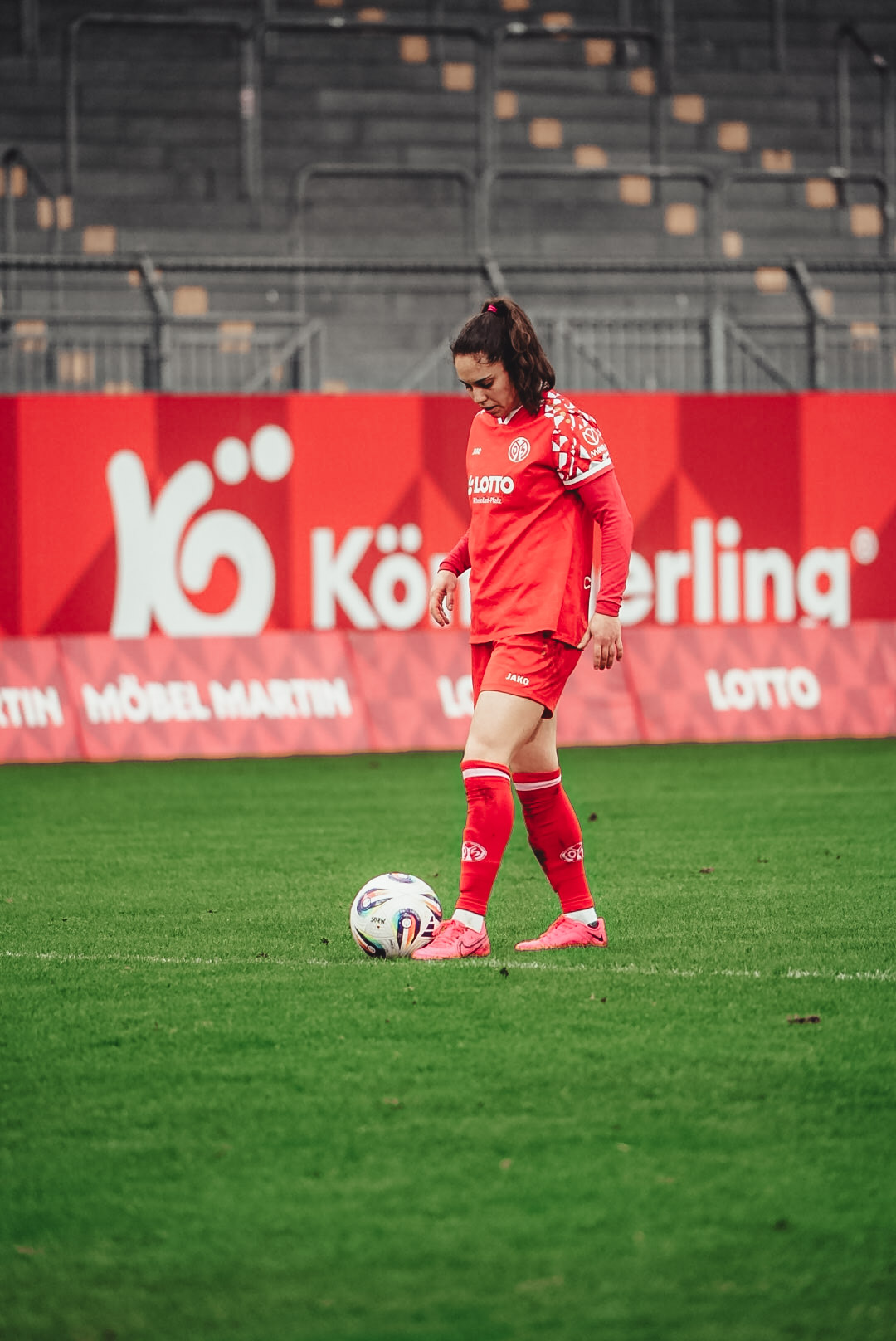 Einen weiteren vielversprechenden Angriff erspielte sich die Viktoria in der 20. Minute durch eine Hereingabe aus dem letzten Drittel, einen Abschluss konnten die Mainzerinnen jedoch konsequent verhindern. Zwei Minuten später hielt Matsumoto einen Distanzschuss sicher fest (22.). Die Rheinhessinnen mussten sich in dieser Phase die Bälle gegen die souverän kombinierenden Spielerinnen aus der Hauptstadt hart erarbeiten. Doch die Mainzer Frauen kämpften sich zurück ins Spiel. Als Kara Bathmann kurz vor dem gegnerischen Strafraum zu Fall gebracht wurde und die Schiedsrichterin auf Freistoß entschied, legte sich Kats den Ball zurecht, ihr Versuch konnte allerdings von der Berliner Defensive geblockt werden. Daraufhin folgte eine zweikampfintensive, aber chancenarme Phase auf beiden Seiten.