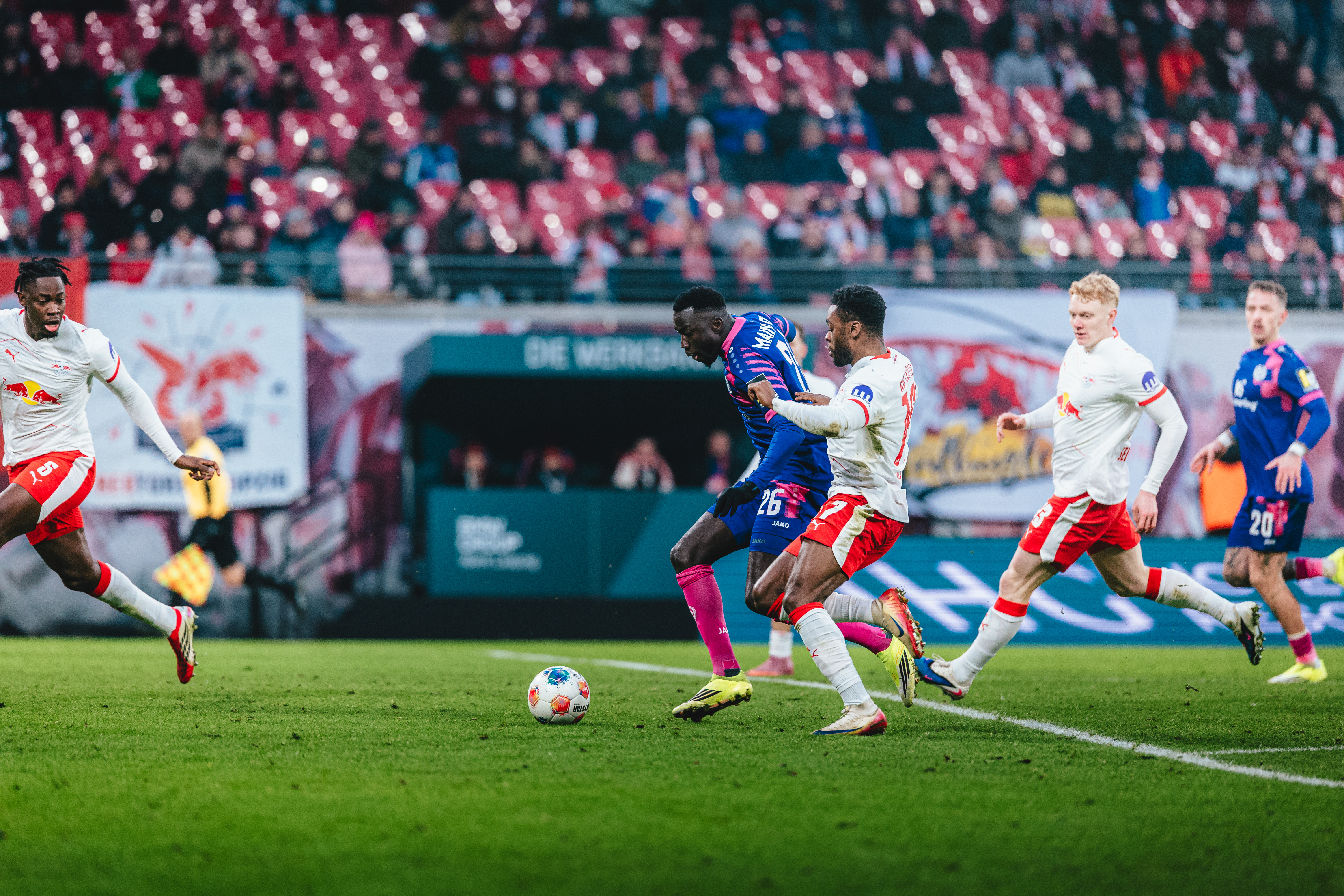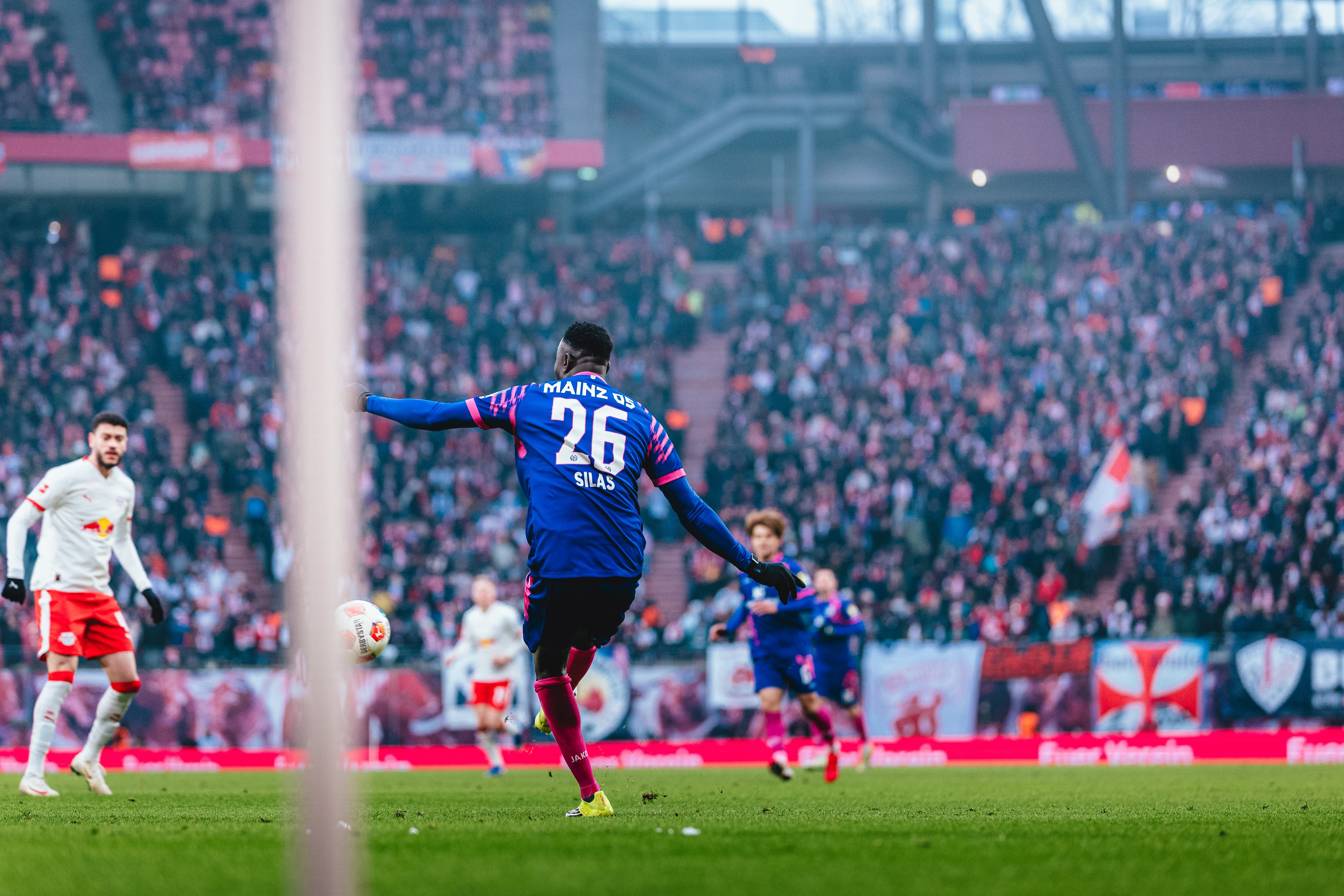Den ersten Schuss verzeichneten im zweiten Durchgang, den beide Teams unverändert angingen, die Leipziger durch Romulo. Der FSV hatte allerdings den Schwung aus den ersten 45 Minuten mitgenommen und ging erstmals in Führung (49.). Und wie: Nach einer Kombination durch die Mitte erreichte der Pass von Tietz auf der linken Außenbahn Silas, der erst einen Gegenspieler aussteigen ließ, dann Fahrt und es im Strafraum gleich mit mehreren Leipziger Verteidigern aufnahm. Auch Gulacsi hatte keine Chance, den Schuss des Kongolesen aus kurzer Distanz abzuwehren. Die Mainzer Führung war sehenswert und verdient. Die 05ER blieben auf dem Gas und störten die Angriffsversuche der Gastgeber früh. Alles konnten die Rheinhessen ob der hohen Qualität auf Seiten der Sachsen aber nicht verhindern und benötigten nach 61 Minuten die Unterstützung des Pfostens, der dafür sorgte, dass Romulo eine Hereingabe von Yan Diamondé aus kurzer Distanz nicht im Tor von Batz unterbringen konnte.