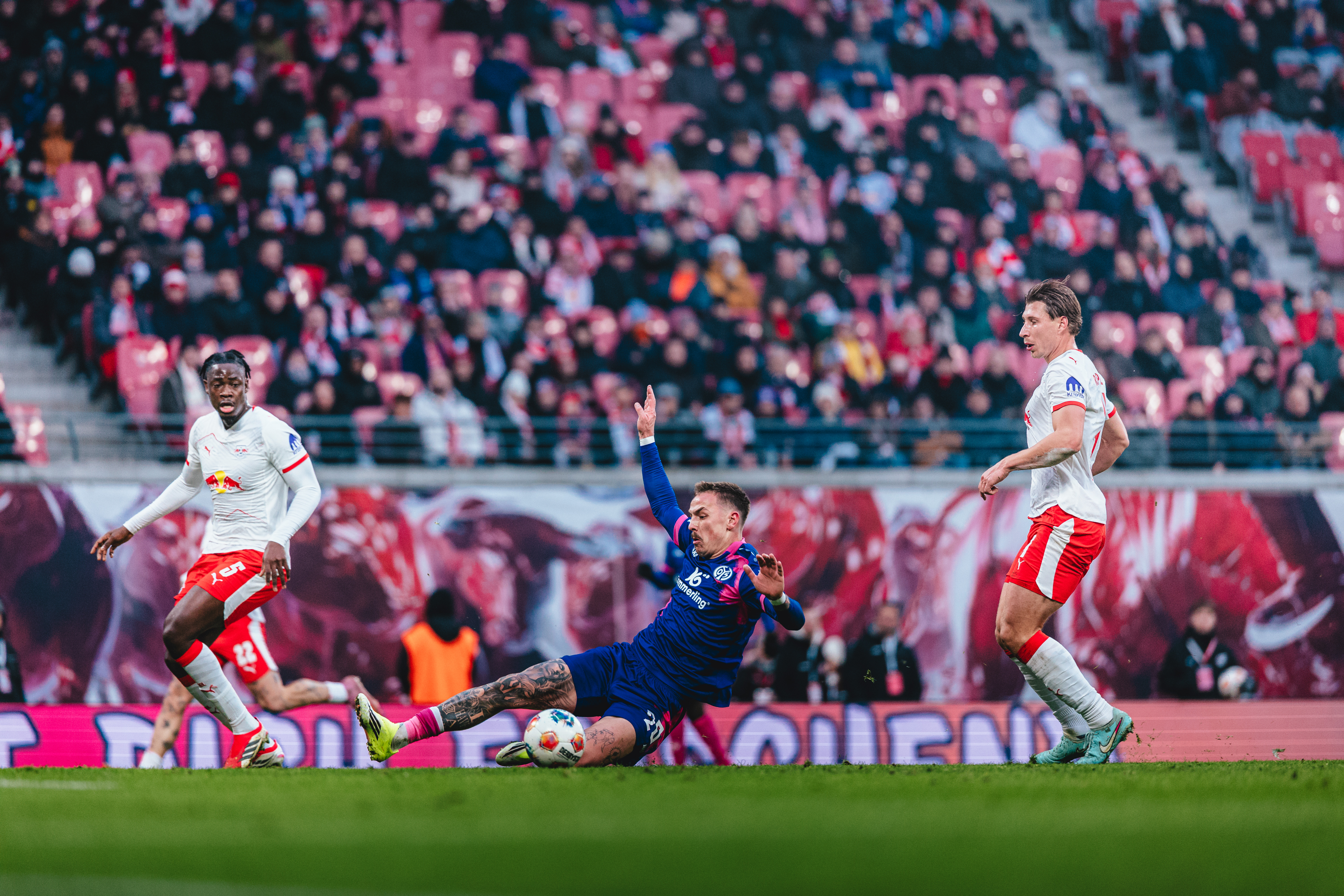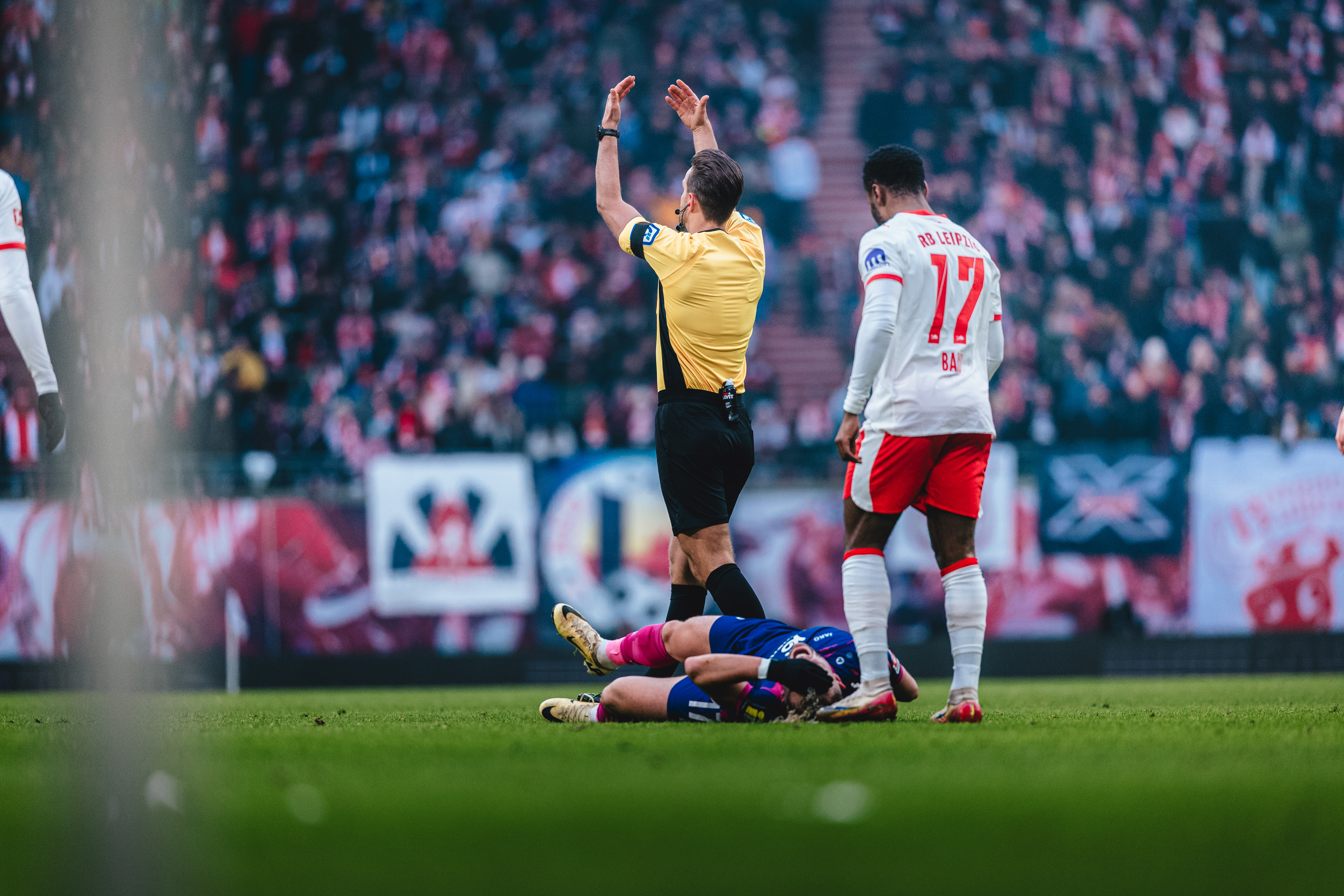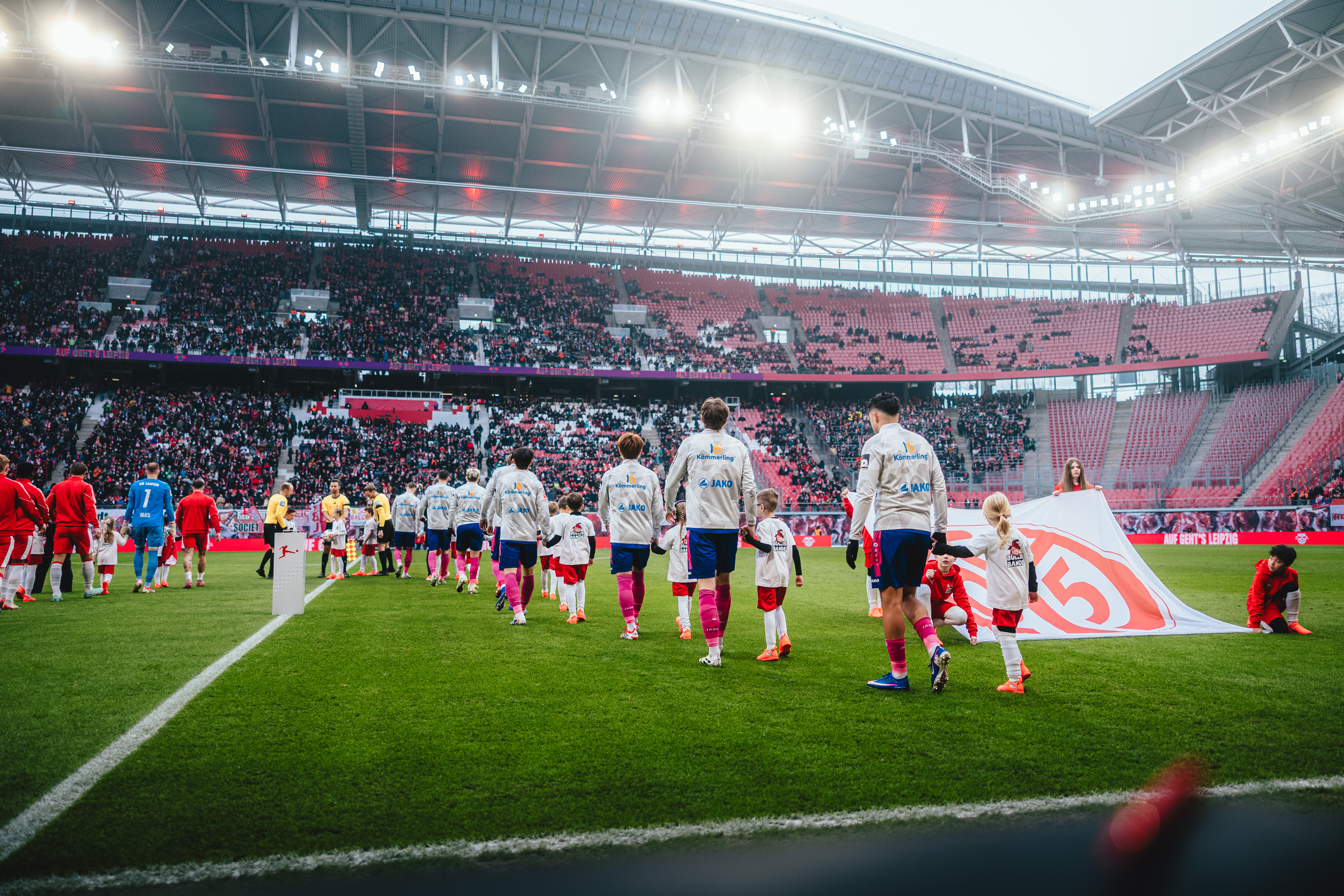 "Es geht um Kompaktheit, aber auch gegen Bayern haben wir uns gesagt, dass wir mit dem Ball etwas anfangen müssen. Nur hinterherlaufen wird auf Dauer schwierig", hatte Cheftrainer Urs Fischer im Vorfeld betont, dass man auf das Tempo der Leipziger aufpassen und sich gleichzeitig zutrauen müsse, Fußball zu spielen. Die 05ER ließen den Worten Taten folgen, agierten in der Anfangsphase mutig, liefen offensiv an und zeigten auch im Angriff gute Ansätze. Nach einem feinen Pass von Jae-sung Lee war Hollerbach nach nicht mal fünf Minuten auf dem Weg in Richtung Leipziger Tor, wurde von El-Chadaille Bitshiabu aber im Strafraum beim Abschluss zu Fall gebracht. Zu wenig für einen Strafstoß, wie Schiedsrichter Daniel Schlager befand. Die ersten zehn Minuten machten aus Mainzer Sicht Lust auf mehr. Der positive Eindruck wurde jedoch getrübt. Hollerbach ging bei seiner Ballannahme ohne Fremdeinwirkung zu Boden und musste vom Feld getragen werden. Silas kam für den 05-Angreifer in die Partie (13.), die der FSV auch gegen den Ball bis dato im Griff hatte. Trotz des Verletzungsschocks suchten die Gäste weiterhin den Weg nach vorne. Ein Schussversuch von Kapitän Silvan Widmer wurde noch entscheidend abgefälscht (19.), kurz danach hätte es dann fast geklingelt im Tor von RB. Phillip Tietz setzte eine Flanke von Danny da Costa aus sechs Metern gegen die Laufrichtung von Peter Gulacsi knapp neben den rechten Pfosten (20.).
