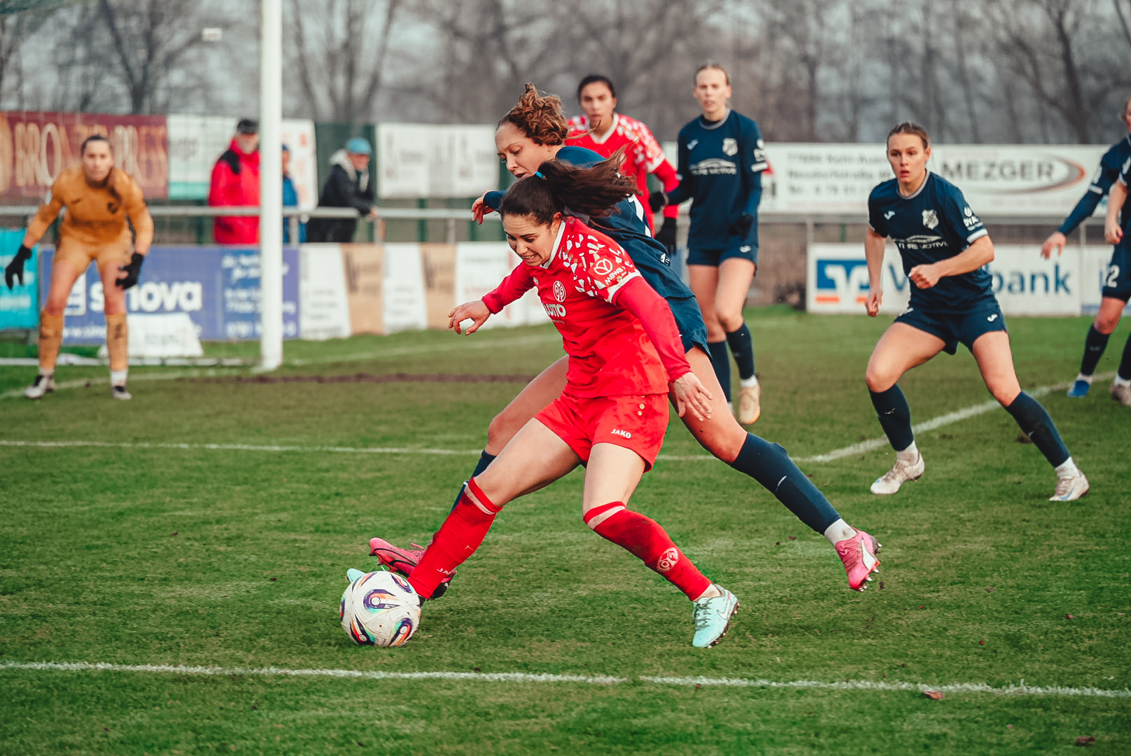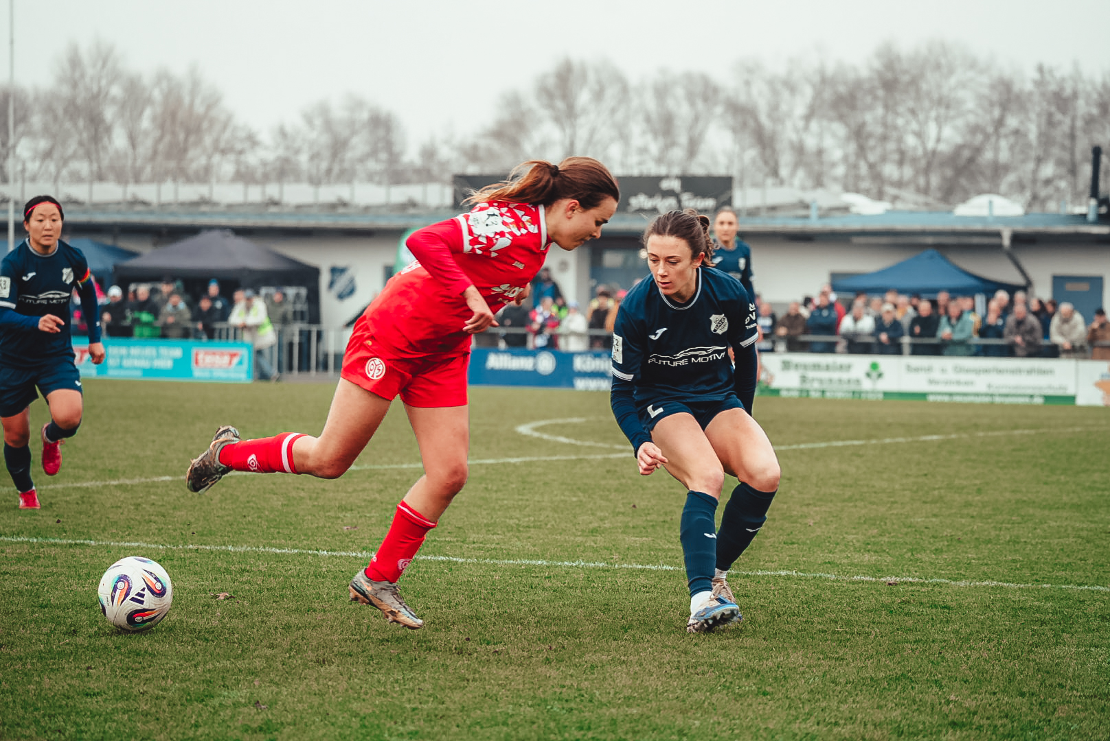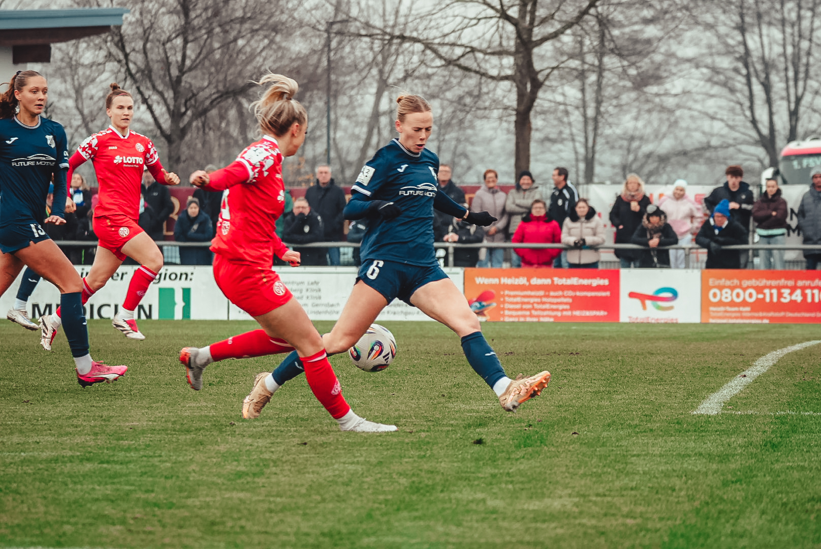 Die Siegesserie der Mainzer Frauen reißt im Rückrunden-Auftakt und letzten Spiel des Jahres durch eine 0:2-Niederlage beim SC Sand. Trotz des mutigen Auftretens des FSV war es in der 25. Spielminute Ivana Slipcevic, die einen sehenswerten Eckstoß direkt im Tor der Gäste unterbrachte und damit auf 1:0 für die Gastgeberinnen stellte. Die Rot-Weißen zeigten sich dennoch über weite Strecken der Partie als die aktivere sowie spielbestimmende Mannschaft und kreierten auch mittels Standardsituationen einige vielversprechende Torchancen, die an diesem Tag allerdings nicht in Treffer umgemünzt werden konnten. Stattdessen agierte Sand überaus effizient und traf mitten in einer starken Phase der Rheinhessinnen erneut per Eckstoß zum 2:0 - dieses Mal durch Kim Schneider, die per Kopf für den SCS erhöhte (75.). Die 05-Frauen arbeiteten auch nach dem zweiten Gegentor unermüdlich daran, noch einmal in die Partie zurückzufinden - diese Bemühungen blieben allerdings erfolglos, weshalb der FSV das Jahr 2025 nach wie vor mit 26 Punkten auf dem vierten Tabellenplatz in der 2. Frauen-Bundesliga beendet.