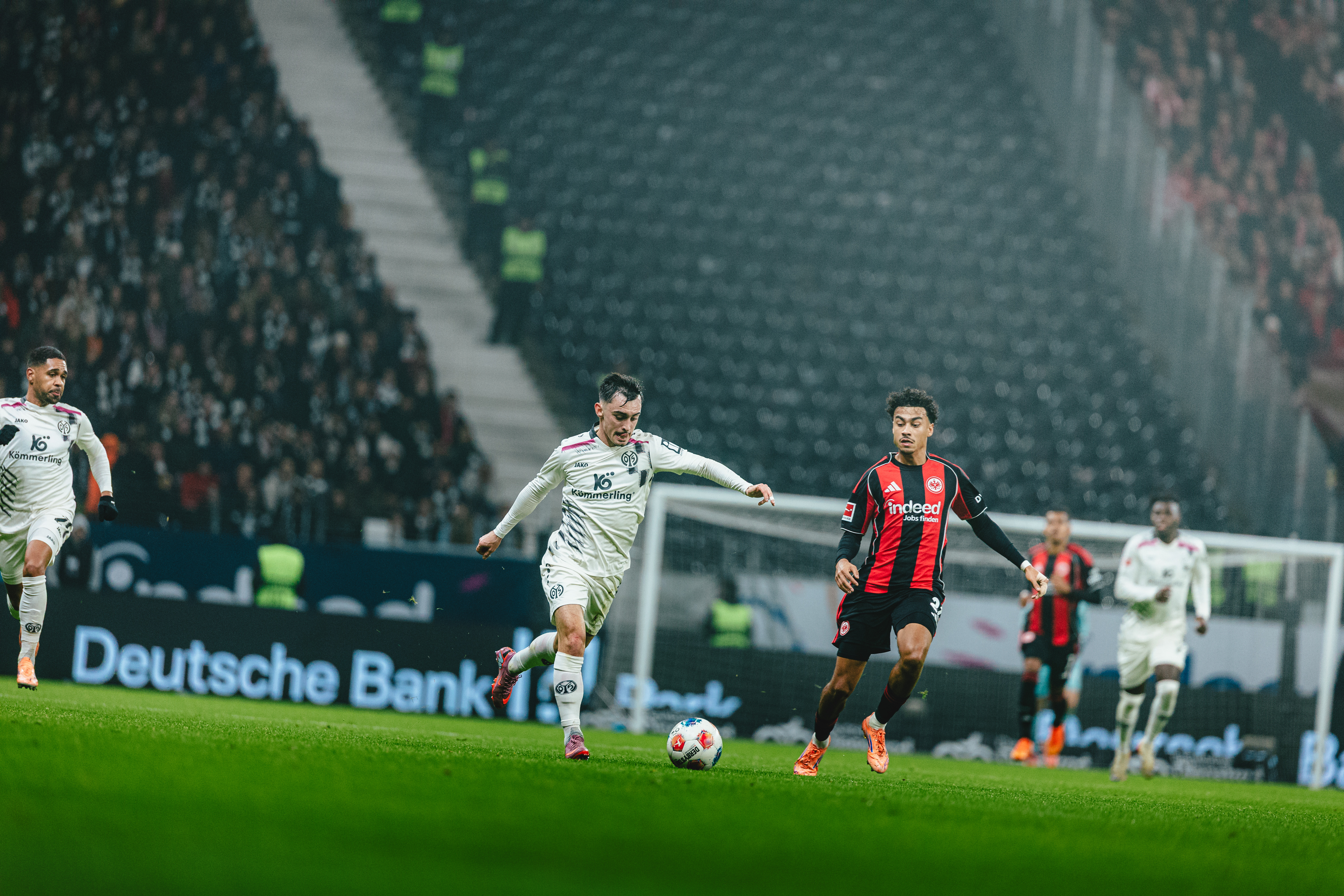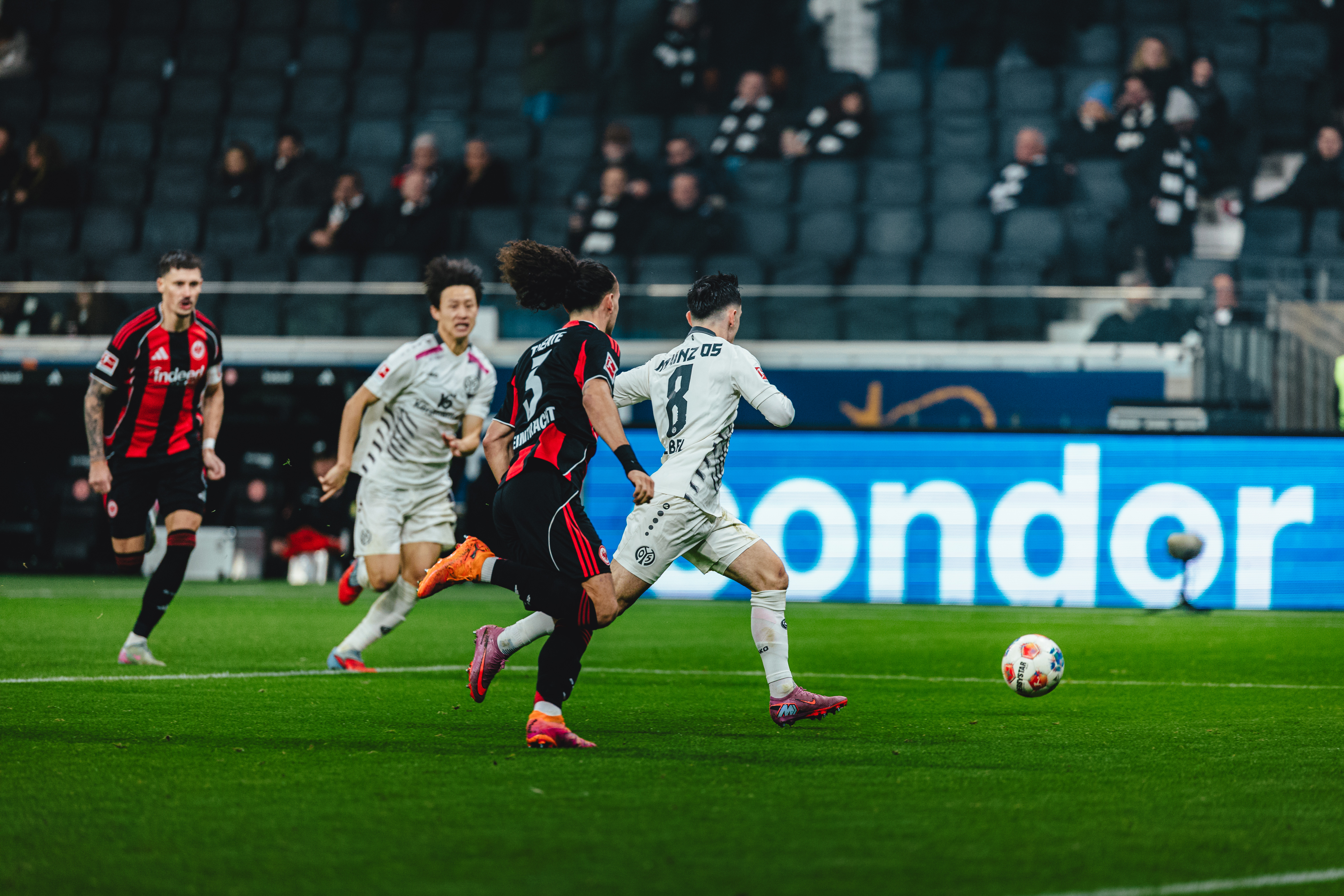Die Mainzer unterliegen am Sonntagabend bei Eintracht Frankfurt knapp mit 0:1. In einer über lange Phasen hinweg nahezu ereignislosen Partie erhöhten die Hausherren nach dem Seitenwechsel den Druck und erzielten in Person von Ritsu Doan spät den Siegtreffer (81.). Nach dem Führungstor versuchten die 05ER sich an einer Antwort, schafften es allerdings nicht, den Ausgleich zu erzielen und gehen somit vor der Länderspielpause leer aus.