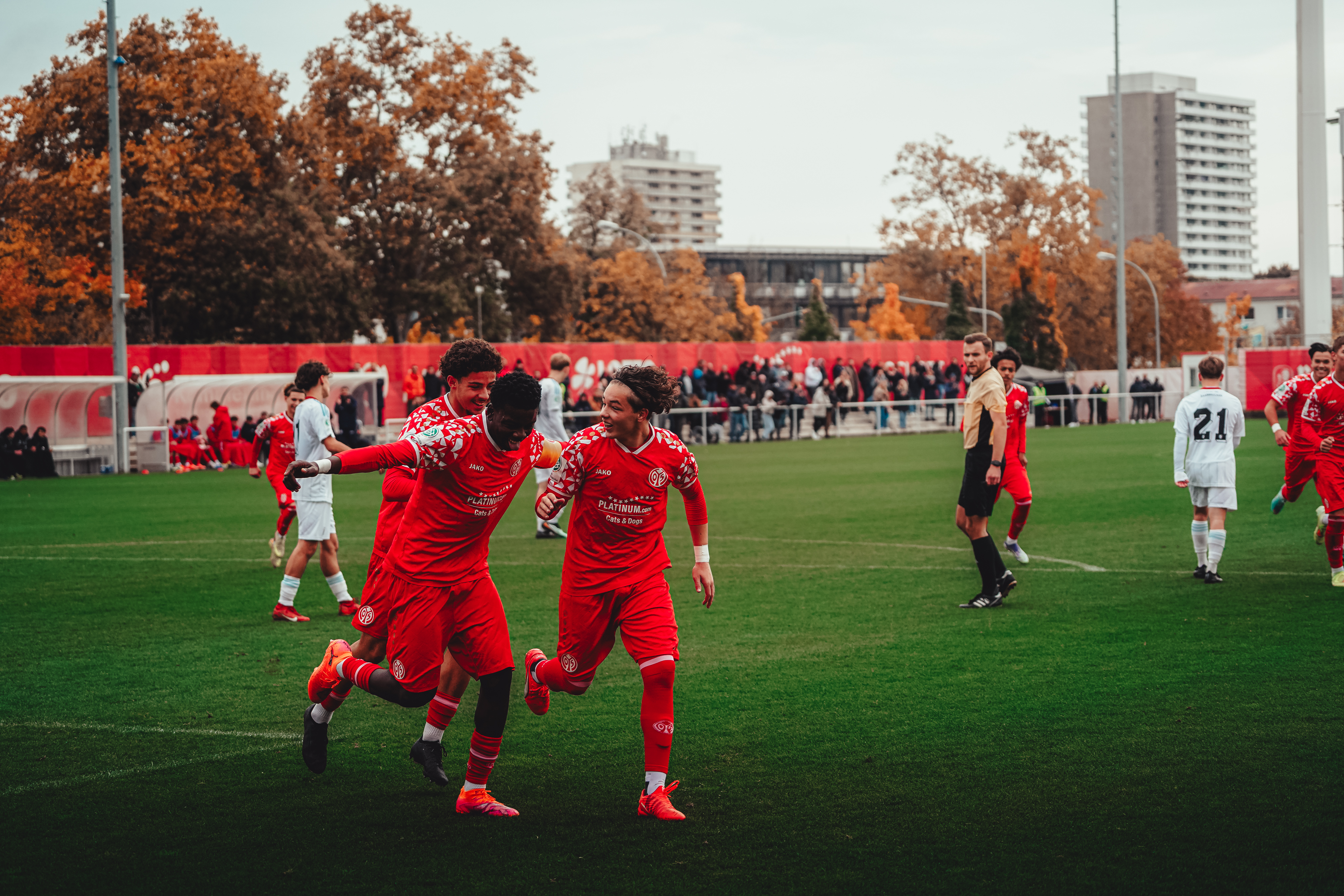 Die U17 des FSV gewinnt das dritte Spiel in der DFB-Nachwuchsliga in Folge und geht mit einem deutlichen 6:1-Heimsieg gegen den 1. FC Saarbrücken als Sieger vom Platz. Die Tore für die durchweg dominanten 05ER erzielten David Osei (14.), Fabio da Silva Santos (25.), Fabian Rieß (29., 56.) und Yannis Klein (82., 87.).