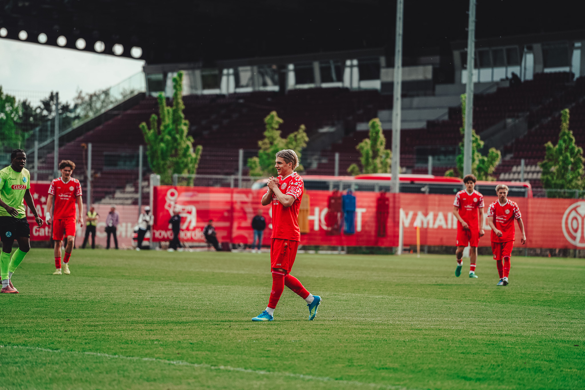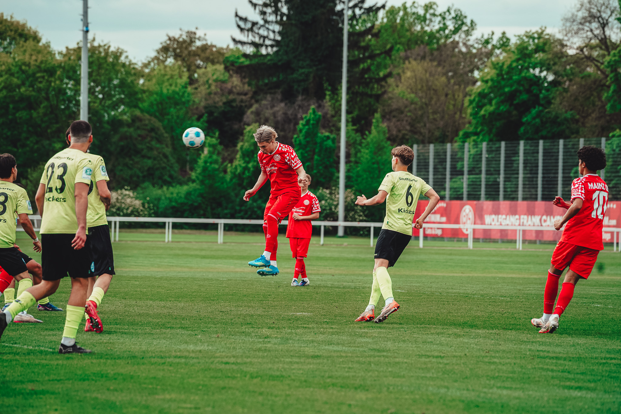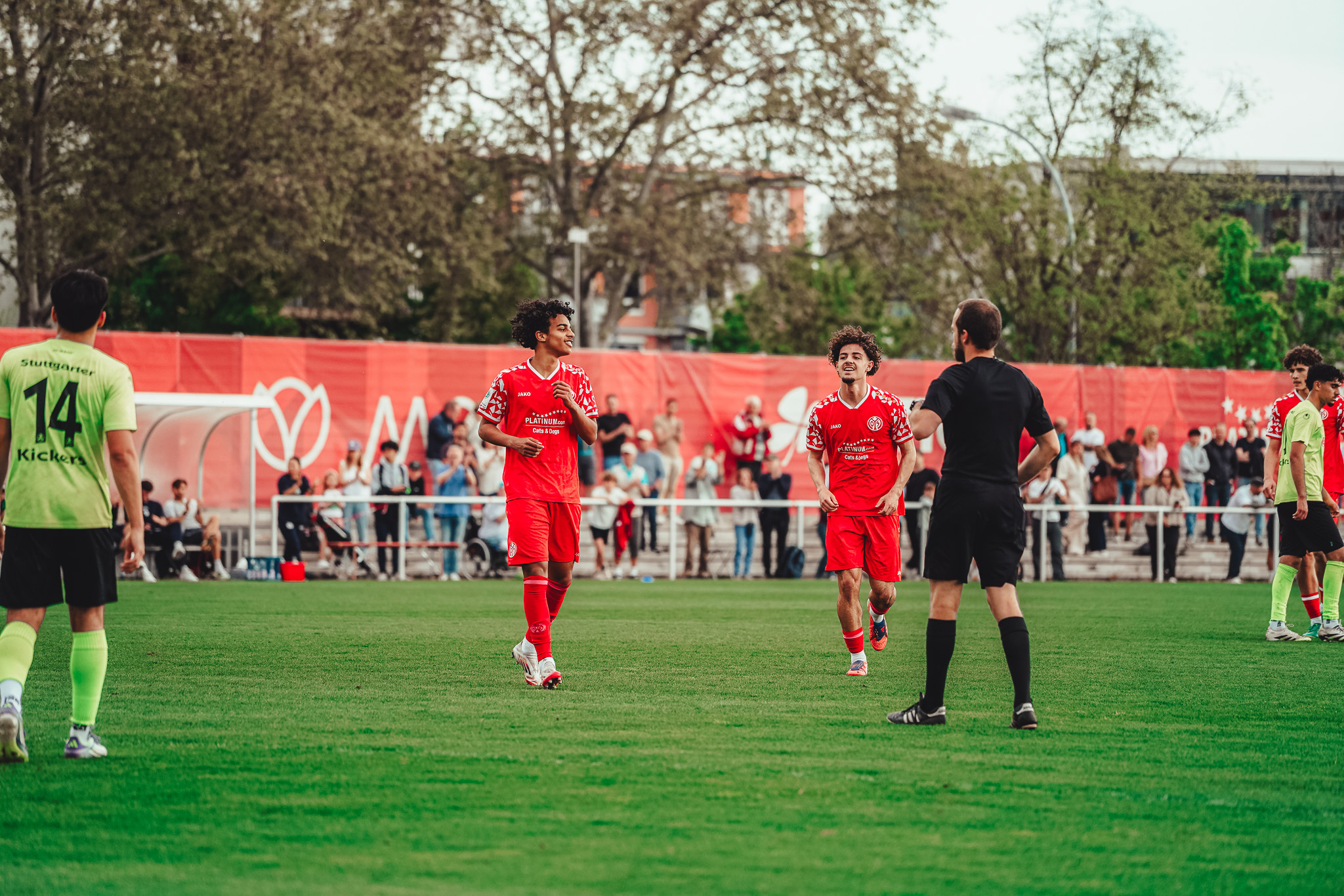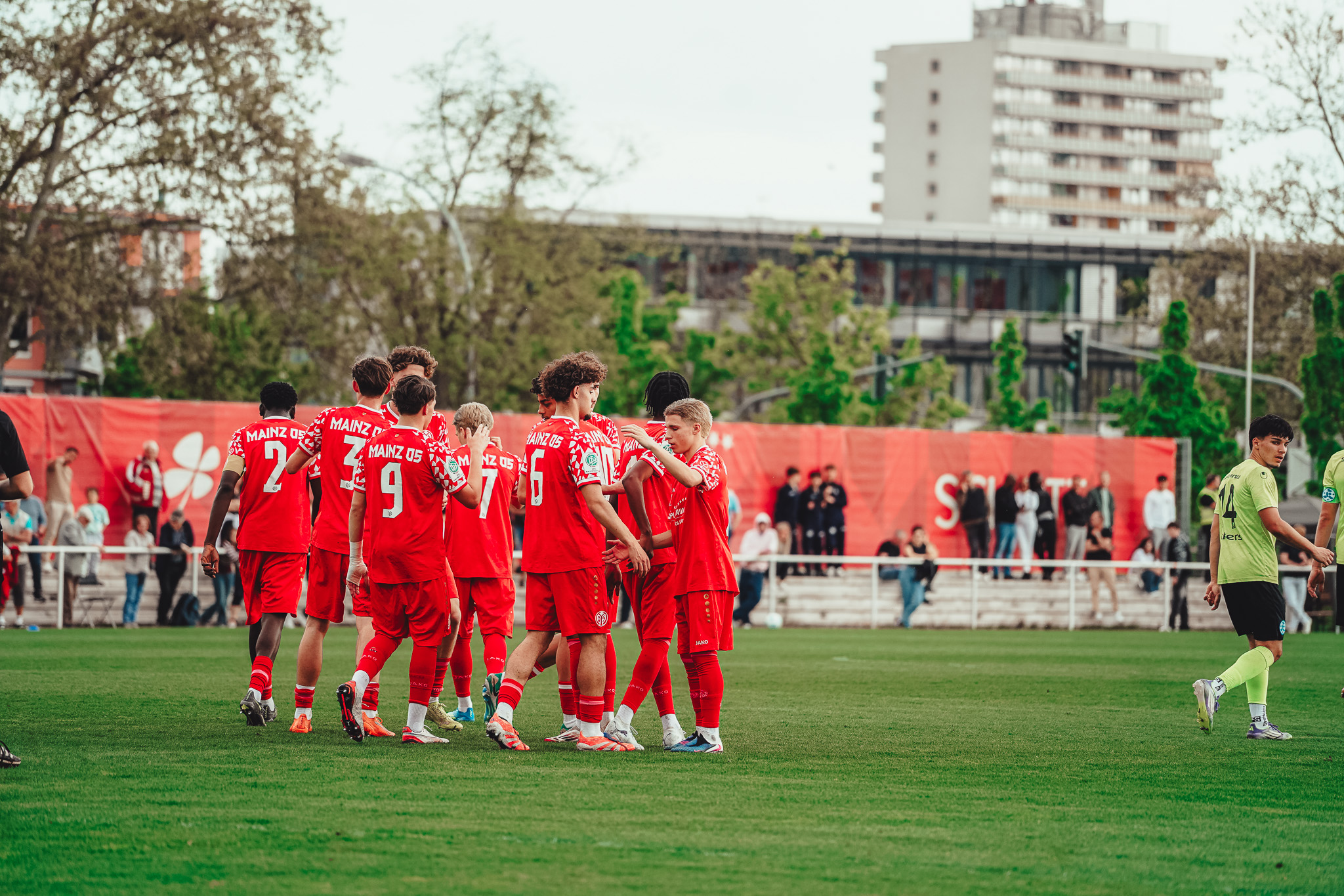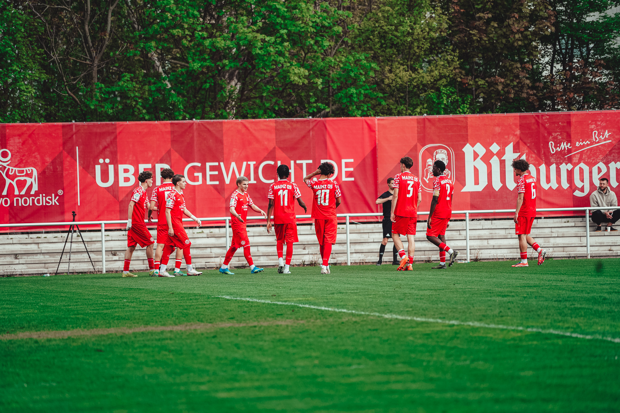 Die Mainzer U17 besiegt vor allem dank einer starken ersten Halbzeit die Stuttgarter Kickers mit 3:0 (3:0) und beendet die Gruppe B der DFB-Nachwuchsliga auf dem vierten Tabellenplatz, was ihnen die Teilnahme an der K.O-Runde ermöglicht. Die Weichen für den Heimsieg hatte Simon Tedla bereits nach 17 Minuten gestellt, bevor Jona Strub und Justin Baldwin noch vor dem Pausenpfiff erhöhten. Im zweiten Durchgang verpassten es die 05ER zwar ihre Führung auszubauen, standen defensiv aber so sicher, dass sie zu keiner Zeit um den verdienten Sieg zittern mussten. Gegner im Achtelfinale wird der 1. FC Magdeburg sein, die ihre Gruppe als Tabellenerster abschließen konnten.