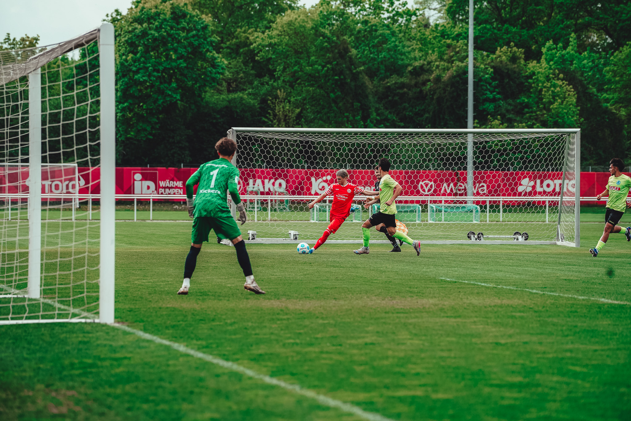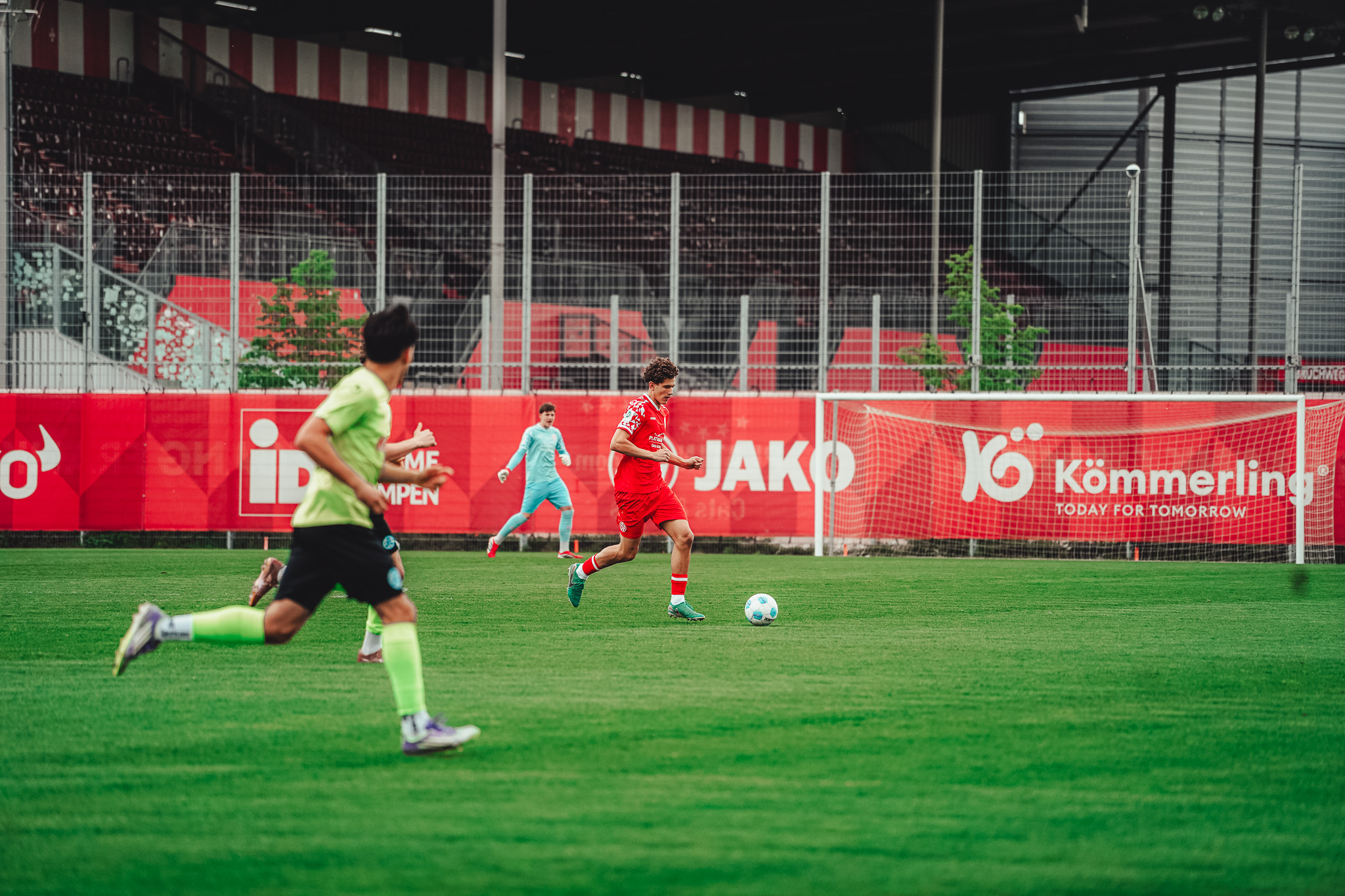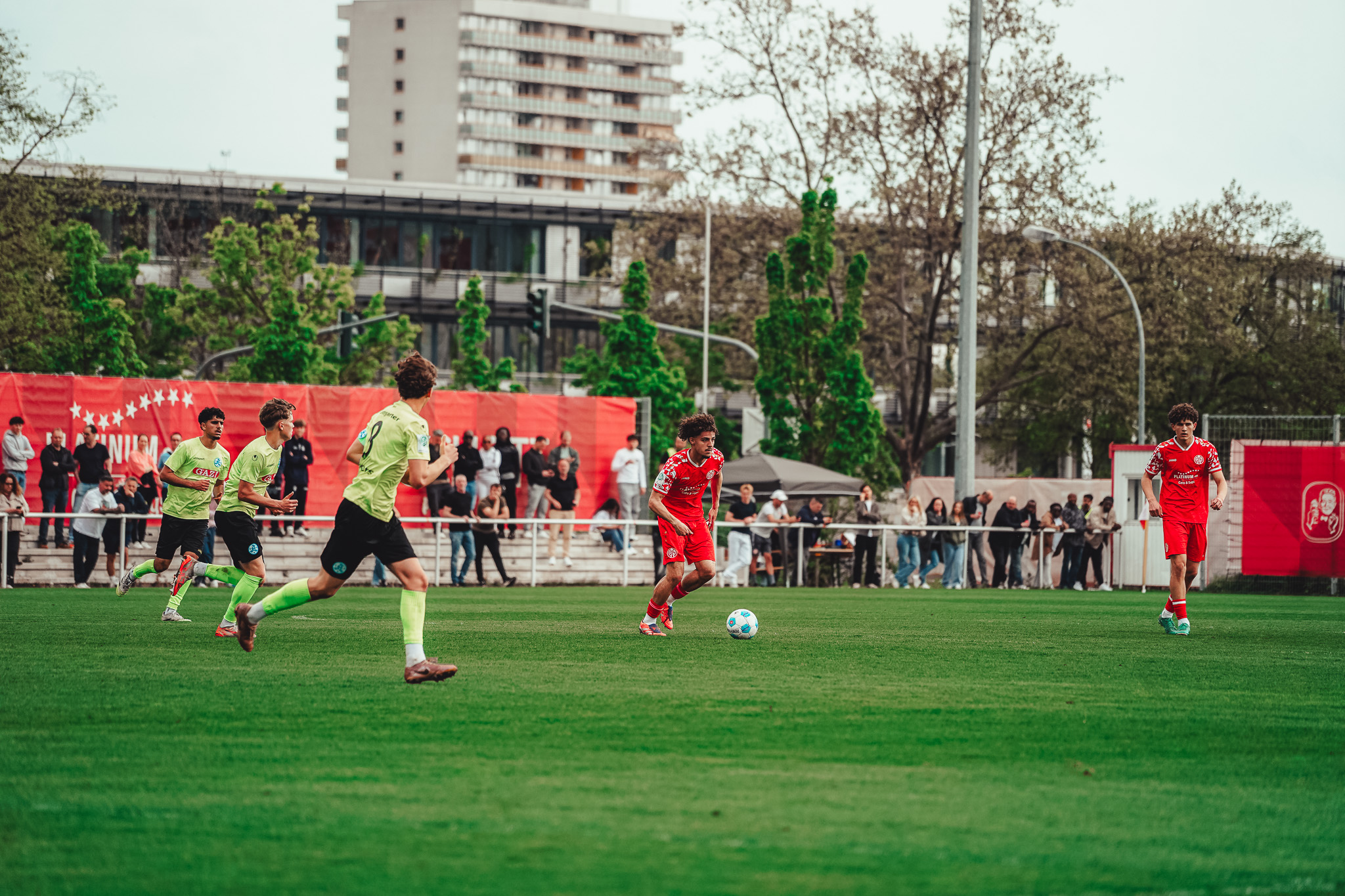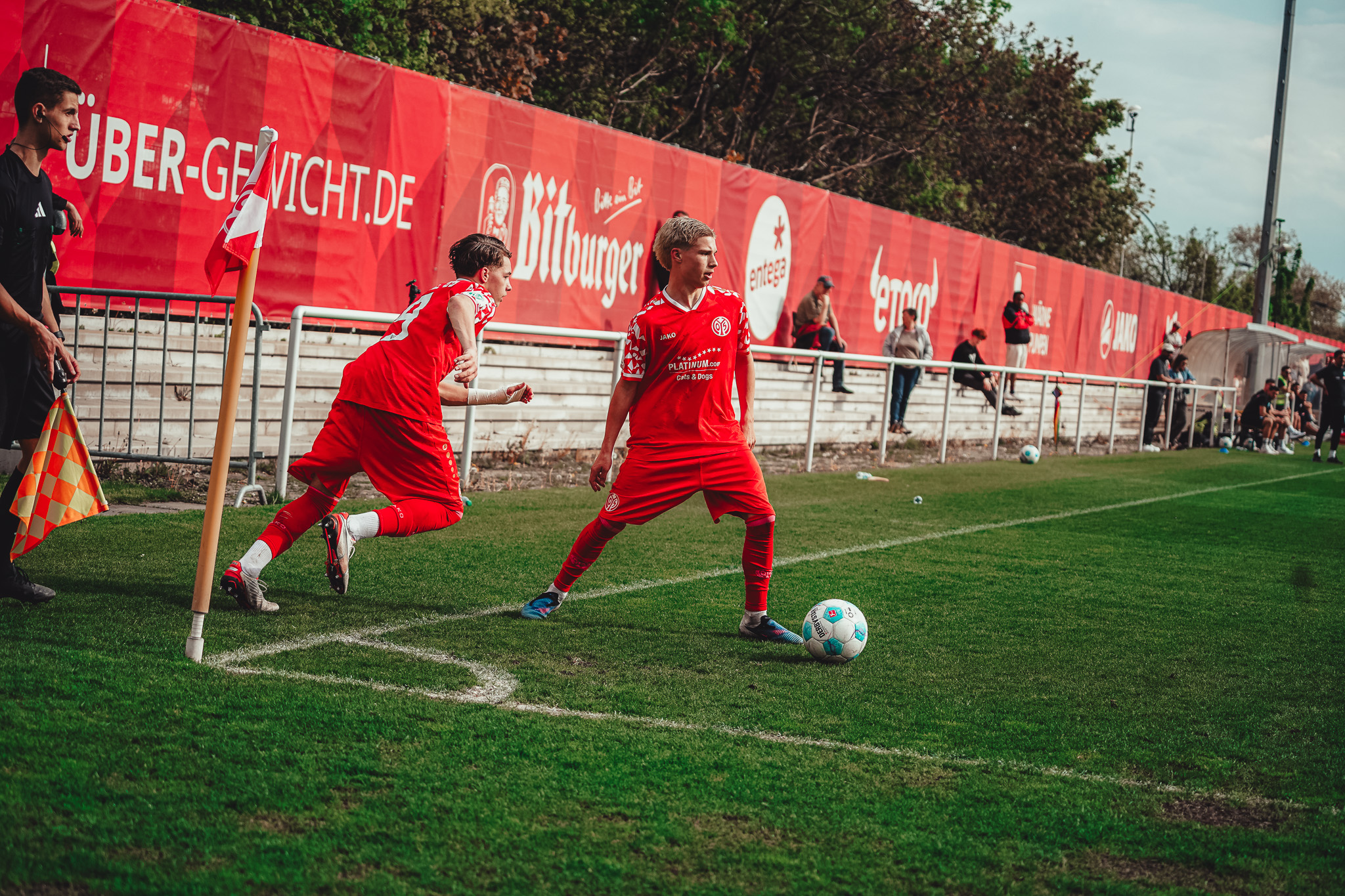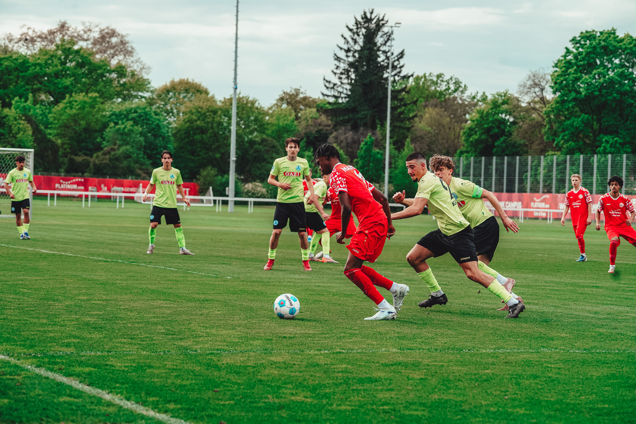 Die Mainzer U17 besiegt vor allem dank einer starken ersten Halbzeit die Stuttgarter Kickers mit 3:0 (3:0) und beendet die Gruppe B der DFB-Nachwuchsliga auf dem vierten Tabellenplatz, was ihnen die Teilnahme an der K.O-Runde ermöglicht. Die Weichen für den Heimsieg hatte Simon Tedla bereits nach 17 Minuten gestellt, bevor Jona Strub und Justin Baldwin noch vor dem Pausenpfiff erhöhten. Im zweiten Durchgang verpassten es die 05ER zwar ihre Führung auszubauen, standen defensiv aber so sicher, dass sie zu keiner Zeit um den verdienten Sieg zittern mussten. Gegner im Achtelfinale wird der 1. FC Magdeburg sein, die ihre Gruppe als Tabellenerster abschließen konnten.