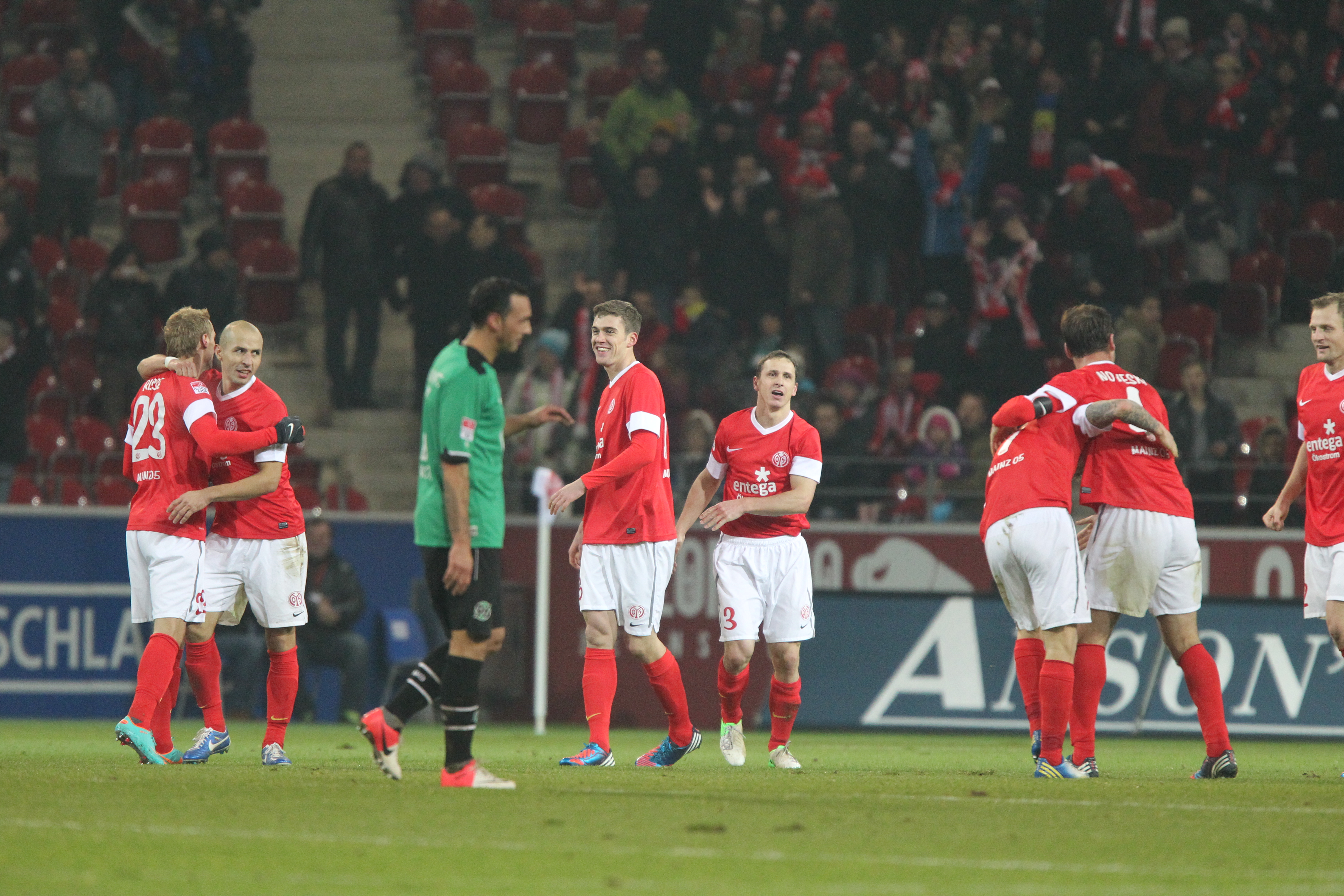 Bundesliga-Debüt vor über 13 Jahren: Stefan Bell (4. v. li.) im Dezember 2012 nach dem 2:1-Sieg gegen Hannover 96.