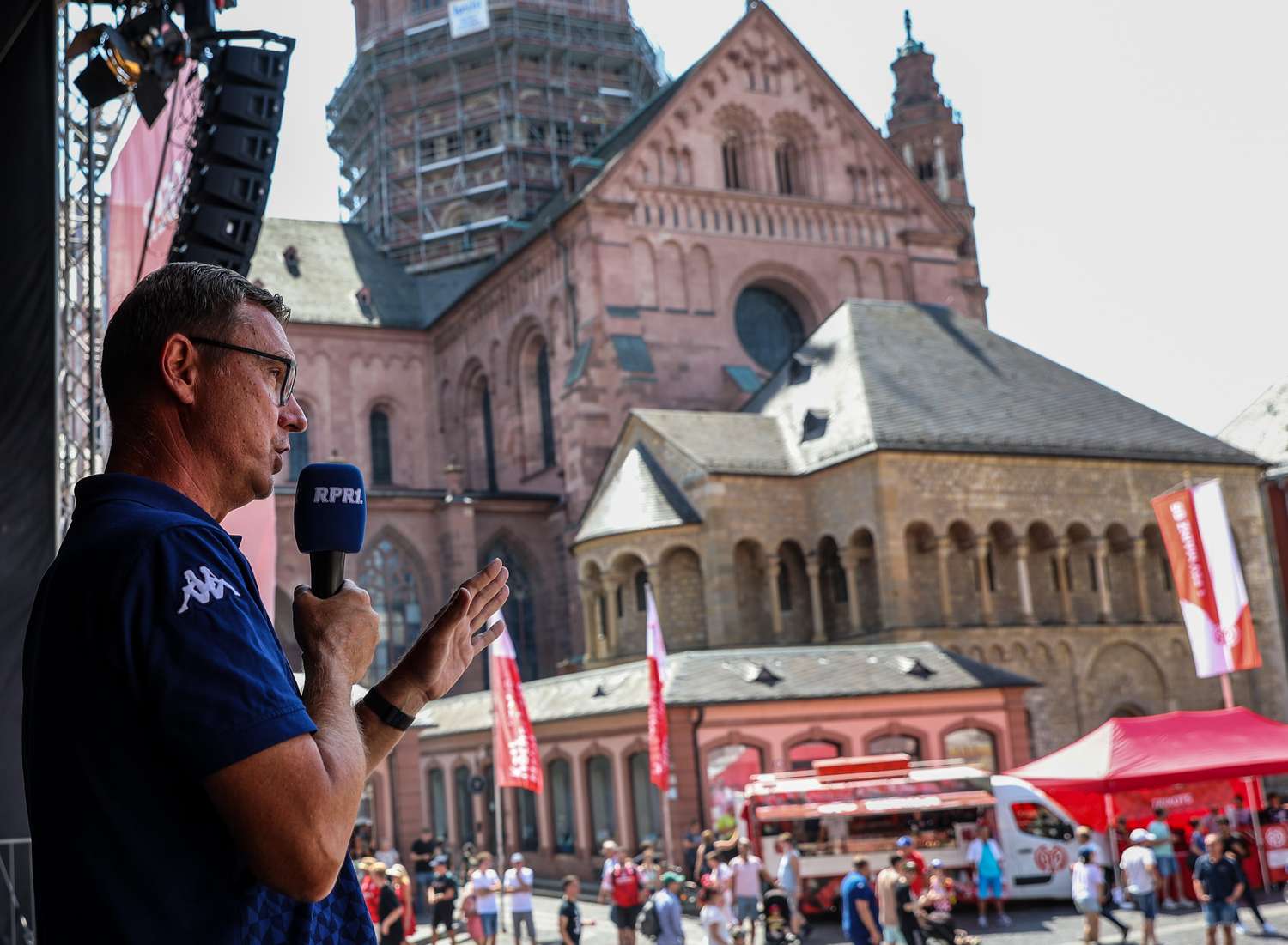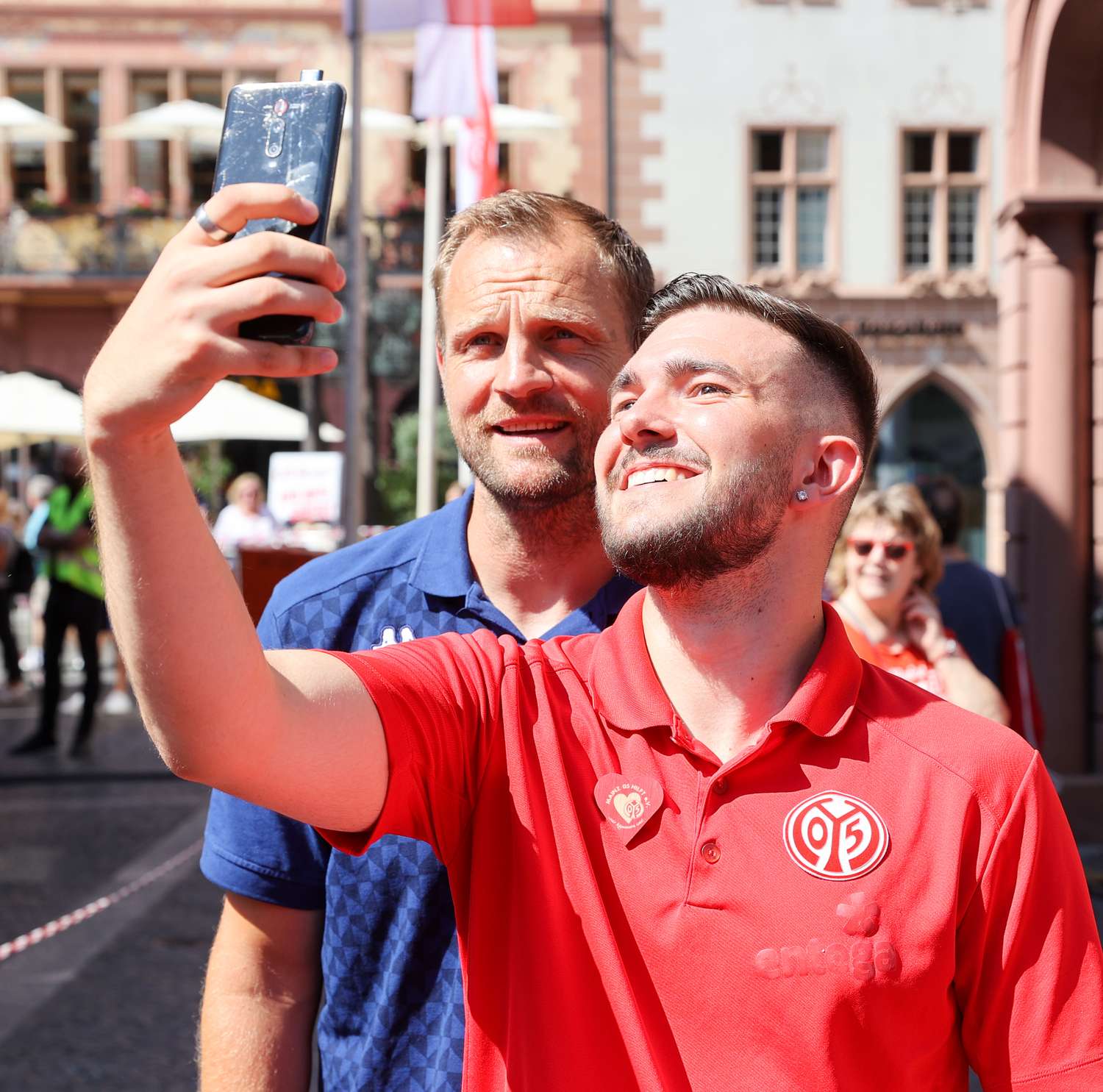 Abgerundet wurde das Sommerfest von einem Interview mit Sportvorstand Christian Heidel und Sportdirektor Martin Schmidt. Beide waren erfreut, trotz hoher Temperaturen, auch am späten Nachmittag noch zahlreiche 05ER auf dem Mainzer Marktplatz anzutreffen. "Der Verein gehört in diese Stadt und auf diesen Platz. Zumindest einmal im Jahr. Besser wäre natürlich zweimal, dann hätten wir etwas zu feiern", freute sich Heidel mit einem Augenzwinkern über das Sommerfest in der Altstadt.