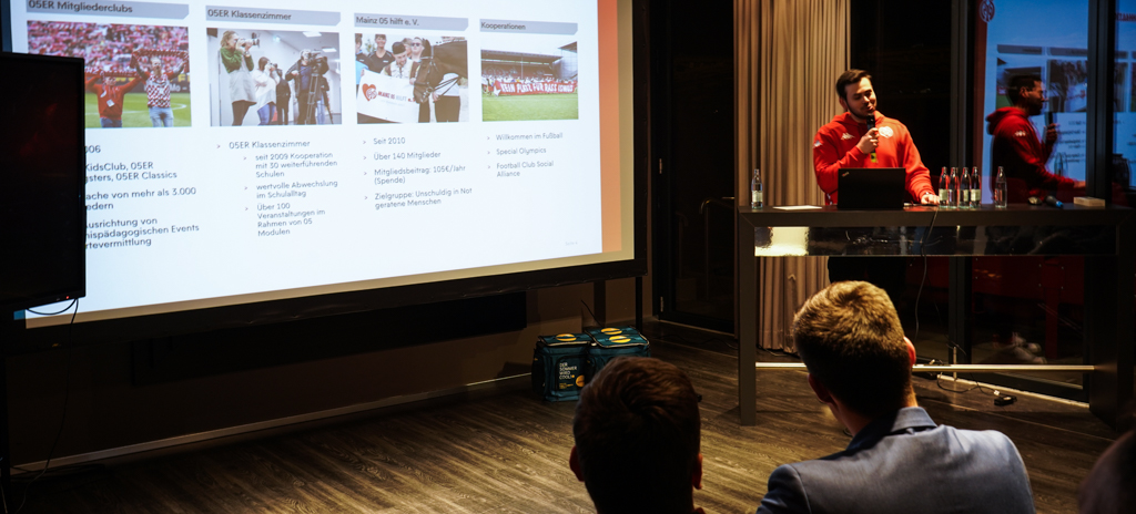 Zunächst richtete sich Leonard Wittauer aus der 05-CSR-Abteilung an die Gäste und gab einen Einblick in die Arbeit von sich und seinen Kollegen, bevor er verschiedene Projekte des Teams vorstellte. Im Anschluss gewährte Stephan Bandholz, Direktor für Arenamanagement und Nachhaltigkeit bei Mainz 05, im Rahmen eines Arena-Rundgangs Einblicke in seine Tätigkeit mit dem Schwerpunkt Energieeffizienz.