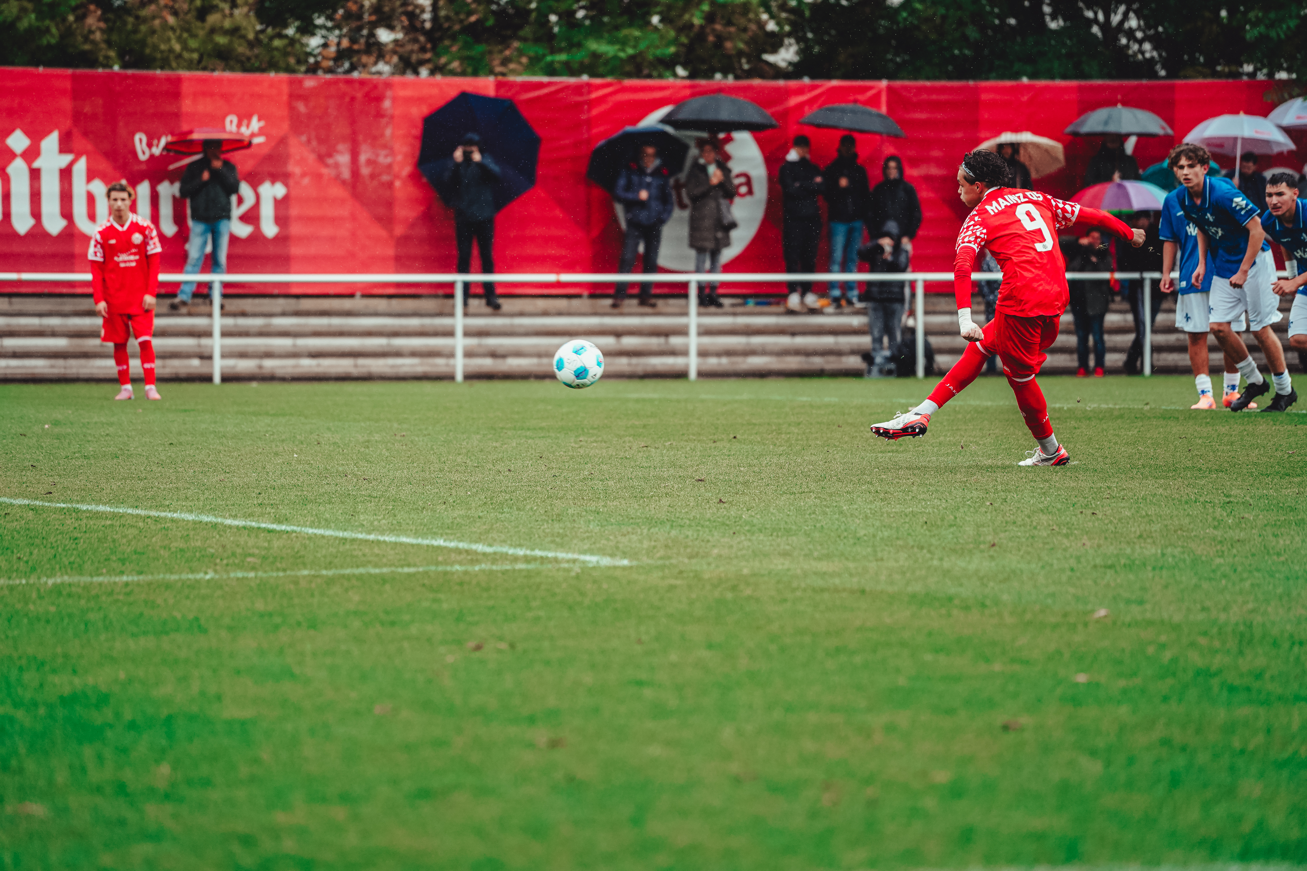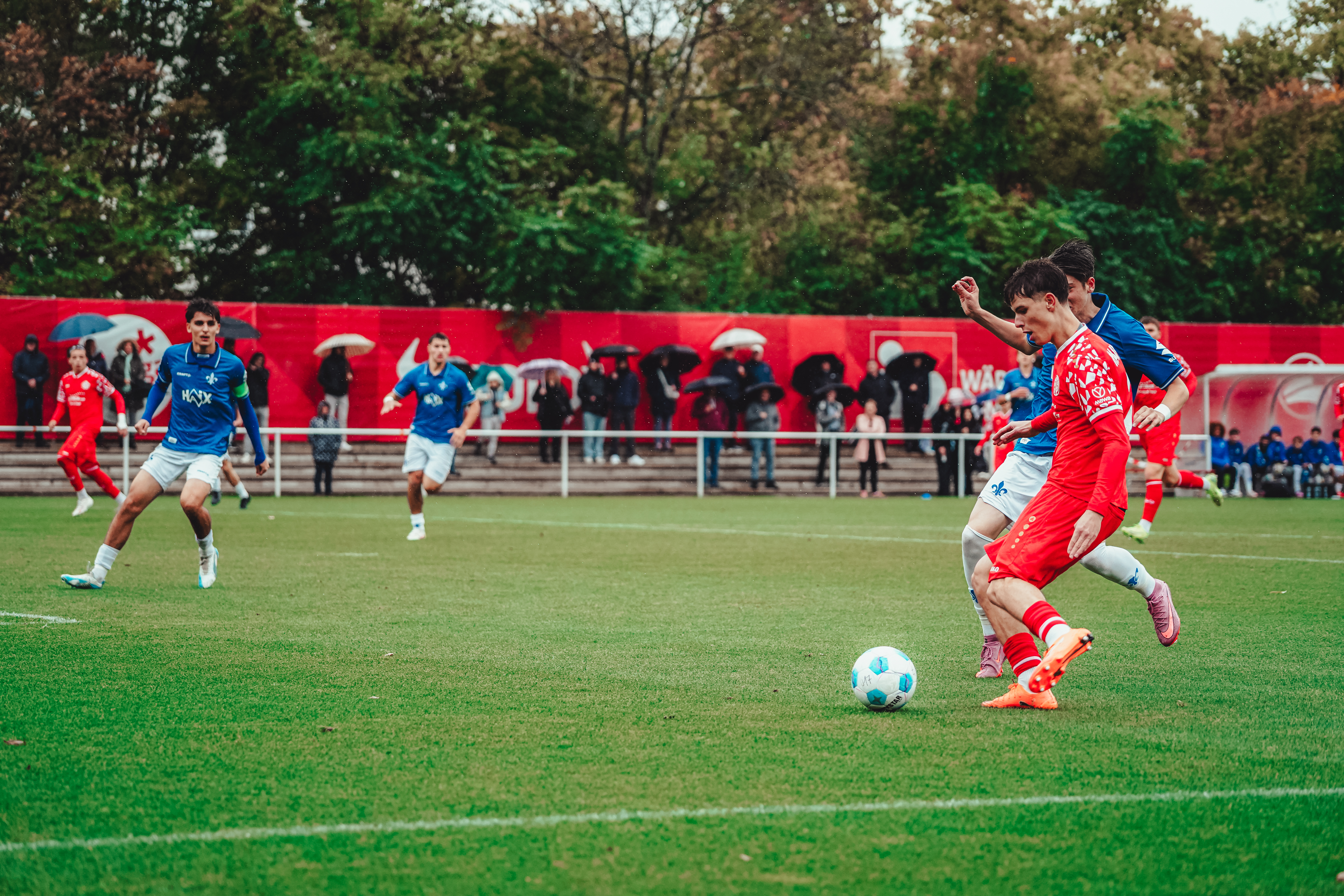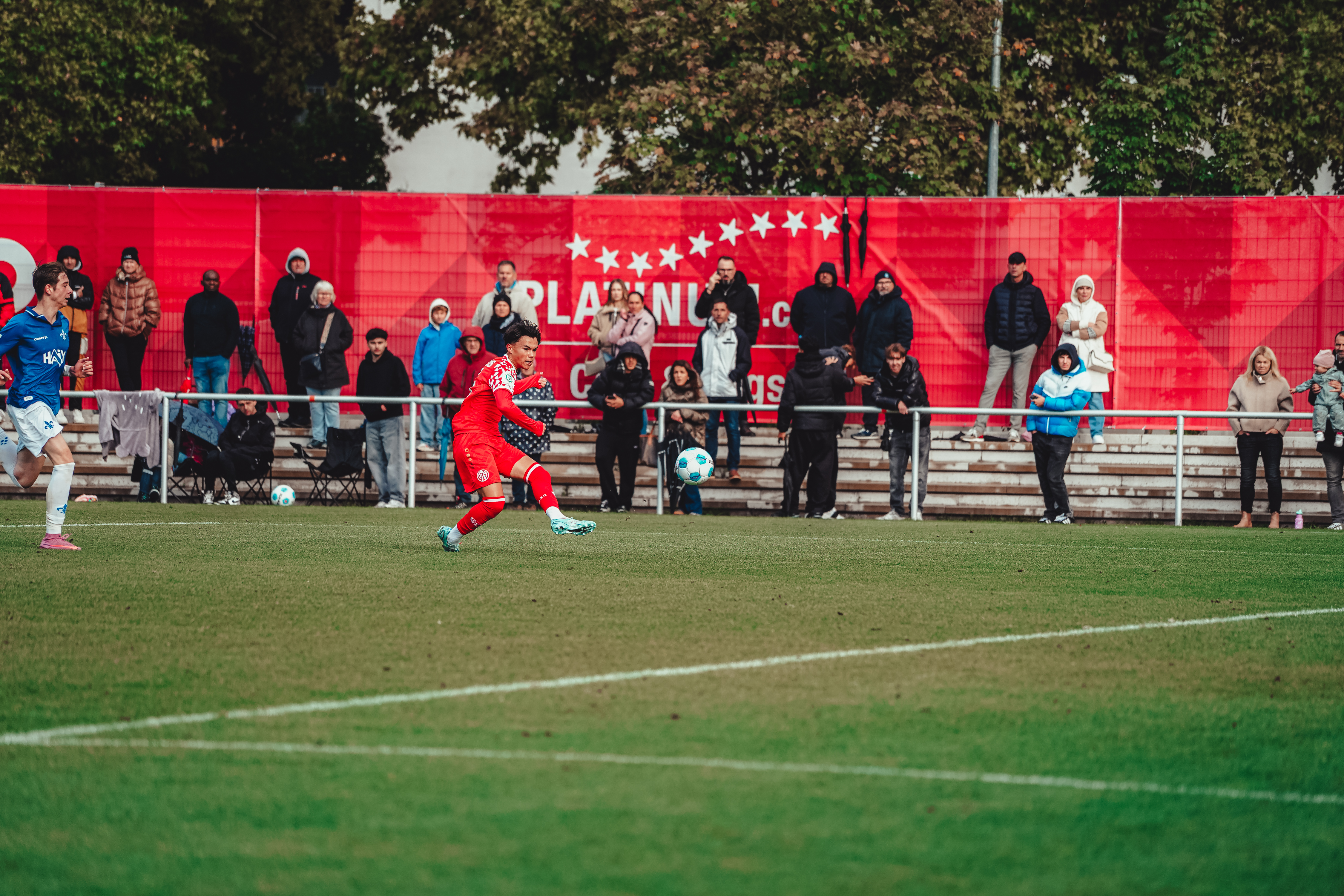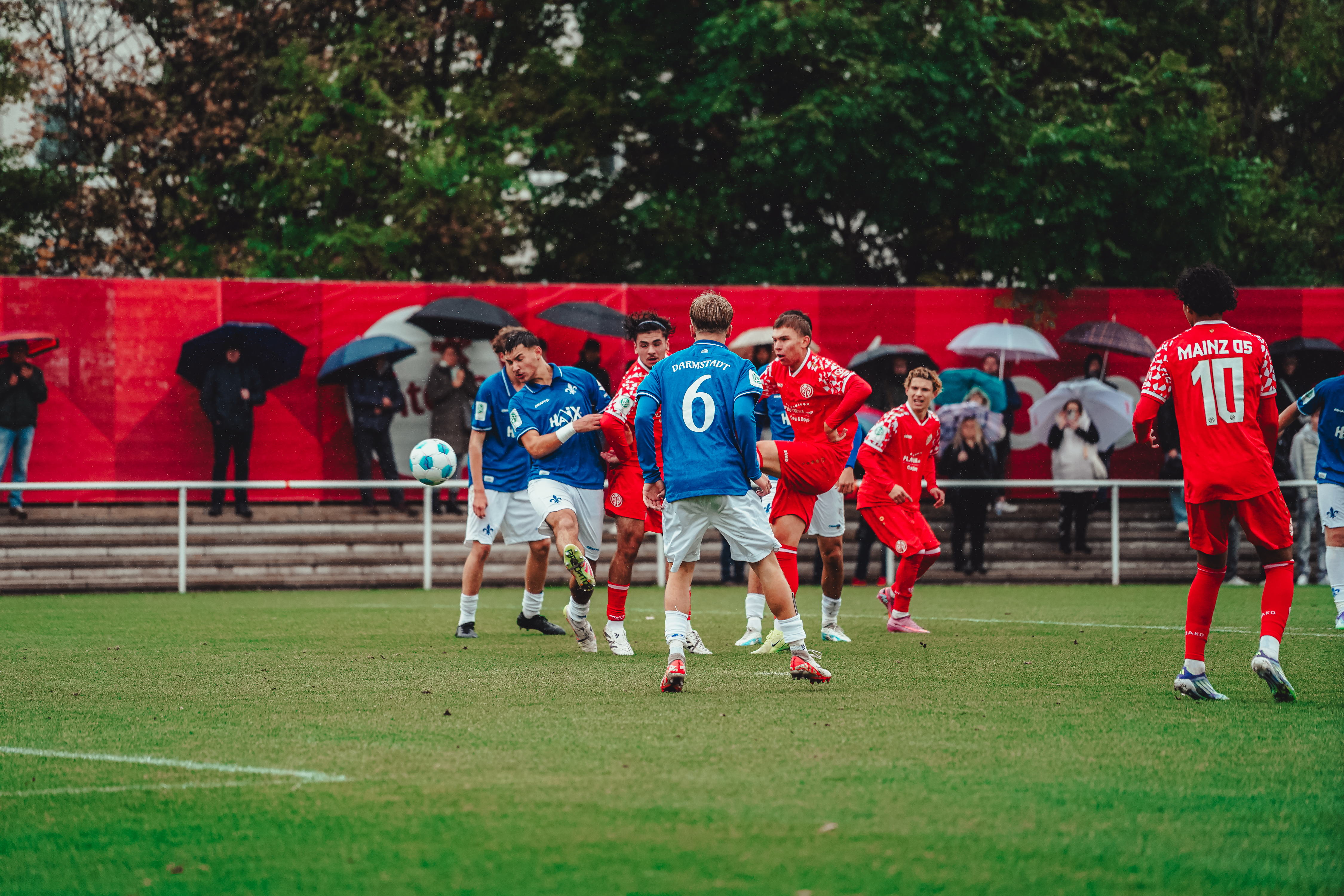 Dank einer vor allem in der ersten Halbzeit beeindruckenden Leistung hat die U17 gegen Darmstadt 98 ihren vierten Saisonsieg in der DFB-Nachwuchsliga gefeiert. Luca Hampel (3x), Fabian Rieß und Alessio Kersten hatten für den drückend überlegenen und nie nachlassenden FSV bereits im ersten Durchgang alles klar gemacht. In den zweiten 45 Minuten legte Simon Tedla mit seinem Doppelpack weiter nach. Weil die Gäste zwei Nachlässigkeiten in der Mainzer Defensive bestraften und die 05ER zahlreiche weitere Möglichkeiten ausließen, durften sich die 05ER am Ende über ein deutliches 7:2 freuen. Nach sechs Spieltagen belegt das Team von Marc Heidenmann mit 13 Punkten den zweiten Tabellenplatz hinter dem KSC.