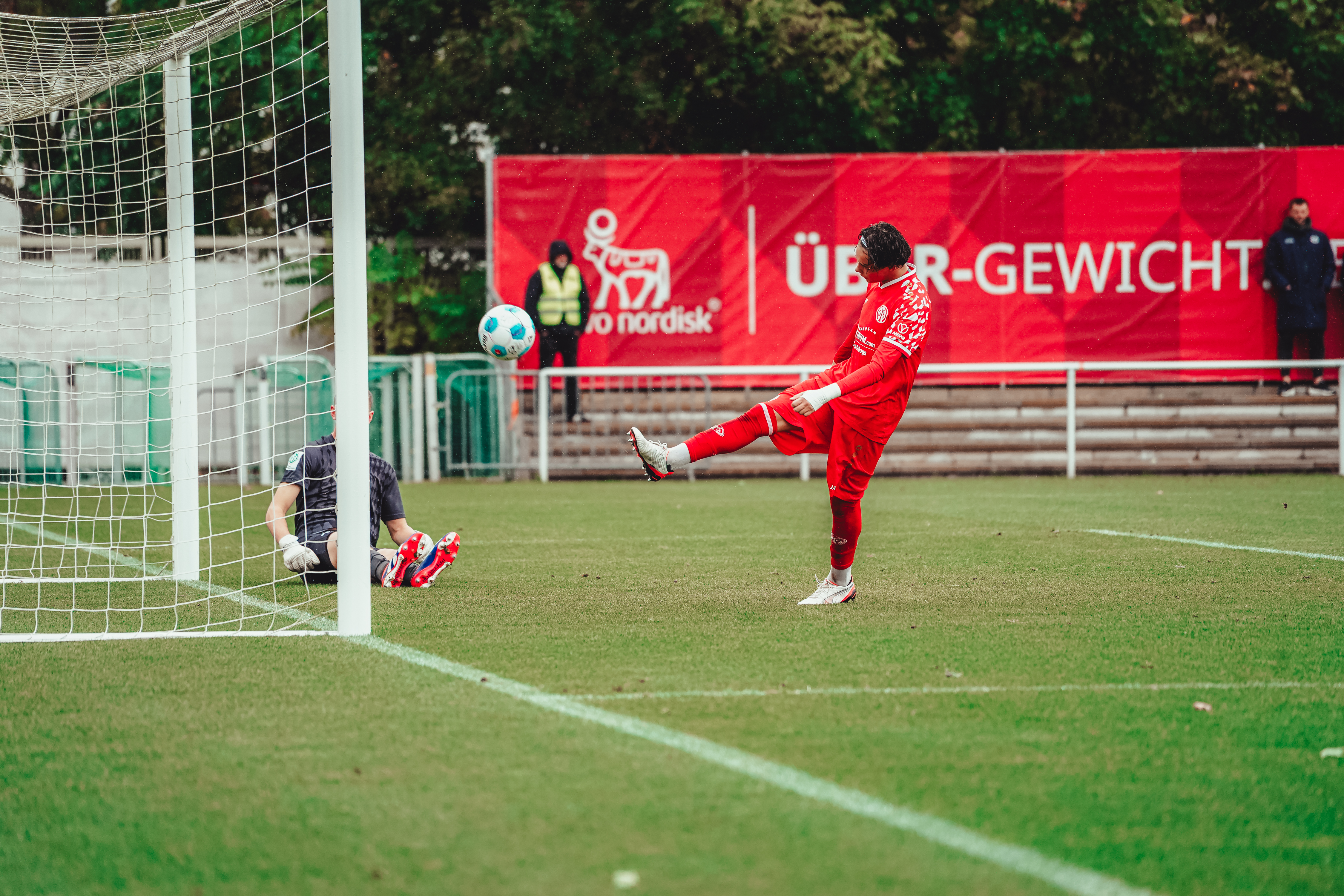 Nach dem für Heidenmann nicht zufriedenstellenden Unentschieden in Wiesbaden hatte der 34-Jährige seine Startelf auf zwei Positionen verändert. Anstelle von Justin Baldwin und Fynn Wombacher durften Kersten und Rieß beginnen. Die 05ER erwischten einen Start nach Maß und gingen in der 7. Minute durch eine Direktabnahme von Hampel in Führung. Nur vier Minuten später zog Vorlagengeber Rieß nach und erhöhte auf 2:0, bevor Tedla eine Riesenchance auf das dritte Tor liegen ließ. Das verdiente 3:0 fiel kurz darauf in der 17. Minute, nachdem Leon Staudacher im Strafraum gefoult worden war und Hampel den Strafstoß sicher versenkt hatte.