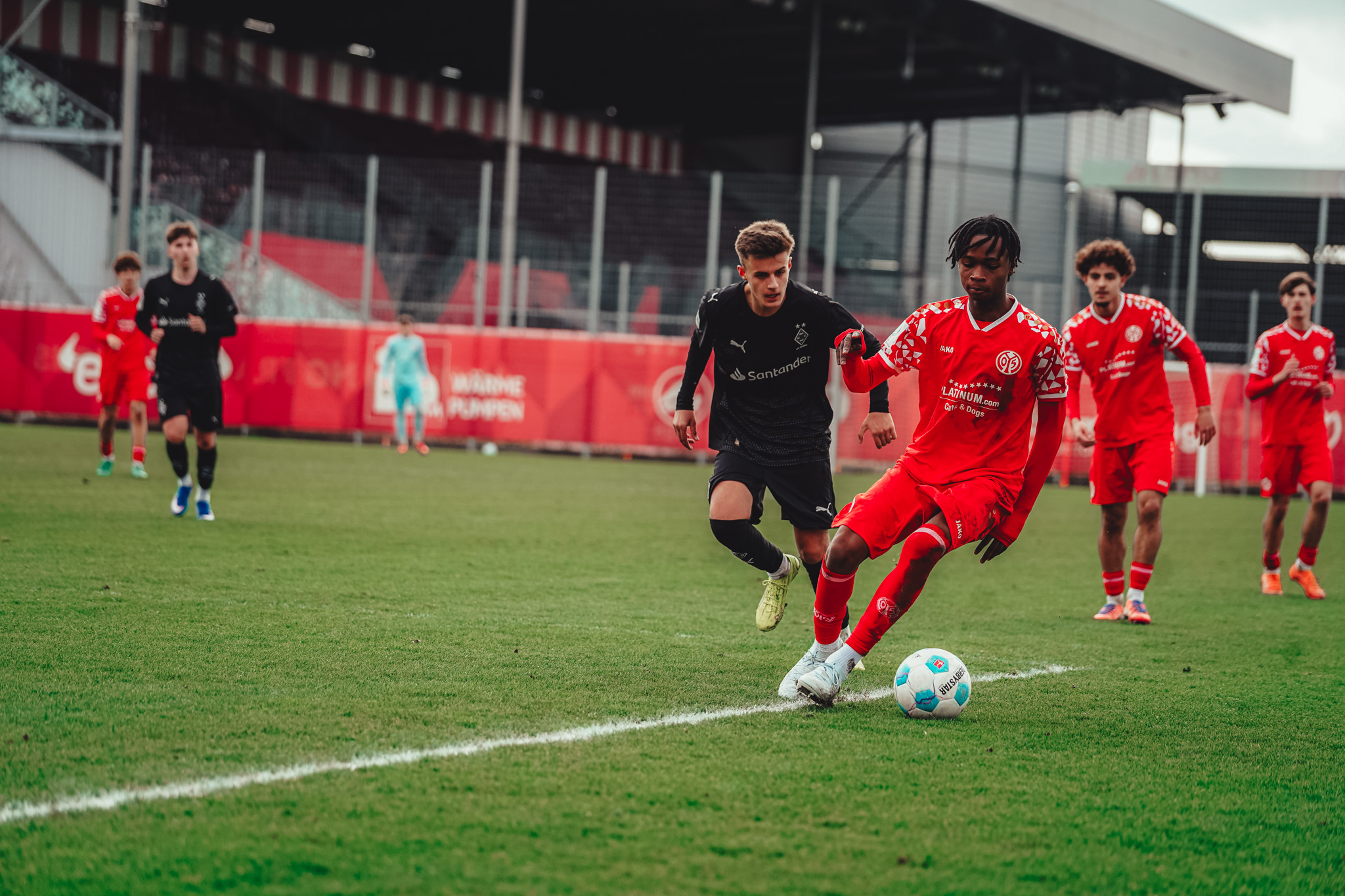 Auf der Anzeigetafel auf dem Platz neben dem Borussia-Park in Mönchengladbach stand nach 45 Minuten ein 2:2-Unentschieden. "Eigentlich hätte es 2:0 für uns stehen müssen", sagte Marc Heidenmann. Denn der U17-Cheftrainer hatte eine "richtig gute erste Halbzeit" seines Teams gesehen, "vielleicht die beste, die wir in den letzten Wochen gespielt haben." Die 05ER hatten alles im Griff und zwei Tore durch Snoh (8.) und Justin Baldwin (25.) wunderschön herausgespielt. Doch mit Geschenken für die Gastgeber nach individuellen Fehlern in der zweiten und 32. Minute hielt der FSV die Gladbacher, bei denen Destini Megogo und Shinnosuke Yamakawa trafen, selbst im Spiel. "Wir waren bis dahin wirklich sehr zufrieden mit der Leistung".