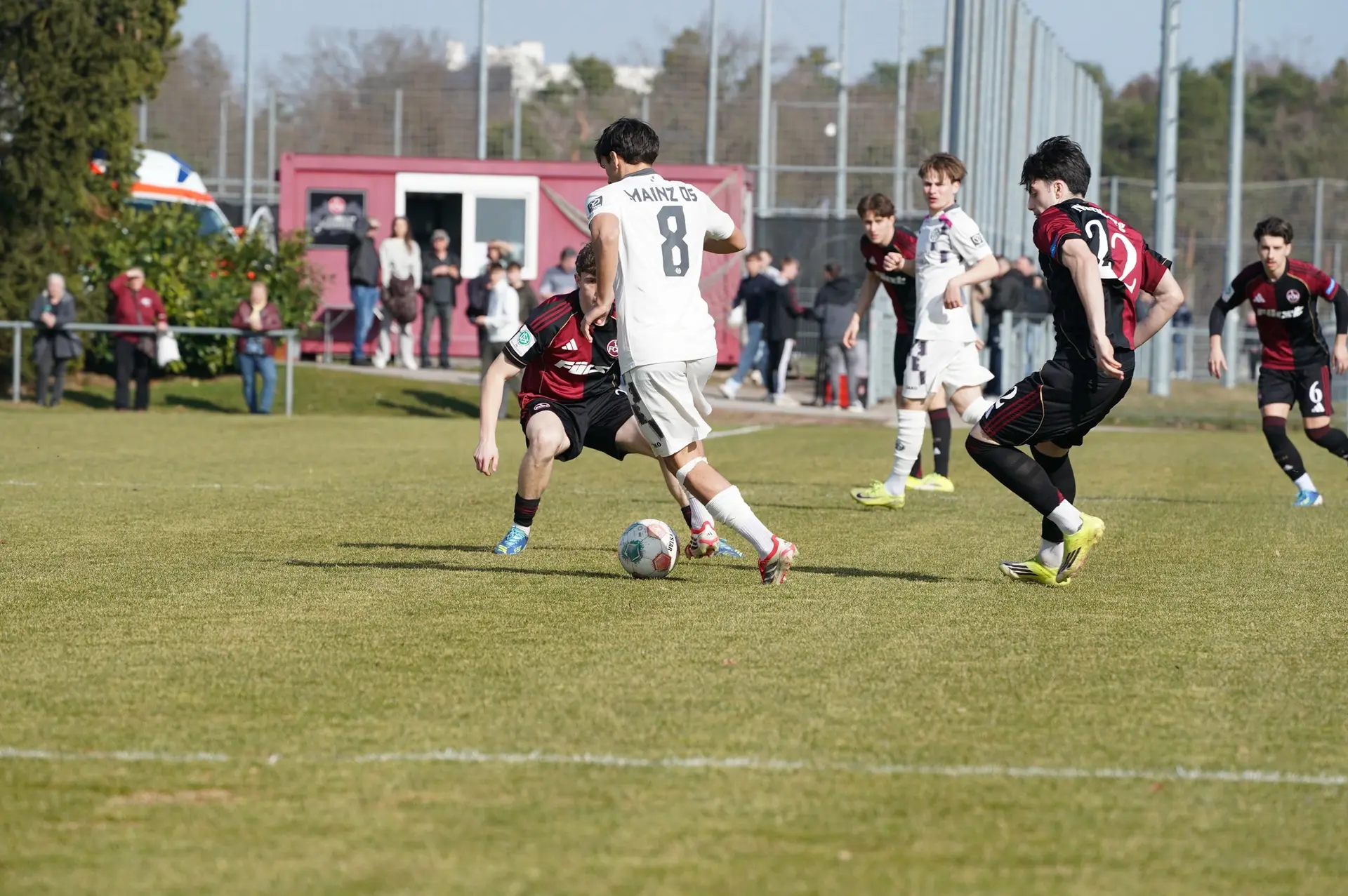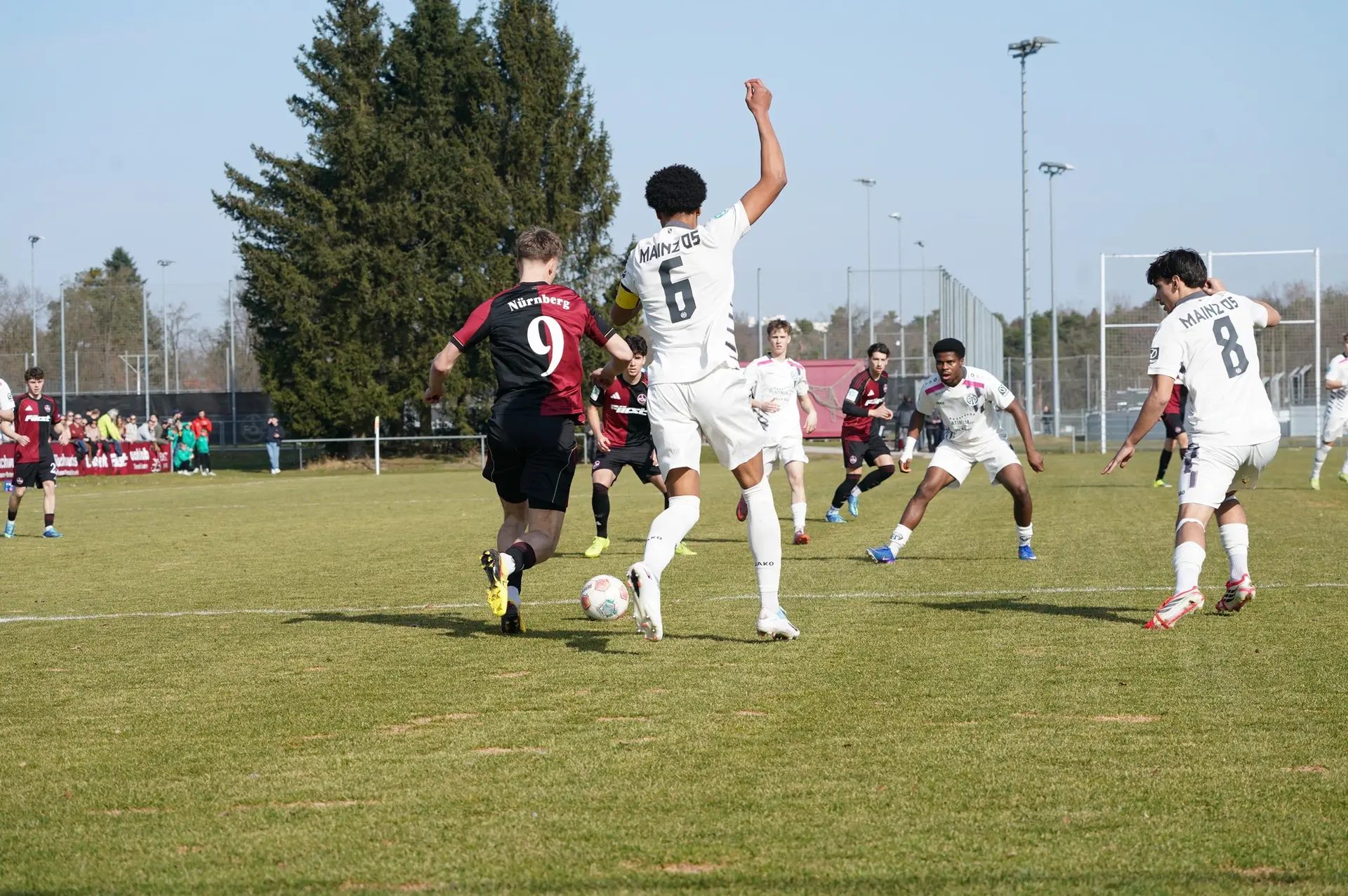 Die Mainzer U19 hat ihre erste Niederlage in der DFB-Nachwuchsliga einstecken müssen. Beim 0:1 in Nürnberg zeigten die 05ER, die nach einer Roten Karte gegen Tyrone Jarrett achtzig Minuten in Unterzahl spielen mussten, eine kämpferische Leistung und hätten fast noch einen Punkt nach Mainz mitgenommen. U19-Cheftrainer Jan Kirchhoff fasste das Spiel folgendermaßen zusammen: