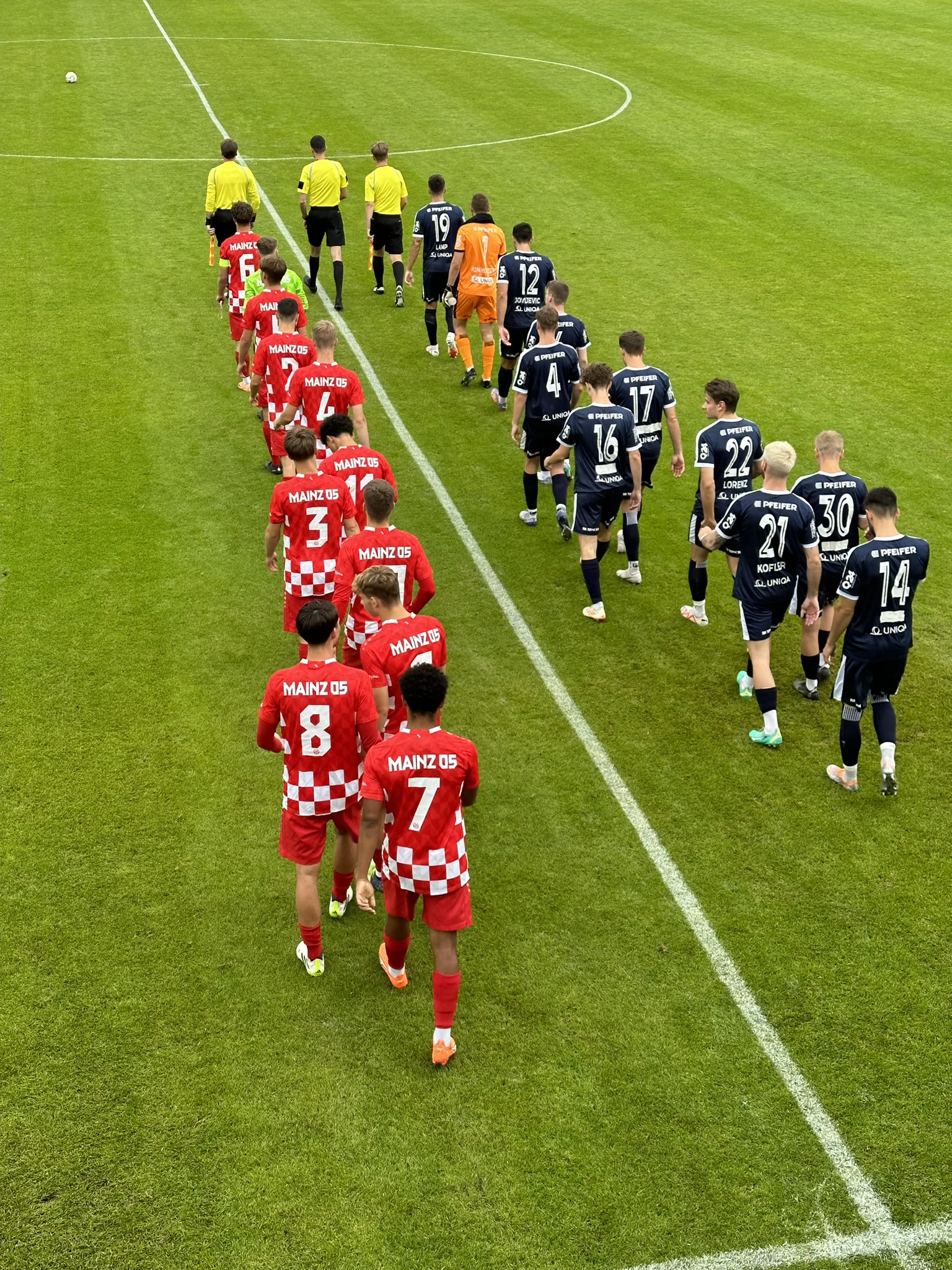 Der inhaltliche Schwerpunkt der letzten Wochen lag zunächst auf der defensiven Grundordnung, aus der man als Team agieren möchte und die die Basis für das 05-typische Spiel bildet. "Als Einheit auf dem Platz zu agieren, daran gilt es weiter zu arbeiten", betont Hoffmann. Die Offensivpower der letzten beiden Jahre, die man in Person von Brajan Gruda und Nelson Weiper an die eigene Profimannschaft sowie Dennis Kaygin an Rapid Wien abgegeben hat, sei nicht leicht zu kompensieren. Auch die Verletzungen von Maxim Dal und Lovis Bierschenk wiegen schwer. Den Glauben an sich selbst und die eigenen Stärken individuell und mannschaftlich zu fördern, war und ist deshalb eine der Hauptaufgaben in der Vorbereitung. "Wir haben das im Trainingslager über Challenges gemacht und sind auch wieder die Simmering-Alm mit dem Fahrrad hochgefahren. Jeder hat da seine Grenzen neu kennengelernt und sich gequält", erzählt Hoffmann. "Toll zu sehen war, dass einige Jungs nochmal runter sind, um die Mitspieler zu unterstützen, die noch auf dem Weg waren, damit es alle in der Zeit schaffen. Ein schönes Zeichen, dass die Mannschaft aufeinander achtgibt, sich wertschätzt und unterstützt. Das stimmt uns positiv" Auf dem Platz müssen und wollen die 05ER nun ebenfalls eine Schippe drauflegen.