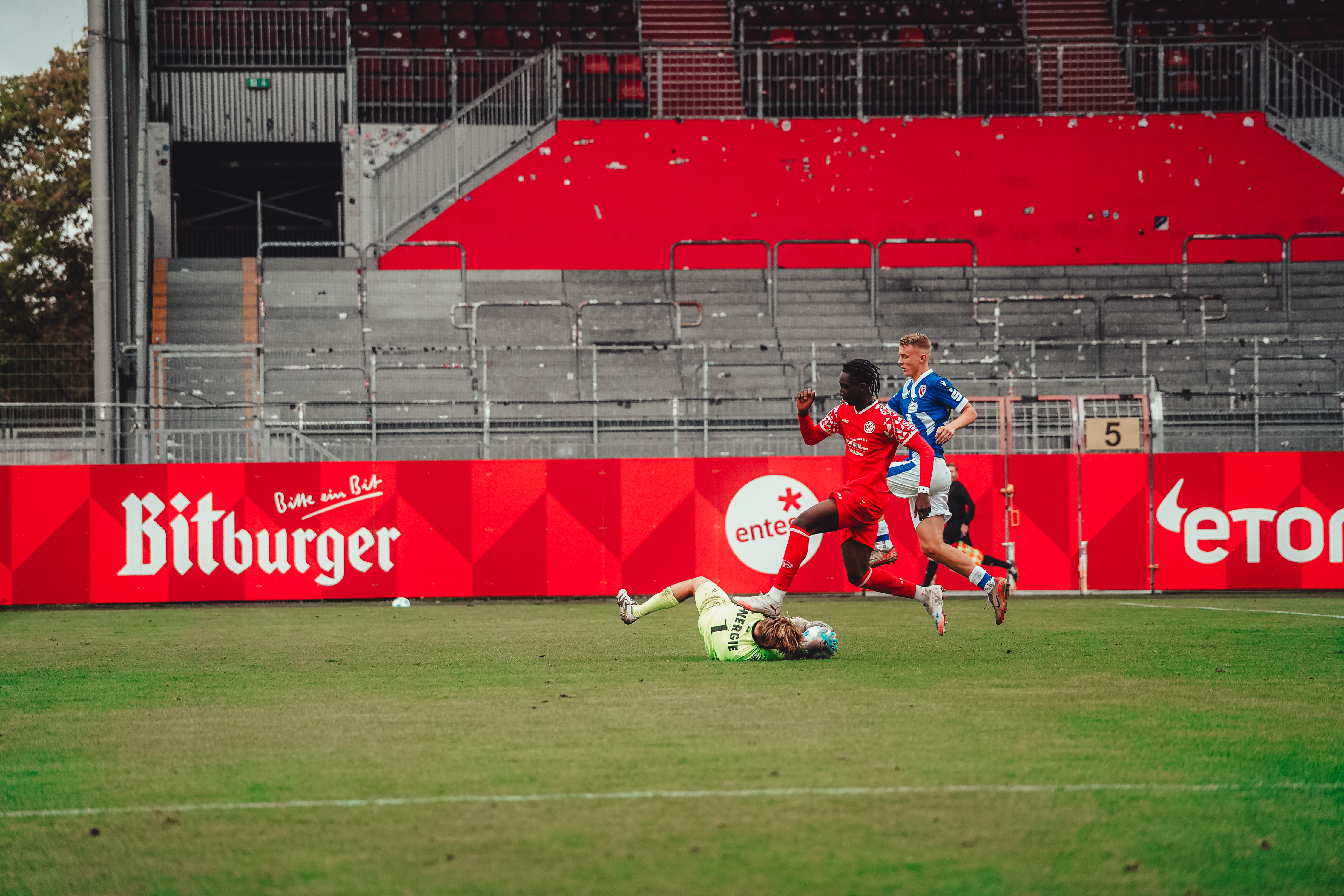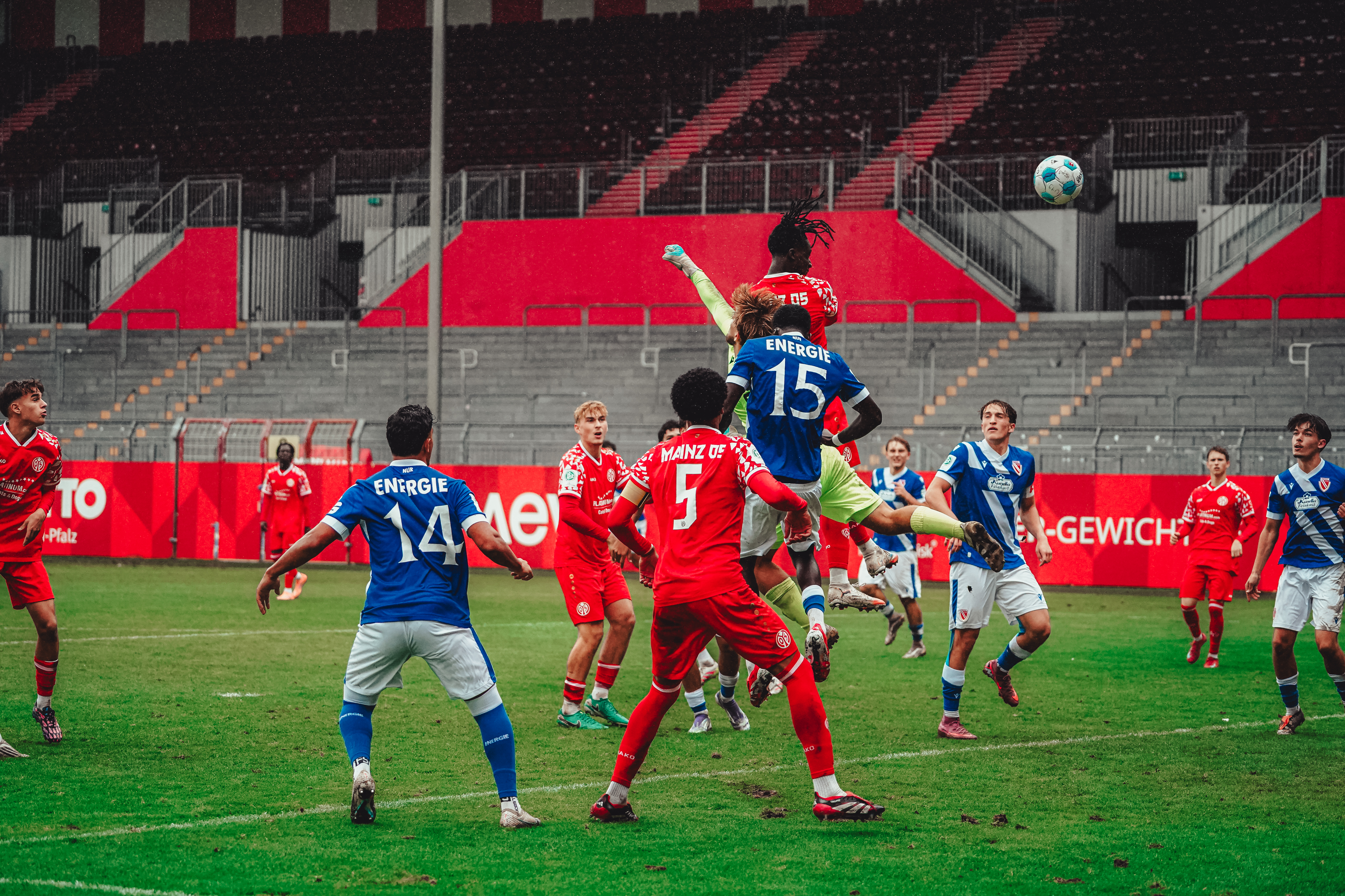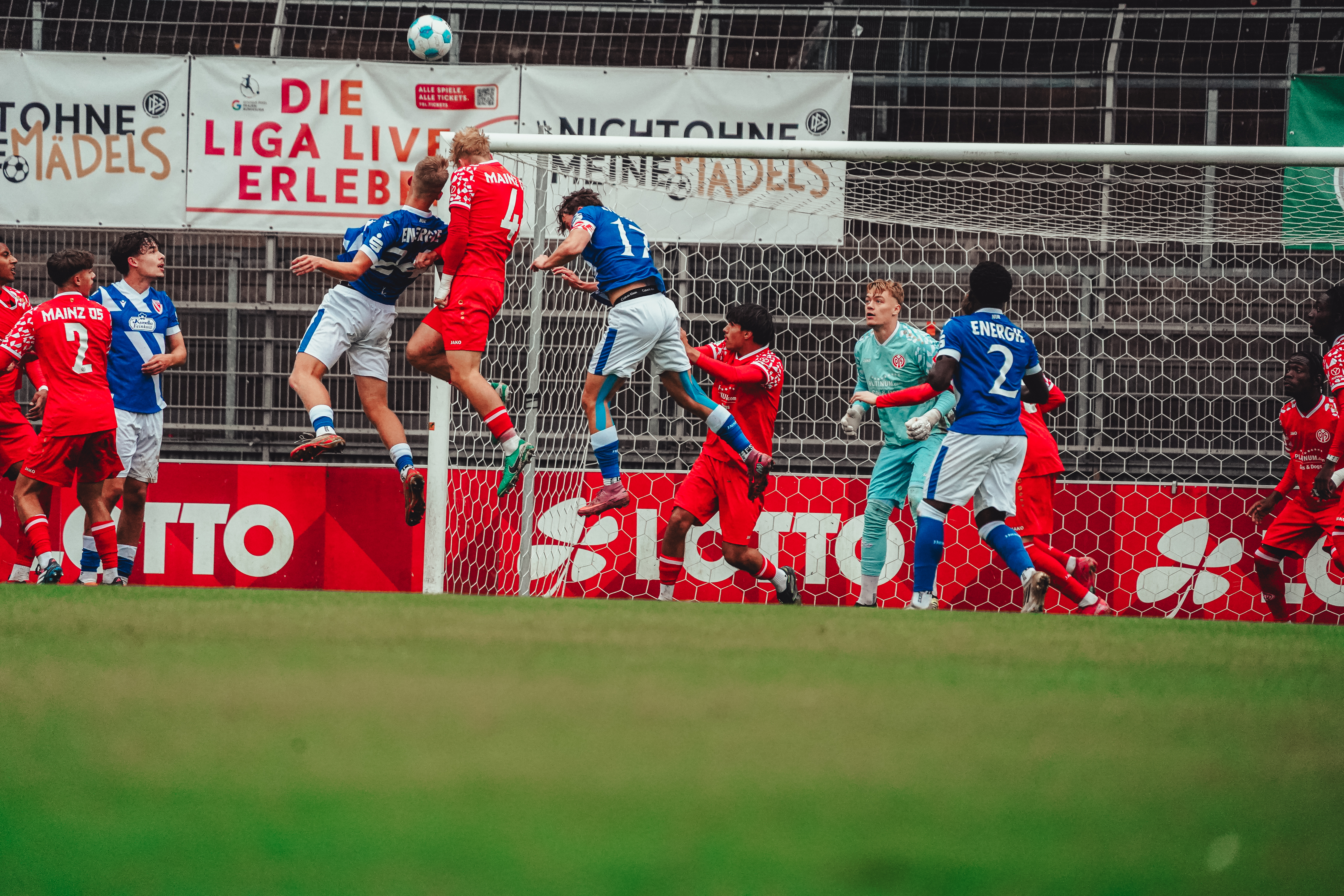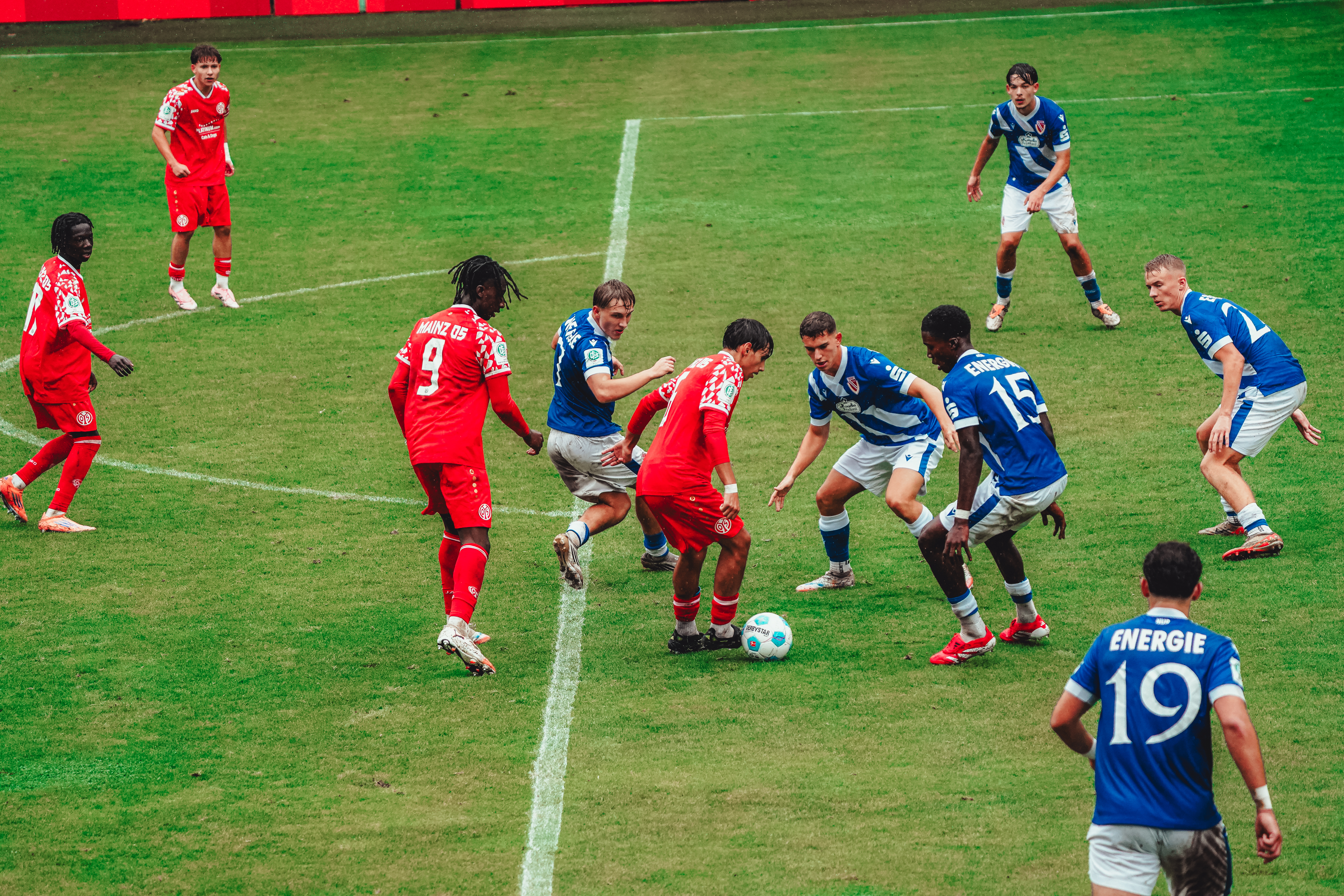 Die Mainzer U19 hat den Einzug in das Achtelfinale des DFB-Pokals verpasst und vor heimischem Publikum 1:6 (0:3) gegen den FC Energie Cottbus verloren. Die starken Lausitzer waren bereits nach zehn Minuten in Führung gegangen und hatten kurz darauf ihren zweiten Treffer erzielt, dem ein Elfmetertor in der 45. Minute folgte. Nach der Pause vergaben die 05ER drei gute Chancen auf den Anschluss, bevor die im zweiten Durchgang passiveren Gäste die Partie vorzeitig entschieden. Bis auf einen Ehrentreffer von Daniel Imafidon in der 67. Minute gelang den durchaus bemühten Rheinhessen kein weiteres Tor mehr, weshalb sich der FSV mit einer verdienten Niederlage aus dem DFB-Pokal verabschieden muss.