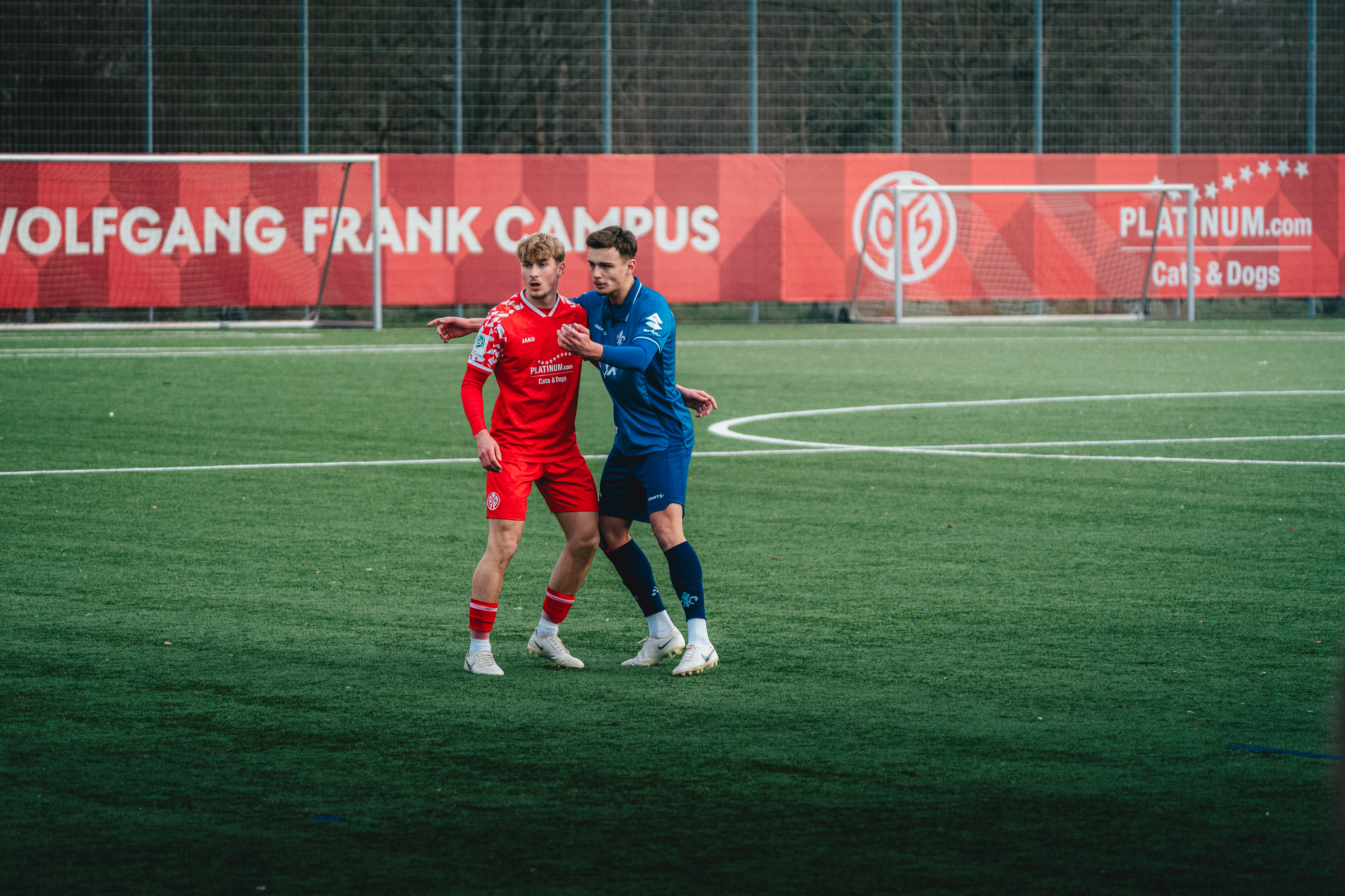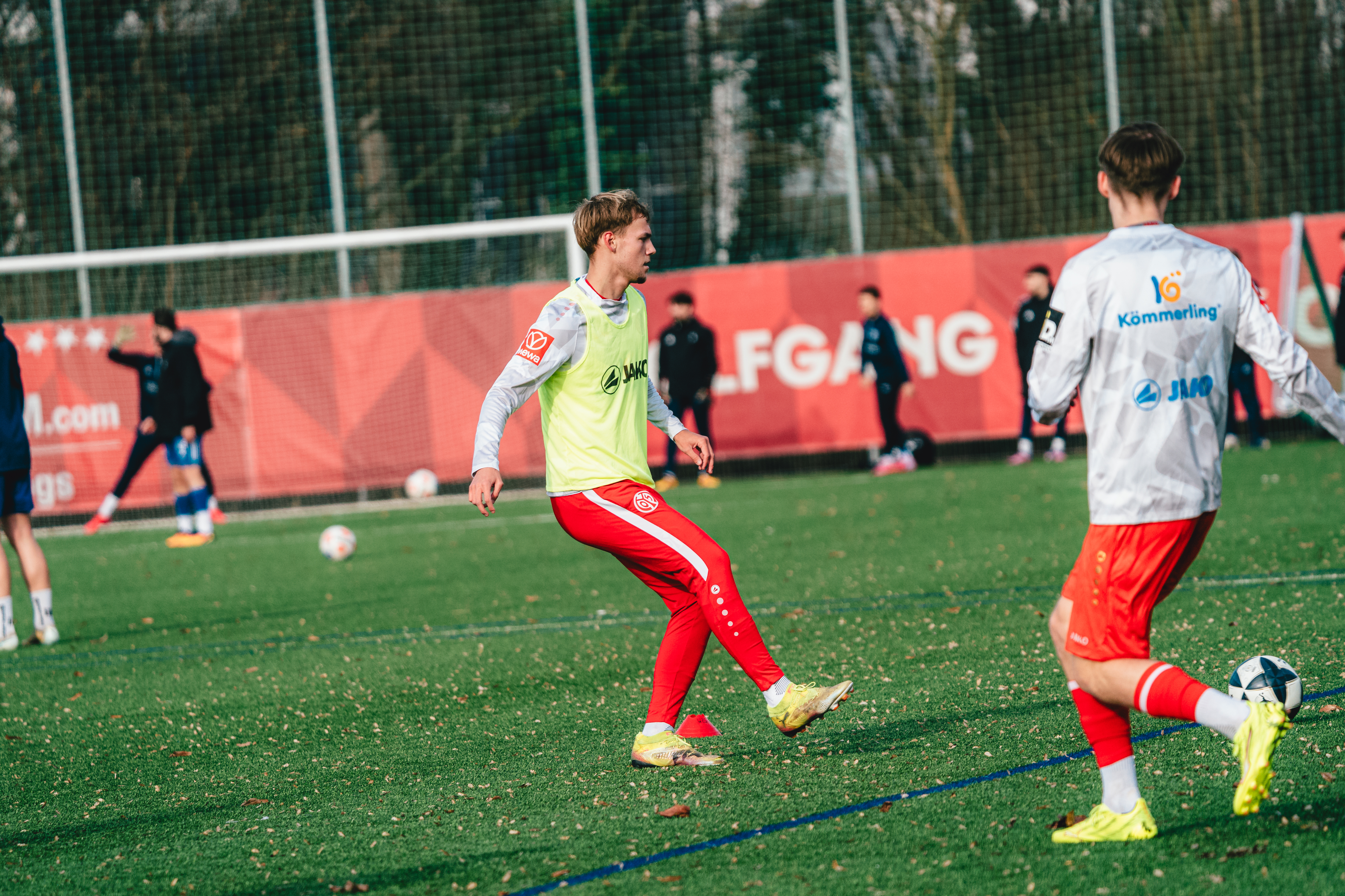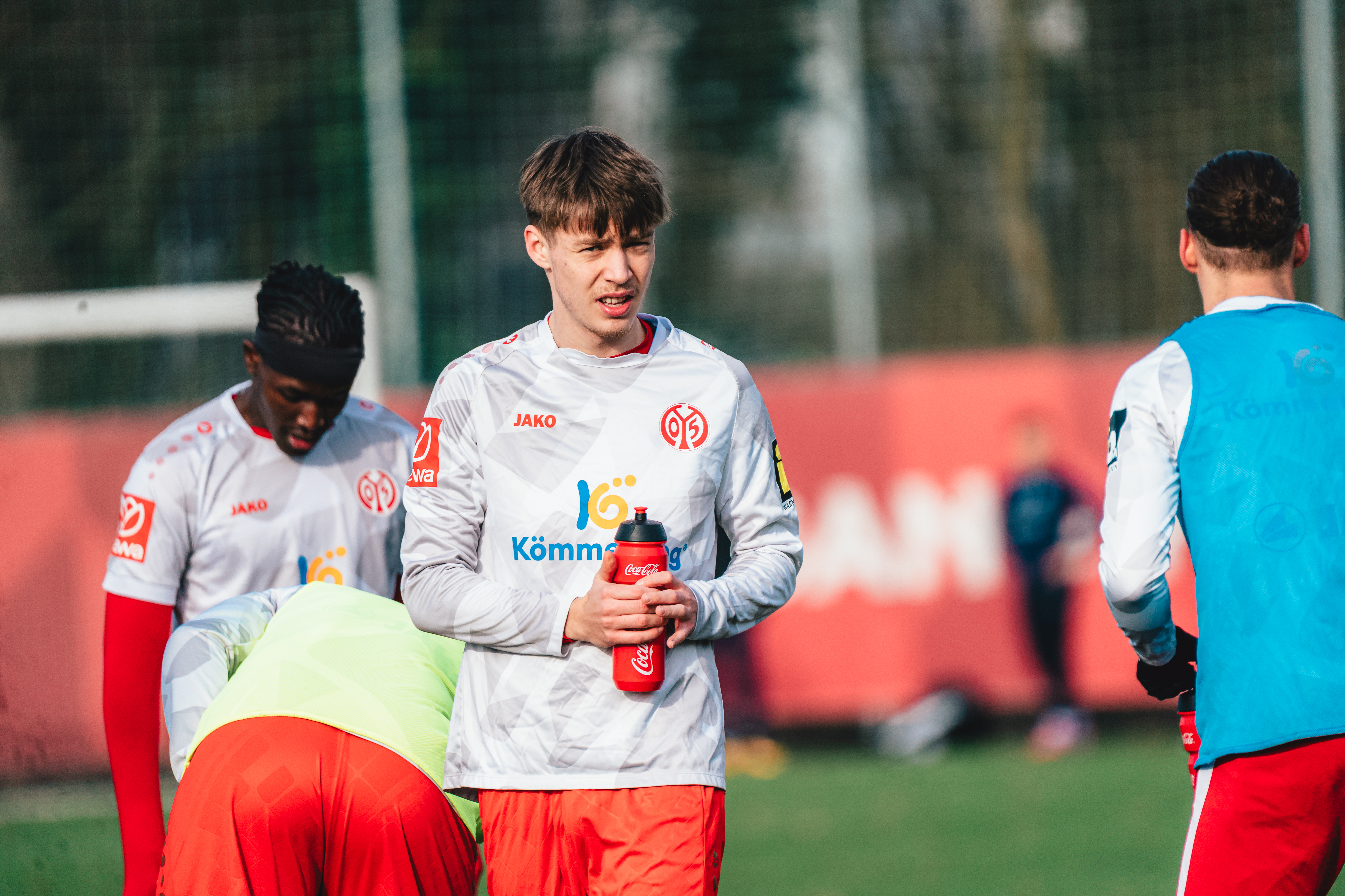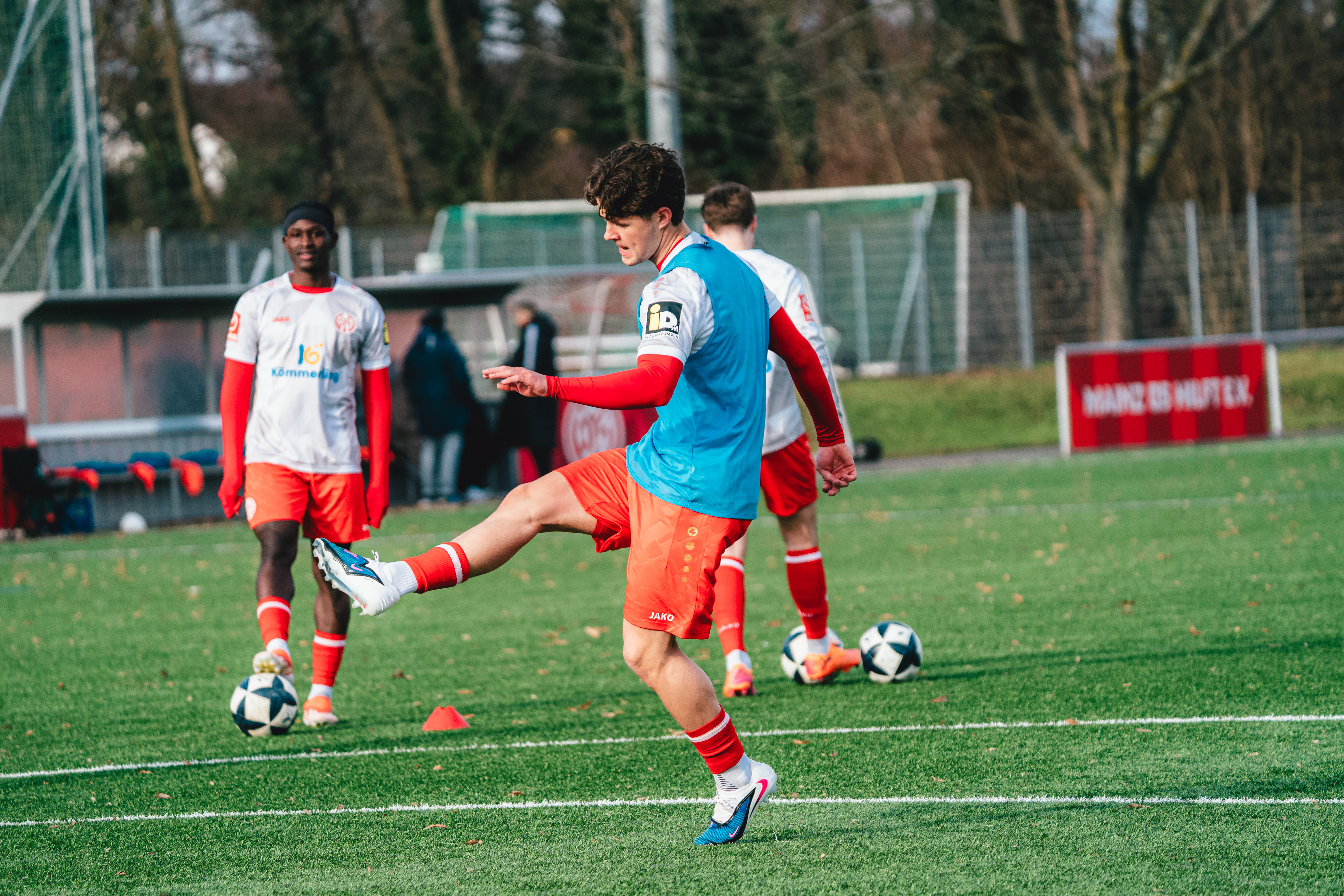 Nach einer Trainingswoche stand auch die höchste Ausbildungsmannschaft erstmals wieder auf dem Platz, um ein Testspiel zu absolvieren. Gegner auf Kunstrasen war Verbandsligist TuS Mechtersheim, trainiert von Nauwid Amiri, dem Bruder des Mainzer Mittelfeldspielers. Die frühe Führung durch Tebo Gabriel nach drei Minuten drehte die TuS in der ersten Halbzeit mit zwei Treffern. Der Tabellendritte der Regionalliga Südwest benötigte einen Elfmetertreffer von Yunus Malli, um auszugleichen. Julian Derstroff sorgte sieben Minuten vor Schluss noch für den knappen Mainzer 3:2 (1:2)-Sieg. Am kommenden Samstag (24.01., 16 Uhr) steigt der nächste Test, diesmal gegen Oberligist FC Emmelshausen-Karbach.