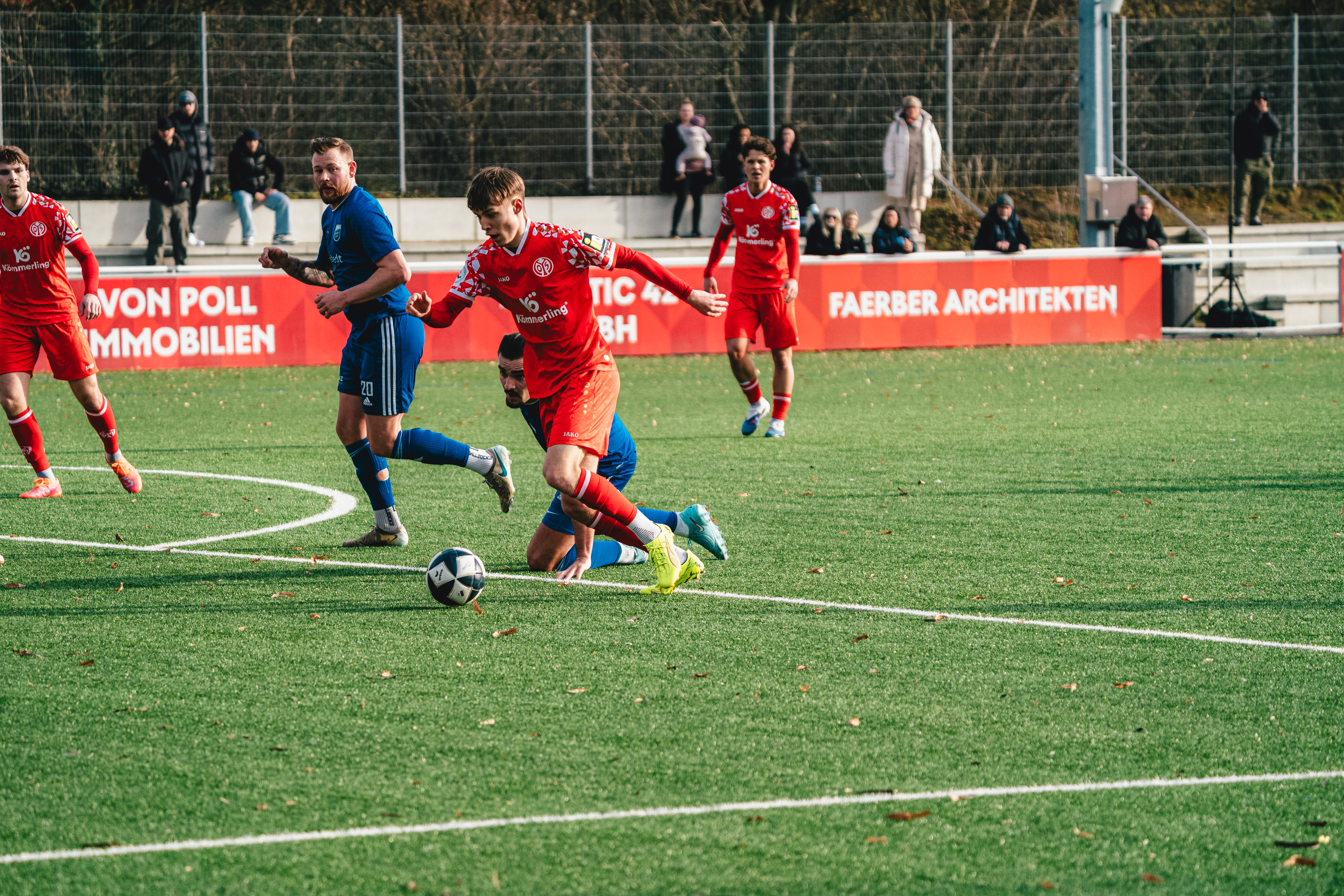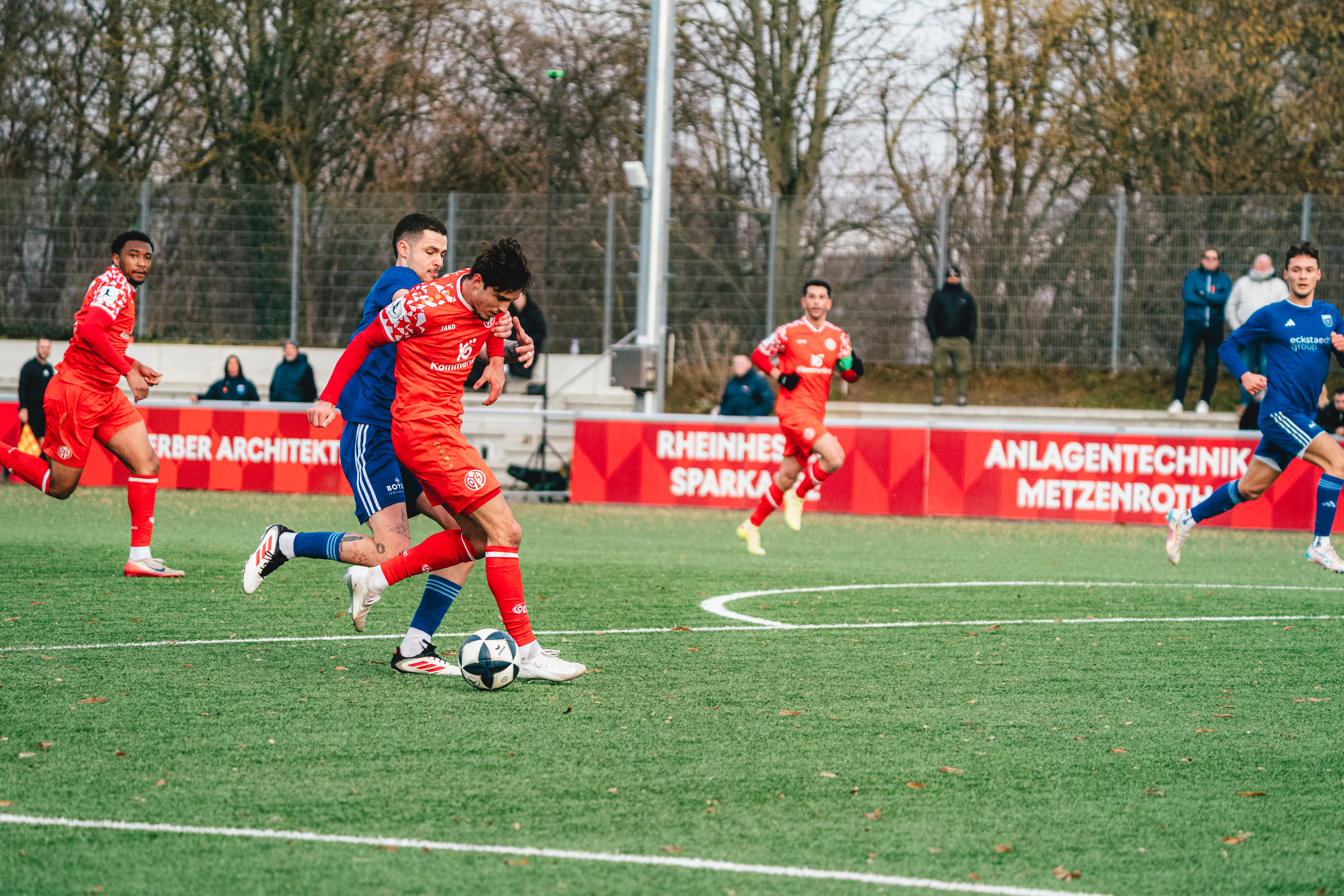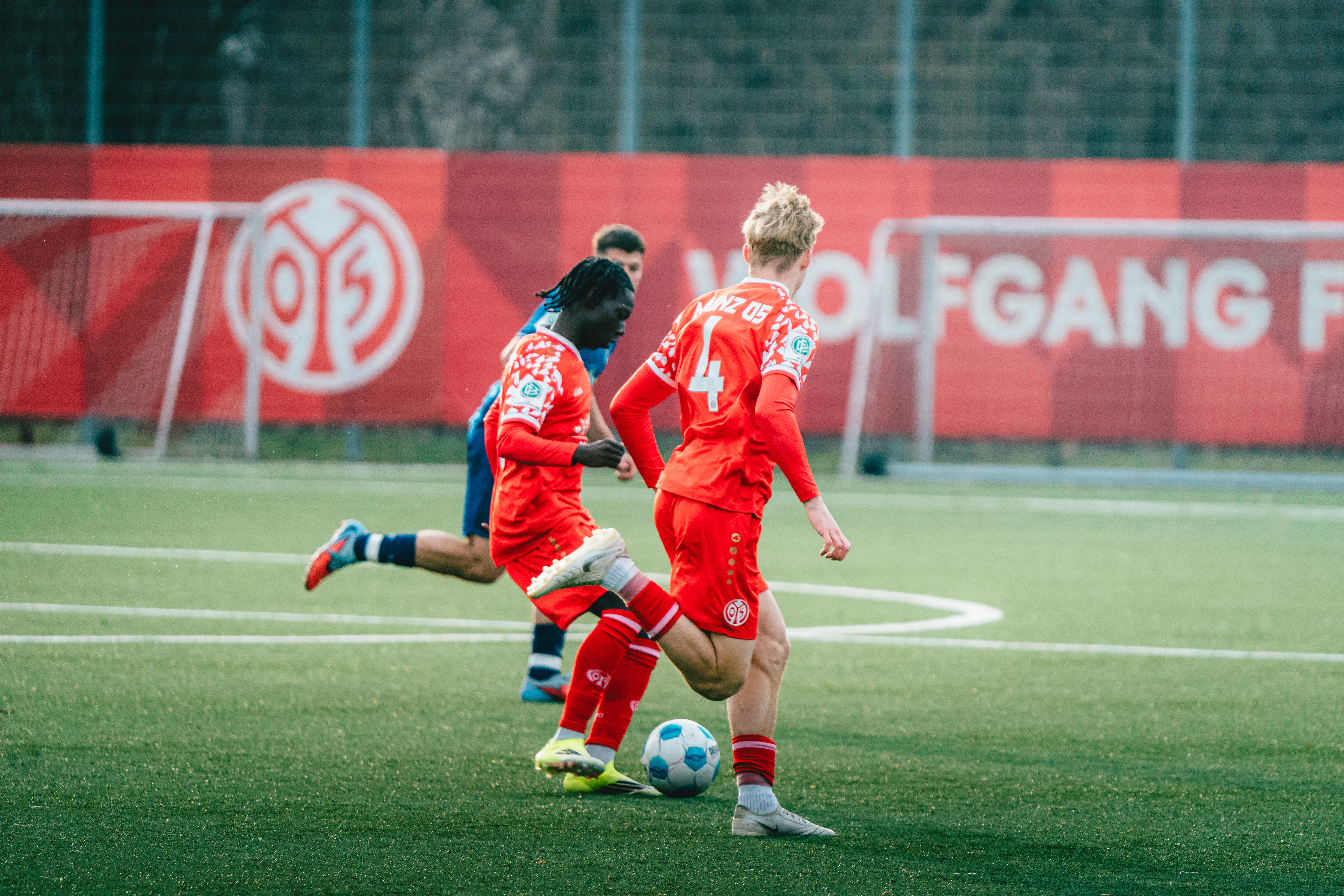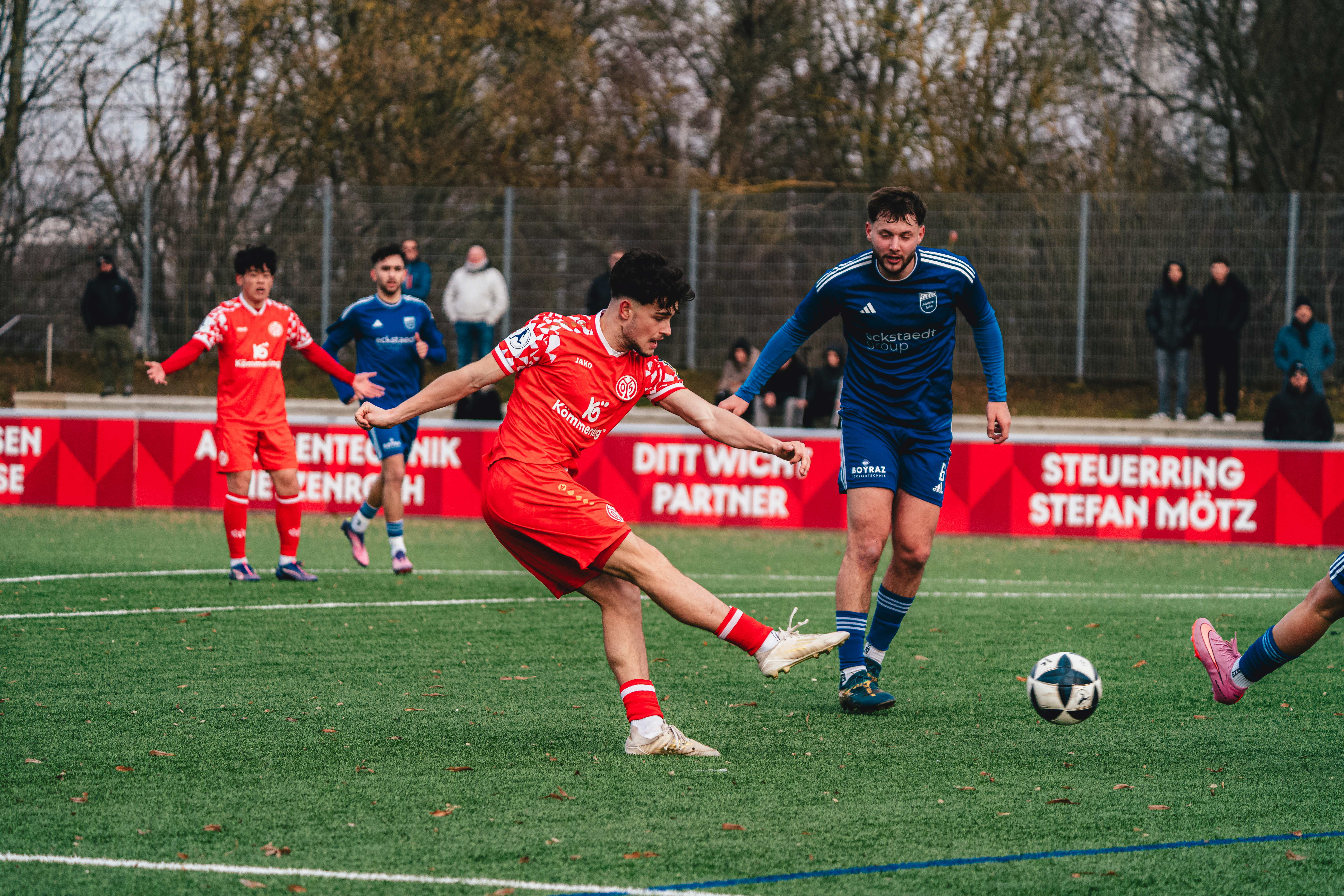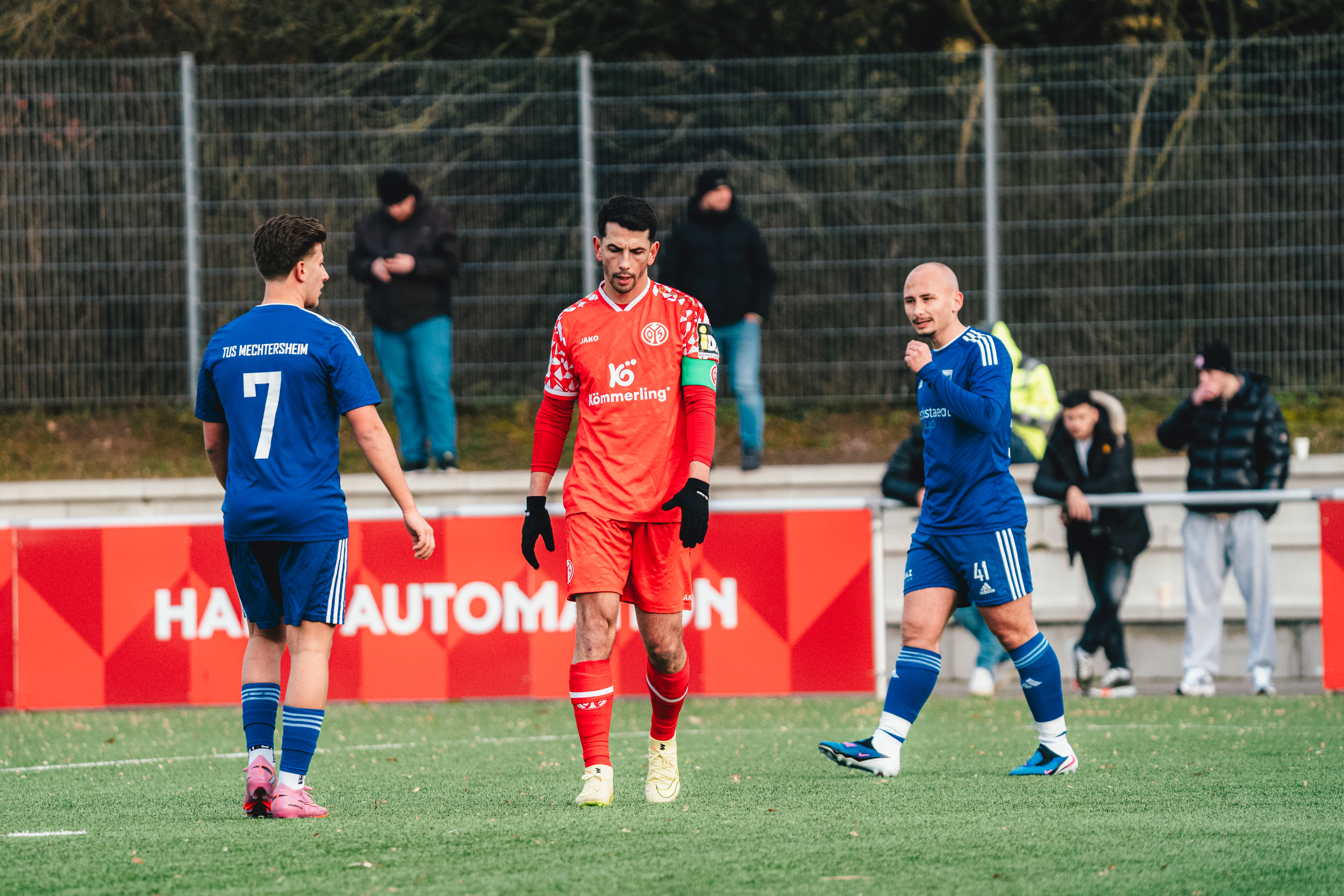 Nach einer Trainingswoche stand auch die höchste Ausbildungsmannschaft erstmals wieder auf dem Platz, um ein Testspiel zu absolvieren. Gegner auf Kunstrasen war Verbandsligist TuS Mechtersheim, trainiert von Nauwid Amiri, dem Bruder des Mainzer Mittelfeldspielers. Die frühe Führung durch Tebo Gabriel nach drei Minuten drehte die TuS in der ersten Halbzeit mit zwei Treffern. Der Tabellendritte der Regionalliga Südwest benötigte einen Elfmetertreffer von Yunus Malli, um auszugleichen. Julian Derstroff sorgte sieben Minuten vor Schluss noch für den knappen Mainzer 3:2 (1:2)-Sieg. Am kommenden Samstag (24.01., 16 Uhr) steigt der nächste Test, diesmal gegen Oberligist FC Emmelshausen-Karbach.