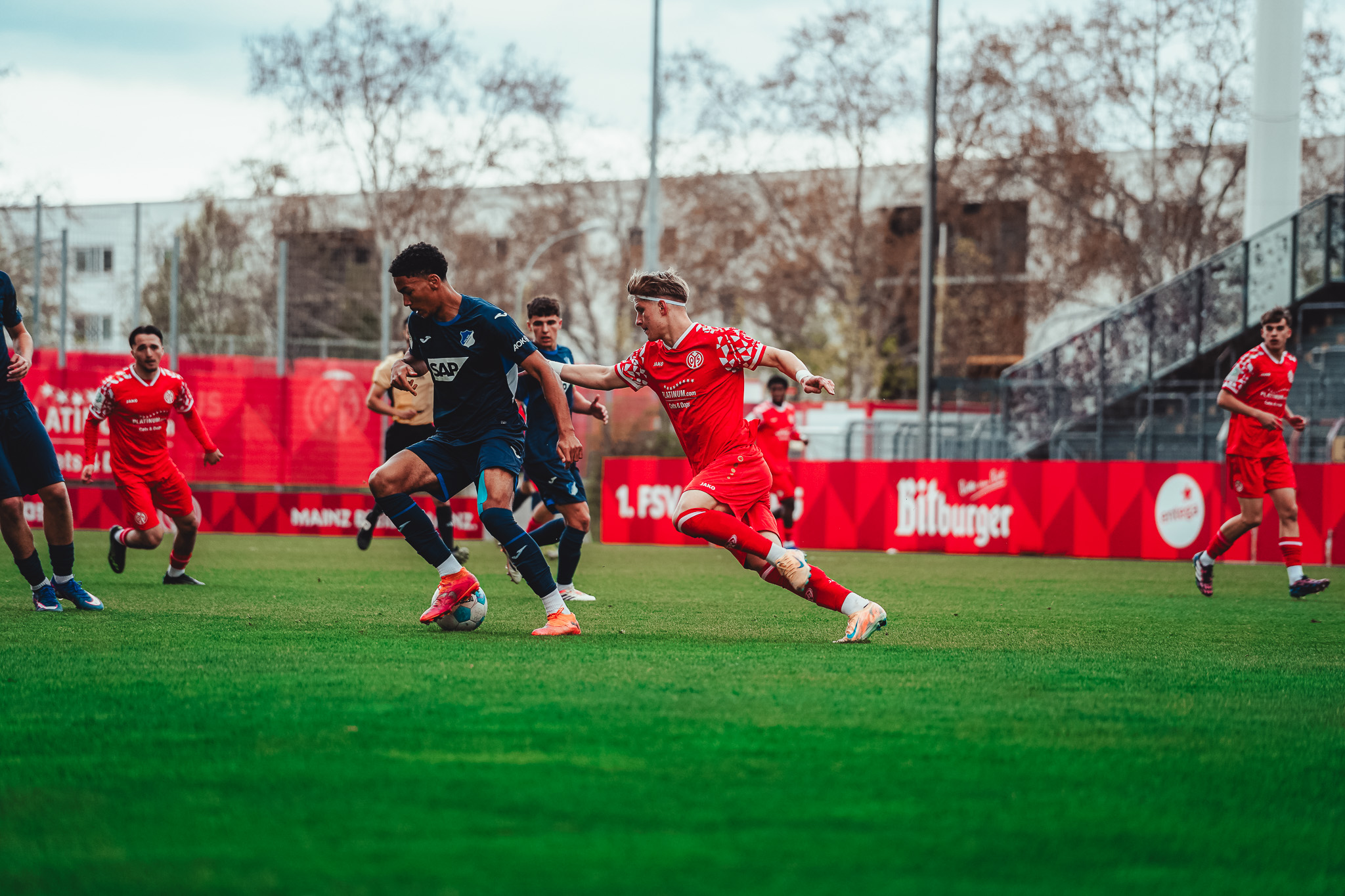 Die Mainzer U19 hat am Samstagnachmittag das Duell mit der TSG Hoffenheim im Bruchwegstadion mit 0:3 (0:1) verloren. Über 90 Minuten entwickelten die 05ER zu wenig Torgefahr und gerieten durch eigene Fehler in Rückstand. Nach der Niederlage gegen den direkten Verfolger in der DFB-Nachwuchsliga rutscht der FSV auf den vierten Tabellenplatz seiner Hauptrundengruppe.