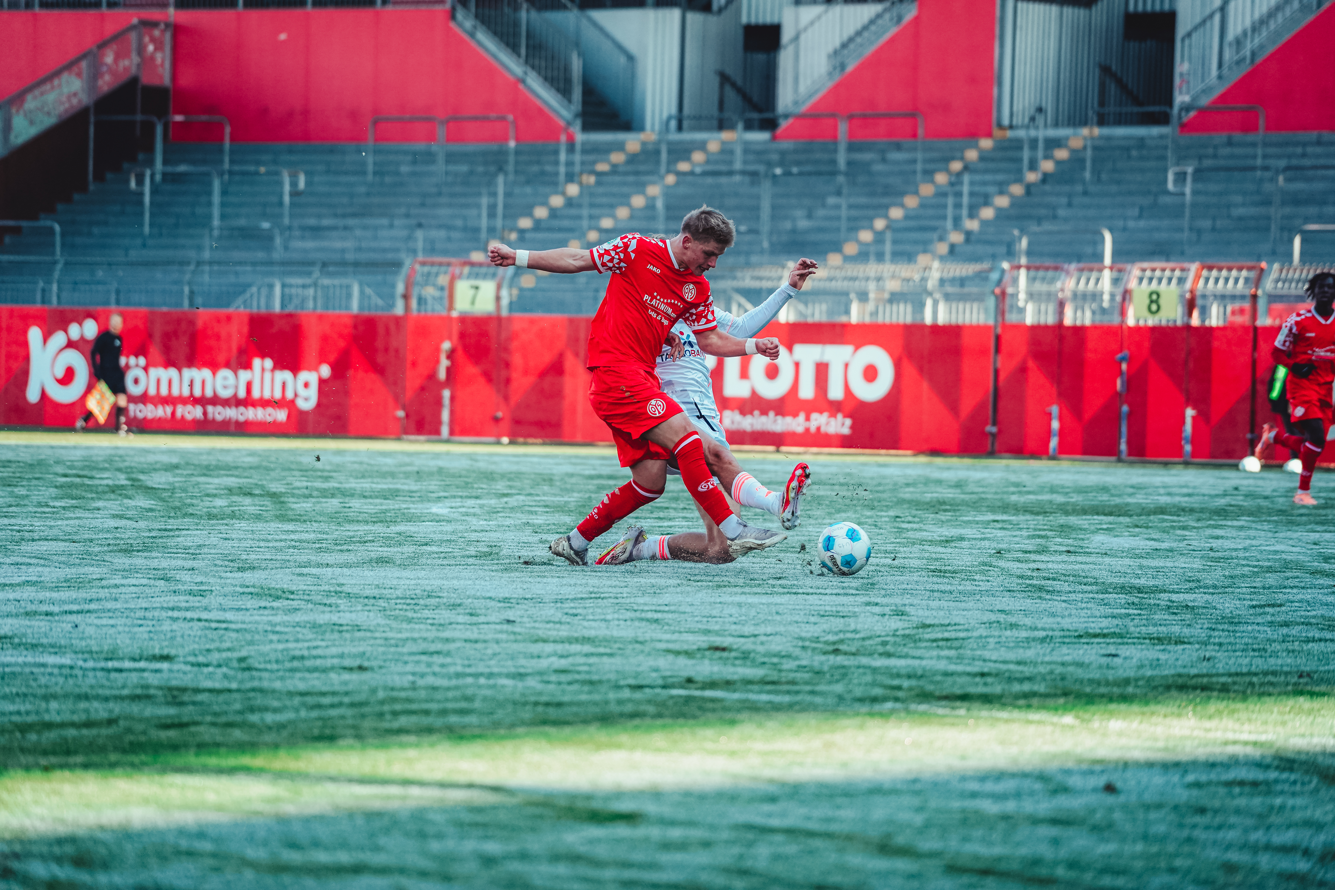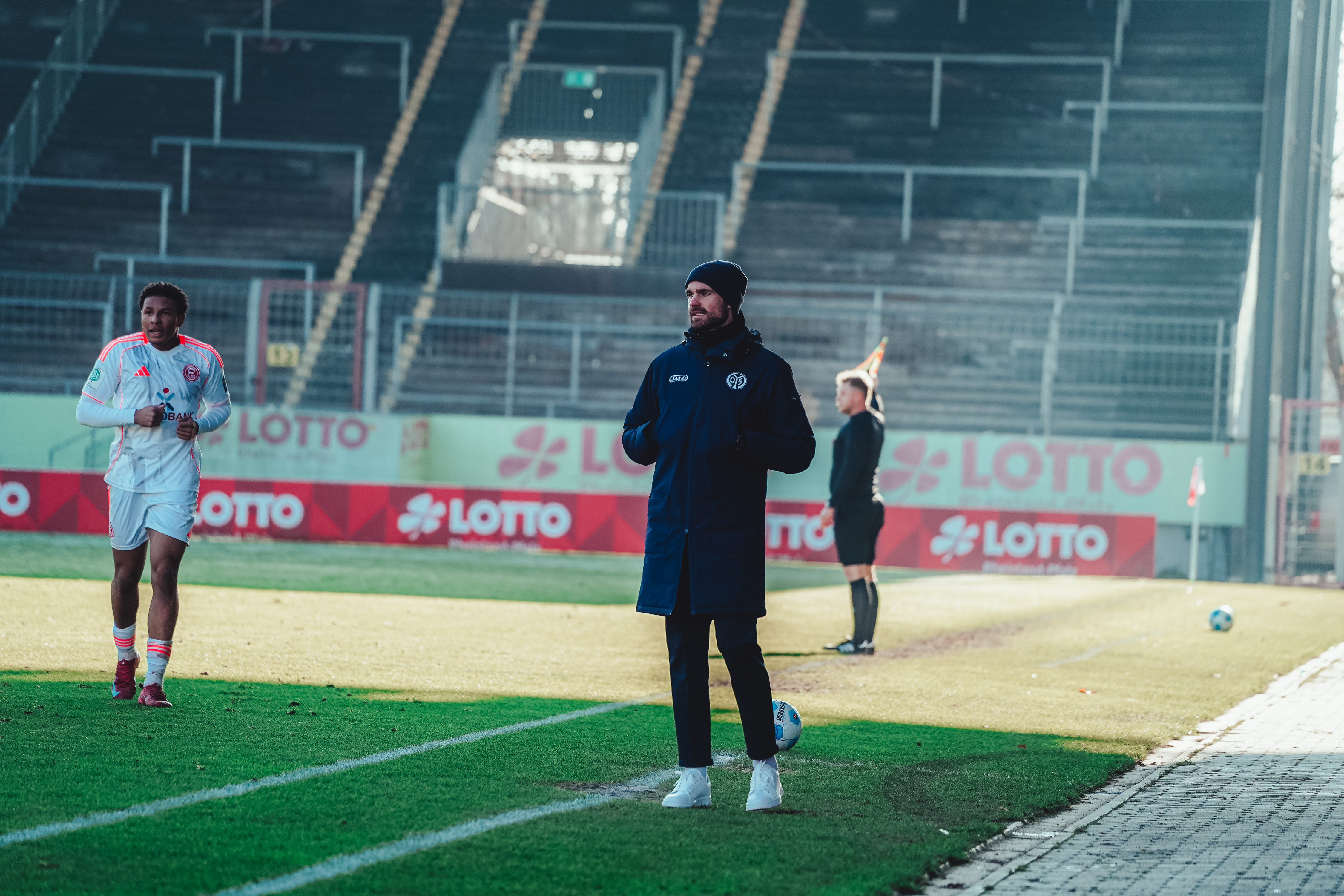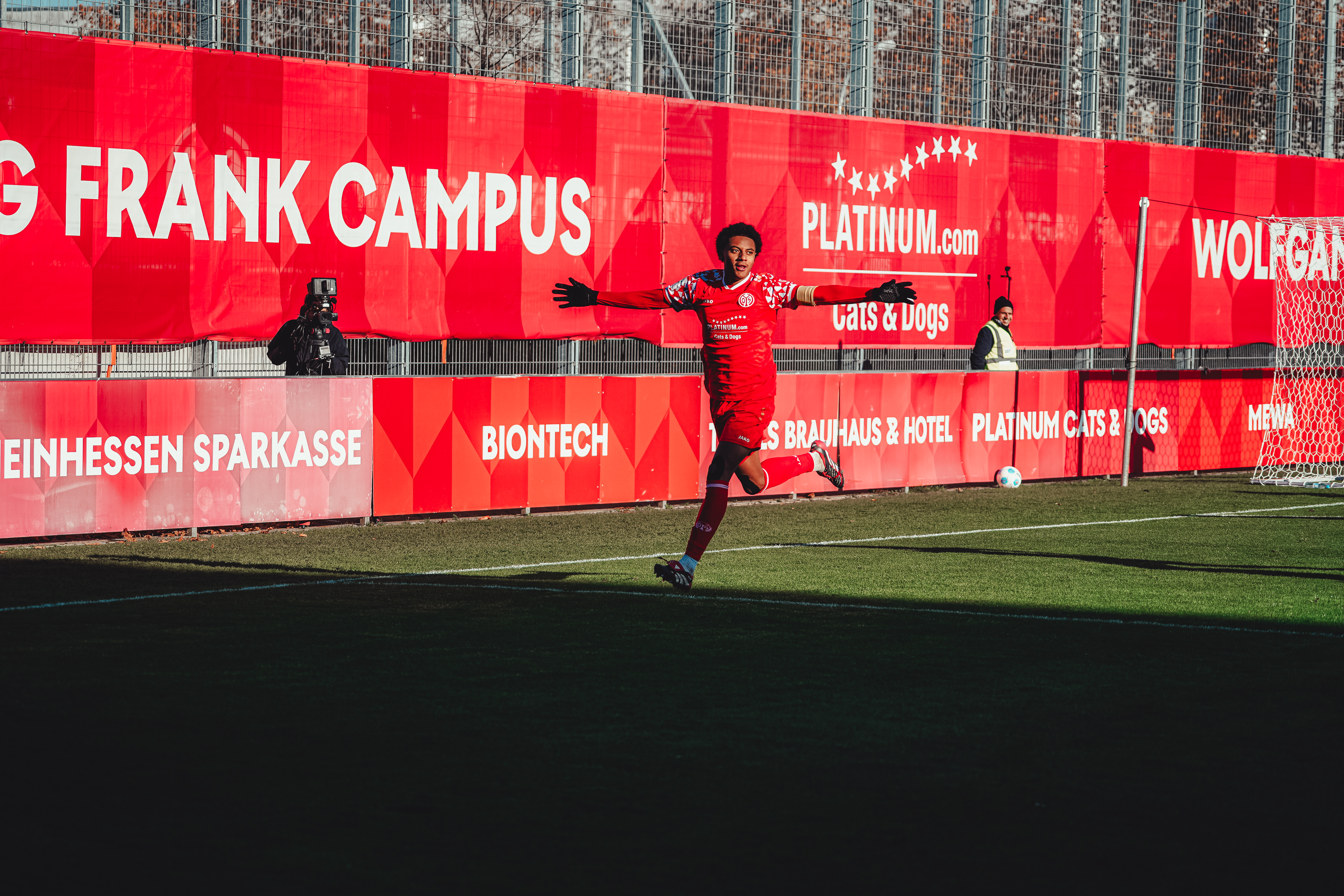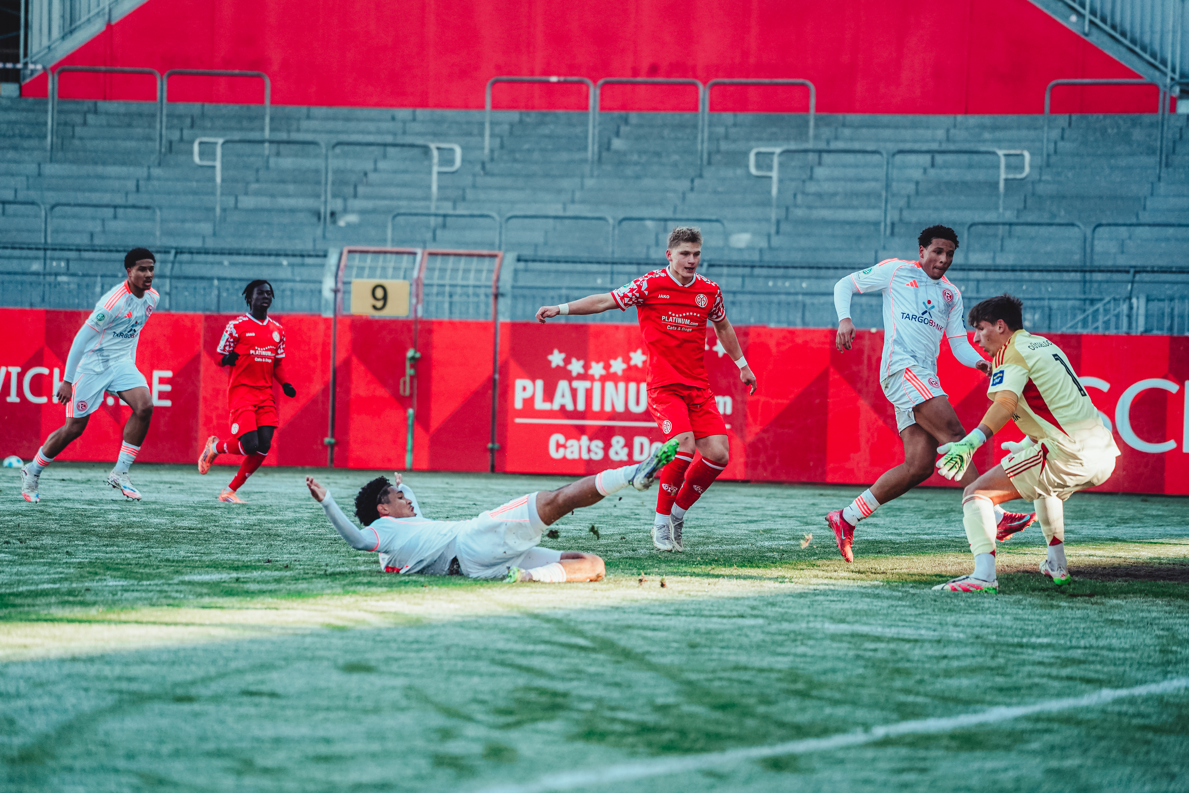 Spätestens ab der 80. Minute war aber ein Aufbäumen deutlich spürbar. Der eingewechselte Batu Deliboyraz verpasste die erste Gelegenheit. Zwar bauten die 05ER nun nochmal Druck auf, hatten aber Glück, dass die Düsseldorfer ihre Chancen zur Vorentscheidung nicht nutzen konnten. Der Pfosten und 05-Torhüter Daris Agovic retteten in der Nachspielzeit. Es wurde hektisch und noch intensiver. Der FSV stellte den großgewachsenen Innenverteidiger Imafidon in den Sturm und packte die Brechstange aus. Viele Flanke und lange Bälle flogen in den Strafraum der Gäste. Einer davon erreichte nach Ablauf der achtminütigen Nachspielzeit den Mainzer U19-Kapitän, der vor Ivan Havenko eiskalt blieb und zum umjubelten Ausgleich traf.