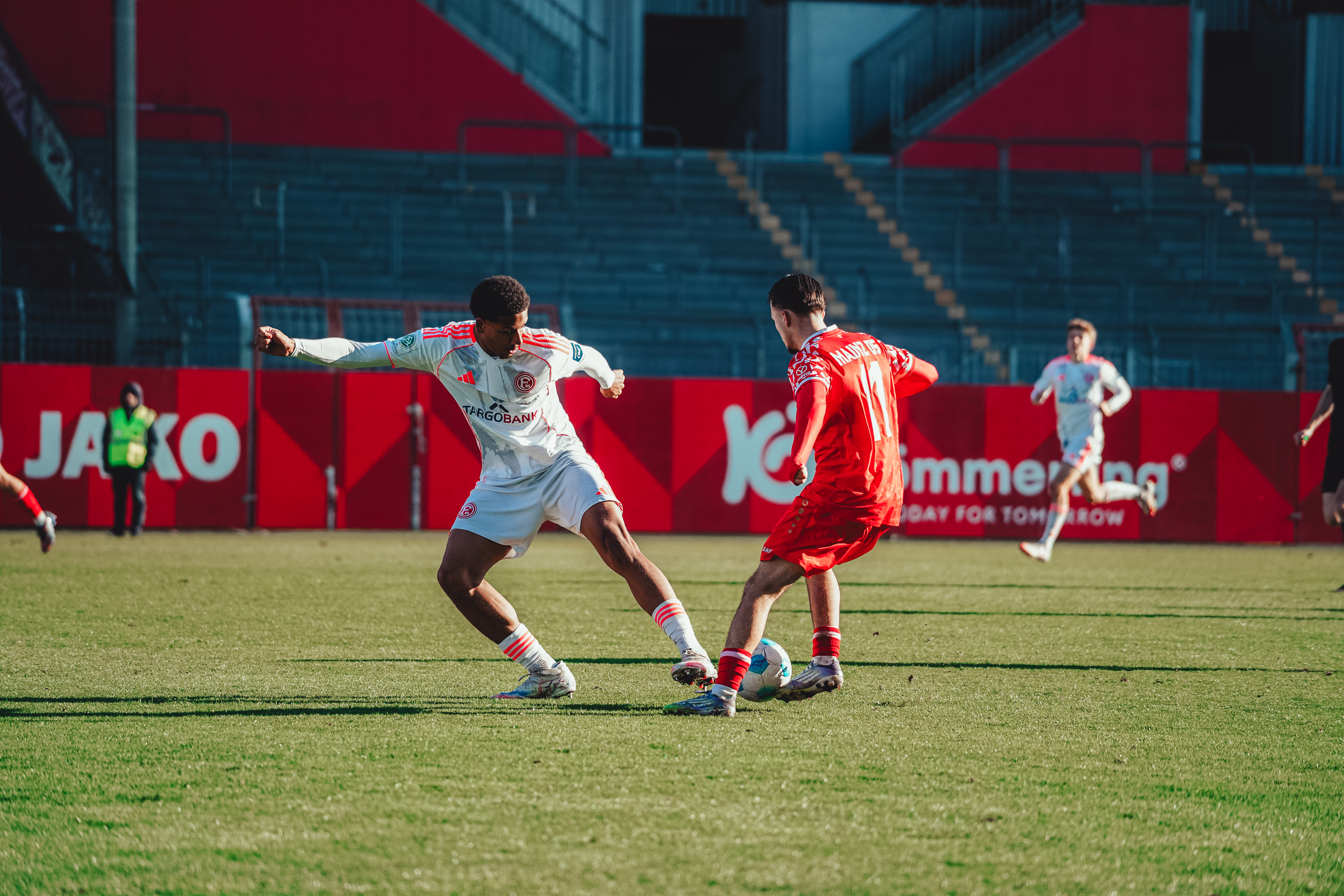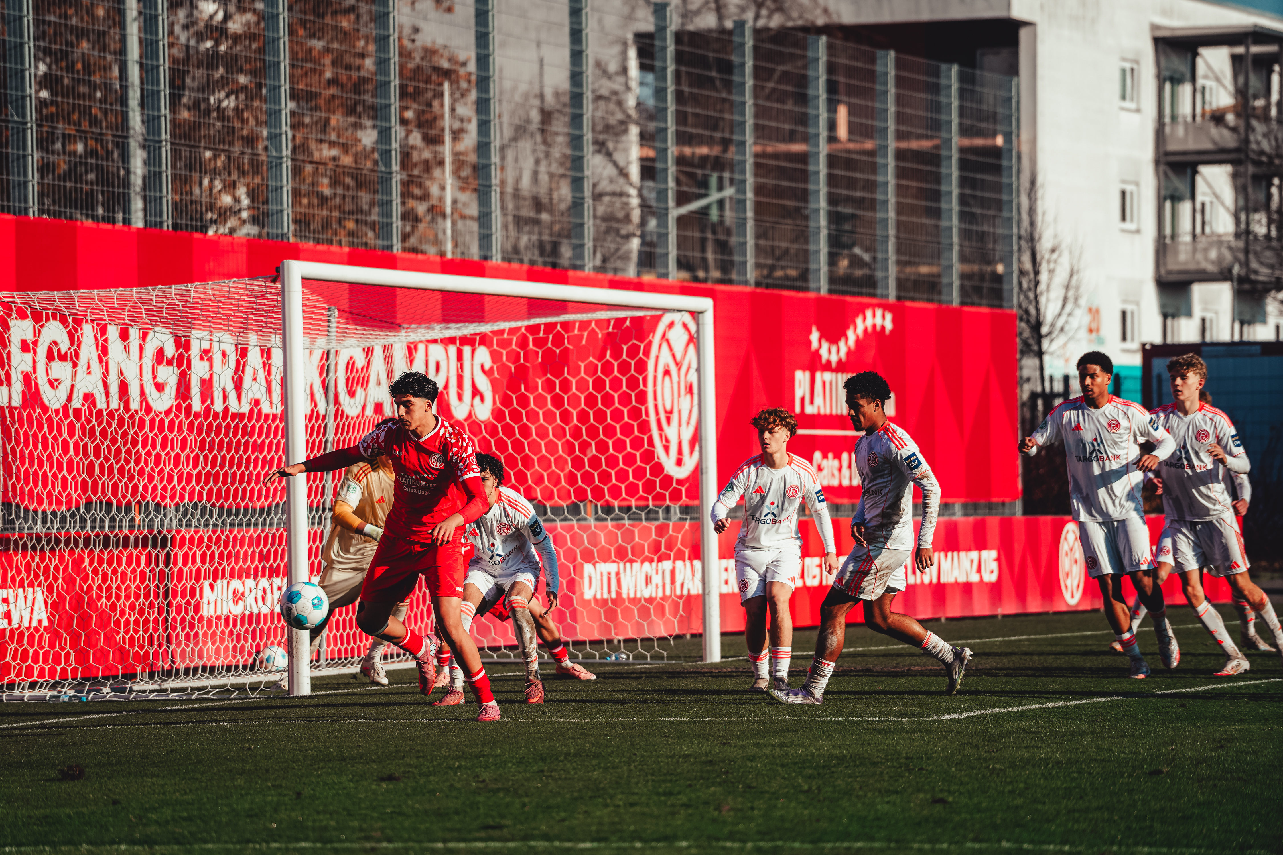 In buchstäblich letzter Sekunde hat sich die U19 von Mainz 05 einen Punkt erkämpft. Gegen Fortuna Düsseldorf sicherte Kapitän Daniel Imafidon mit seinem Treffer in der neunten Minute der Nachspielzeit den verdienten Zähler für die 05ER. Das Team von Jan Kirchhoff hatte den ersten Durchgang bestimmt und hätte mehr Treffer als die Führung von Alexandre Tavares erzielen können. Die Gäste steigerten sich in den zweiten 45 Minuten und drehten die Partie zwischenzeitlich sogar. Mit 26 Punkten belegt die bereits für die A-Liga qualifizierte Mainzer U19 einen Spieltag vor dem Ende der Vorrunde weiterhin den ersten Tabellenplatz der Gruppe G.