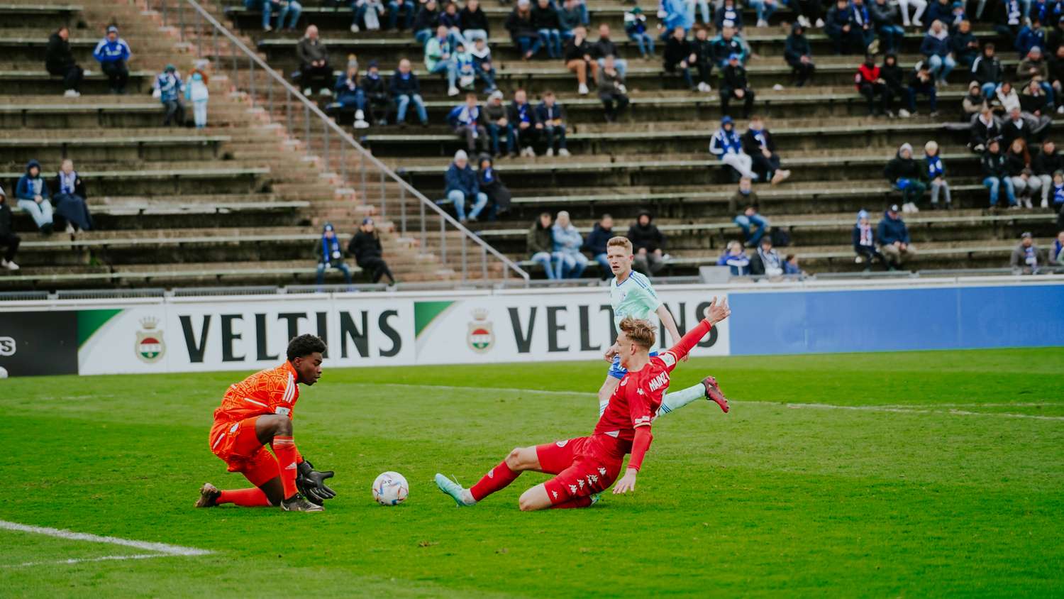 "Die Jungs hatten heute definitiv mehr verdient. Wir hatten Schalke gut im Griff, was sich daran gezeigt hat, dass sie nach 25 Minuten taktisch umgestellt haben", so der Mainzer Chefcoach. "Wir haben das spielerisch mit Ball gut gelöst, hatten direkt mehrere Torchancen. Schalke kam nur über Standards in unseren Strafraum." Younes Azahaf und Nelson Weiper vergaben in der ersten Hälfte beste Möglichkeiten für die 05ER. Es blieb in einer umkämpften Partie mit leichten Vorteilen für die Rheinhessen beim torlosen Unentschieden zur Pause.