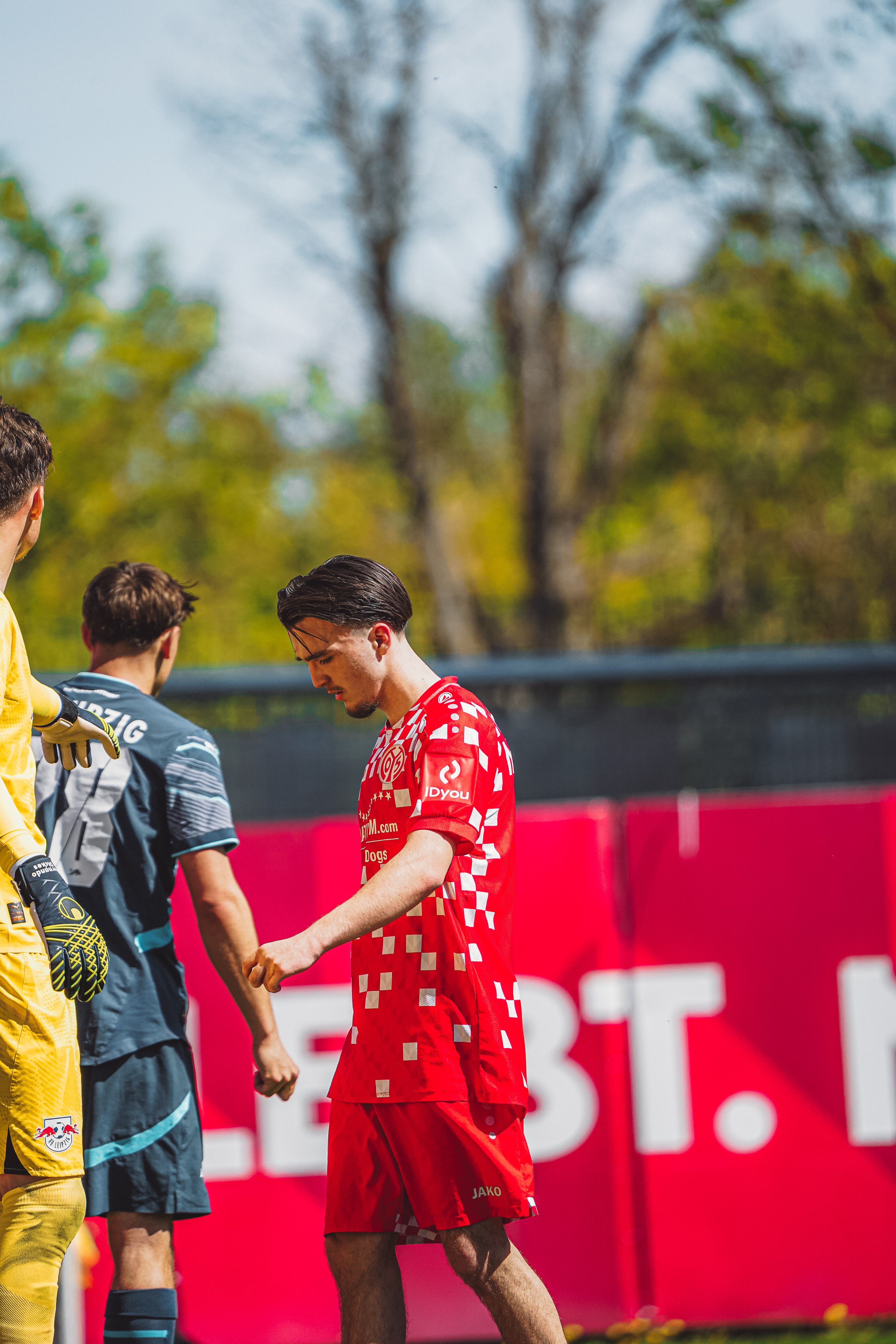 Die bereits sicher für das Achtelfinale der deutschen Meisterschaft qualifizierte Mainzer U19 hat ihr letztes Gruppenspiel der DFB-Nachwuchsliga Gruppe D mit 2:5 verloren. In einer ereignisreichen Partie kamen die 05ER im ersten Durchgang zweimal zurück ins Spiel, mussten sich am Ende aber den starken Gästen aus Leipzig geschlagen geben. Die Tore für den FSV schossen Mika Preßler (19.) und Raul König (29.).