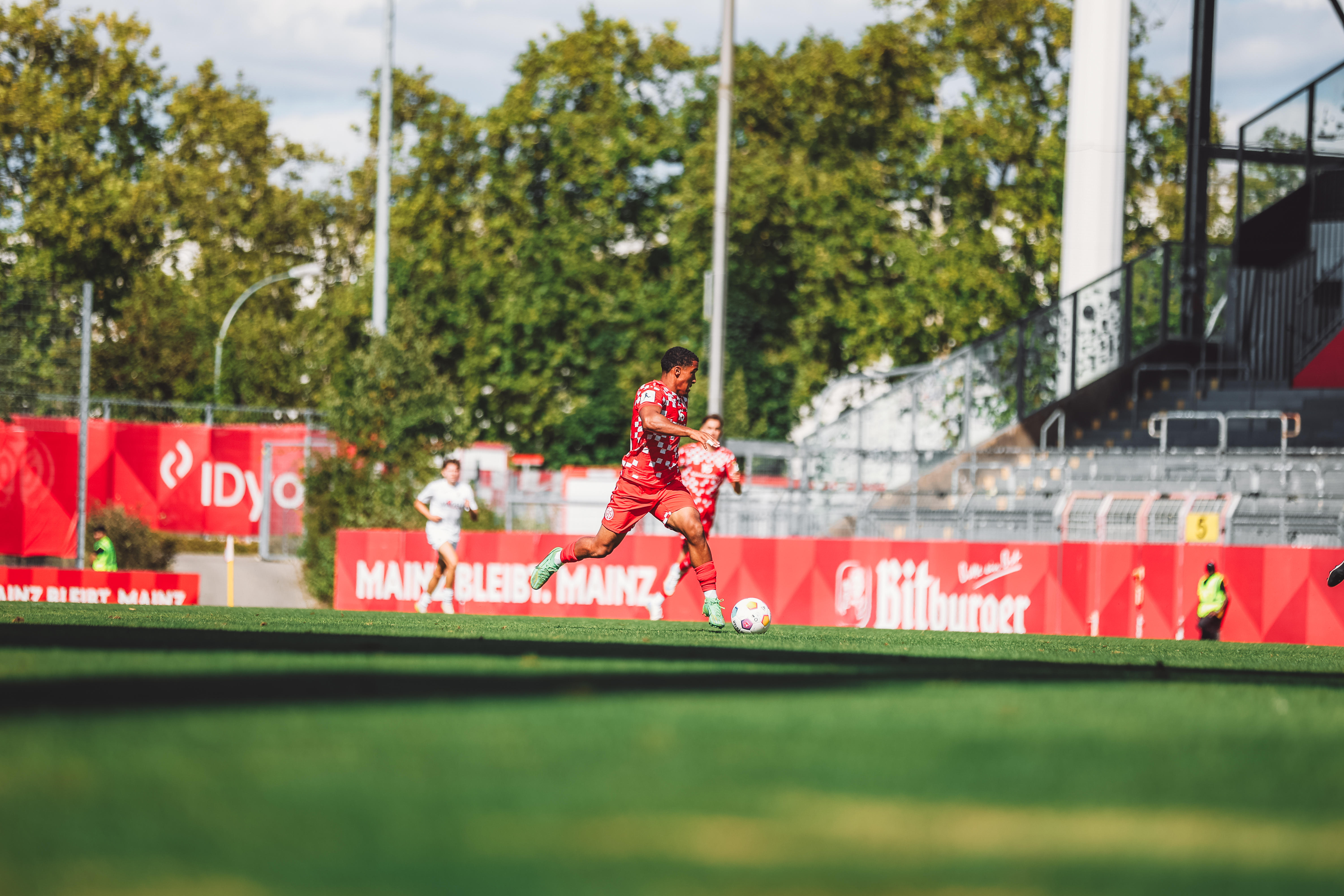 Die Mainzer machten unverändert weiter und blieben in Überzahl am Drücker, wofür sie in Minute 53 auch belohnt wurden. Einen durch Justus Götze scharf in den Strafraum getretenen Freistoß drückte der am zweiten Pfosten lauernde Schulz aus zwei Metern zur erneuten Führung über die Linie. Ohne Zweifel ein verdienter Treffer, trotz der optischen Überlegenheit der Rot-Weißen schien aber klar, dass erst ein 3:1 die Entscheidung bringen würde. Weitere glasklare Chancen blieben aber zunächst aus. Nach rund einer Stunde reagierte 05-Coach Hoffmann erstmals und brachte David Mamutovic für Derstroff. Anders als der erste Durchgang verlief diese zweite Hälfte aber weitestgehend ereignislos. Auf der einen Seite, weil die Mainzer es in Überzahl geschickt machten, ohne ein allzu großes Risiko zu gehen, auf der anderen gelang es die Gästen kaum einmal, sich dem Strafraum der Rheinhessen auch nur anzunähern. Und so war es eine Minute vor Abschluss der regulären Spielzeit Joker Bierschenk vorbehalten, den Deckel drauf zu setzen auf diese Begegnung: Über Tim Müller war das Leder bei Mamutovic gelandet, der an der Strafraumgrenze abtropfen ließ, bevor der Torschütze aus 18 Metern per Schlenzer vollendete und den Endstand markierte.