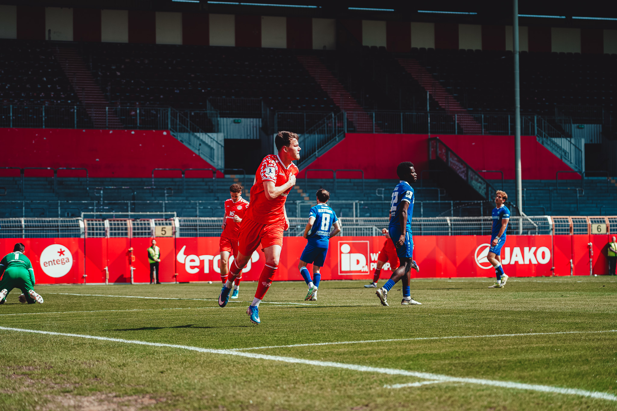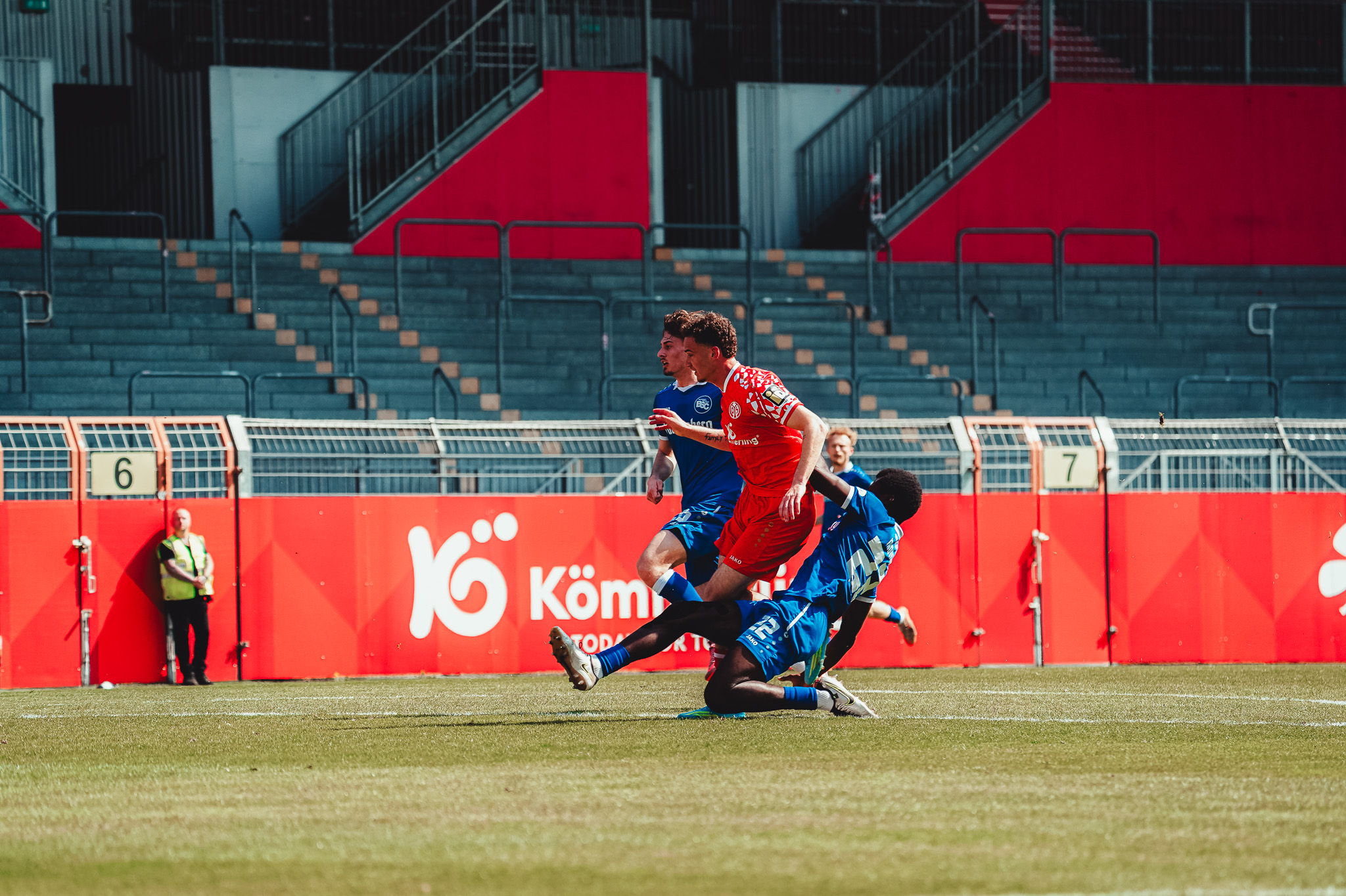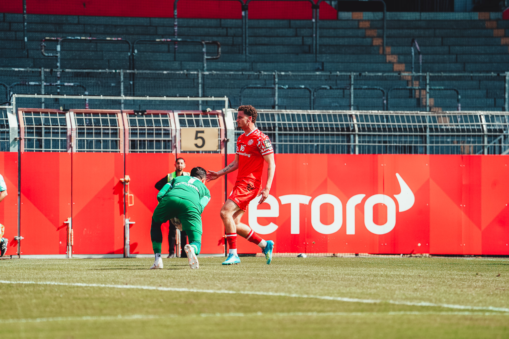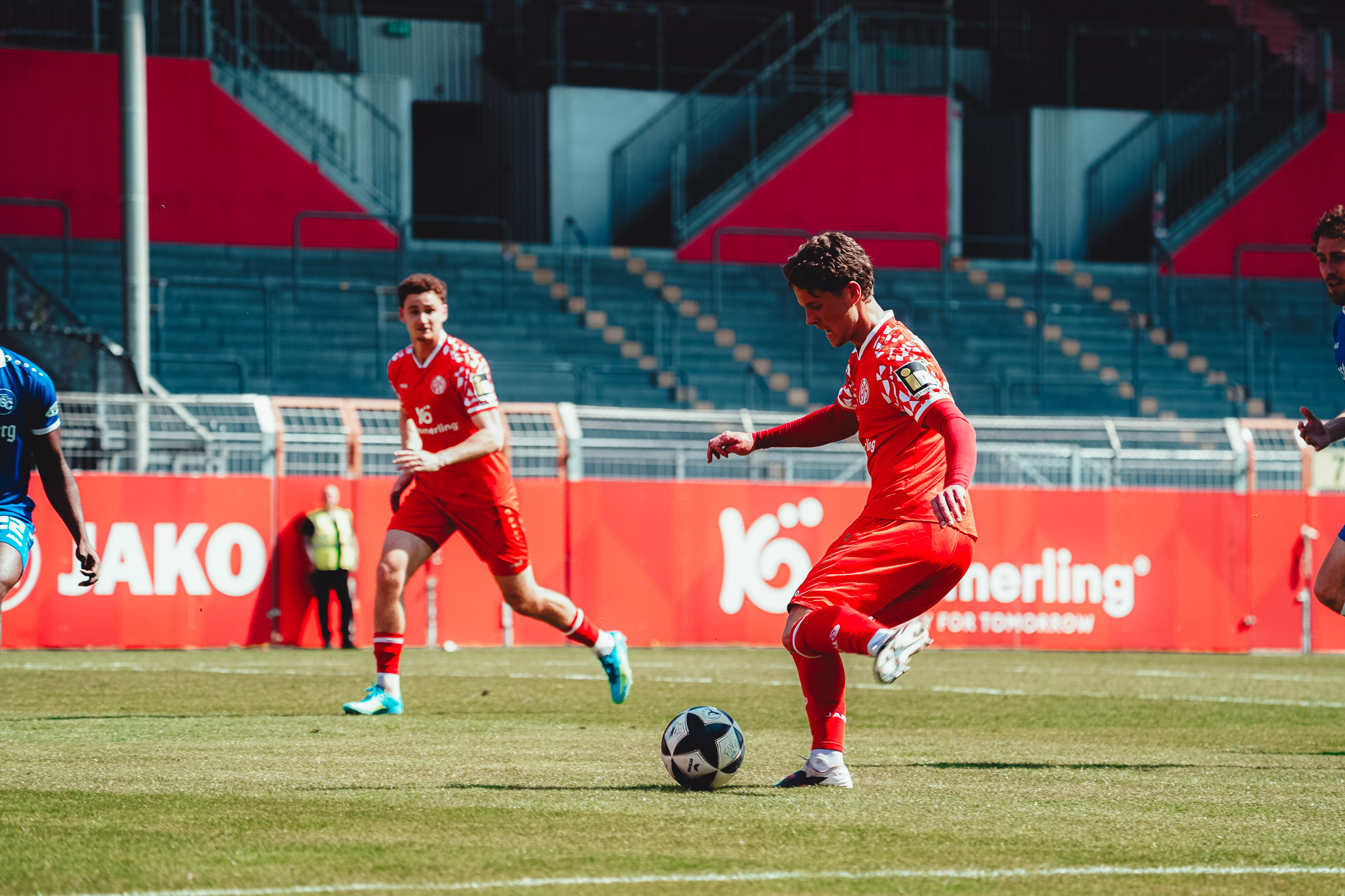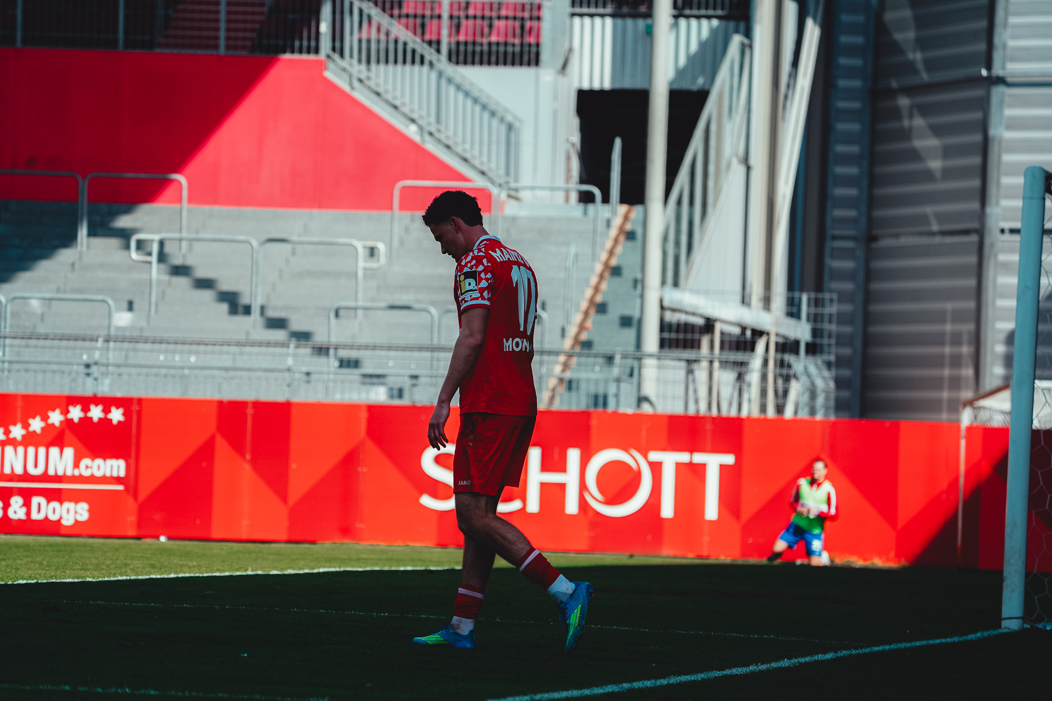 Den Unterschied machte schließlich eine starke Pressingaktion: Videira eroberte den Ball im Aufbauspiel der Bahlinger, setzte sich durch und vollendete im Strafraum ins lange Eck (16.). Auch danach blieb es ein offenes Spiel. Die Mainzer versuchten es immer wieder über lange Bälle auf ihre Zielspieler im Angriff, die zwar oft ankamen, aber selten für Gefahr sorgten. Die Gäste probierten es häufig mit Flanken, vergaben jedoch ihre Chancen mit unpräzisen Kopfbällen. So ging es mit einer 1:0-Führung für die Mainzer in die Kabine.