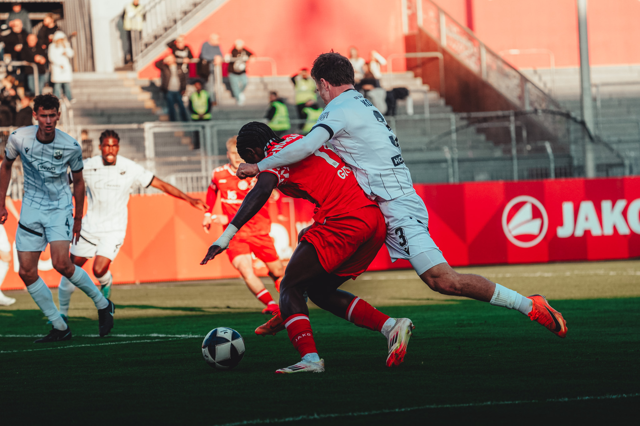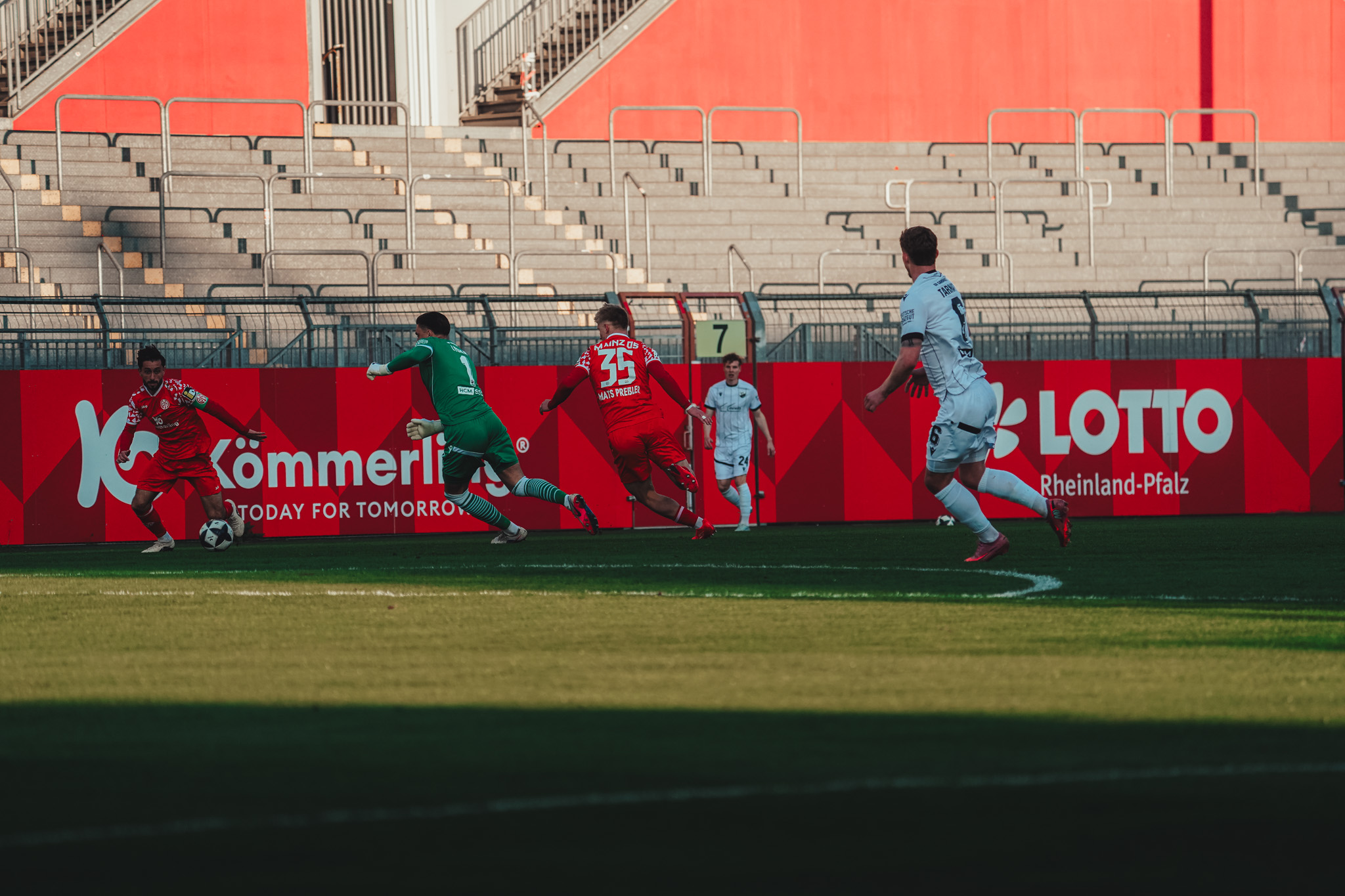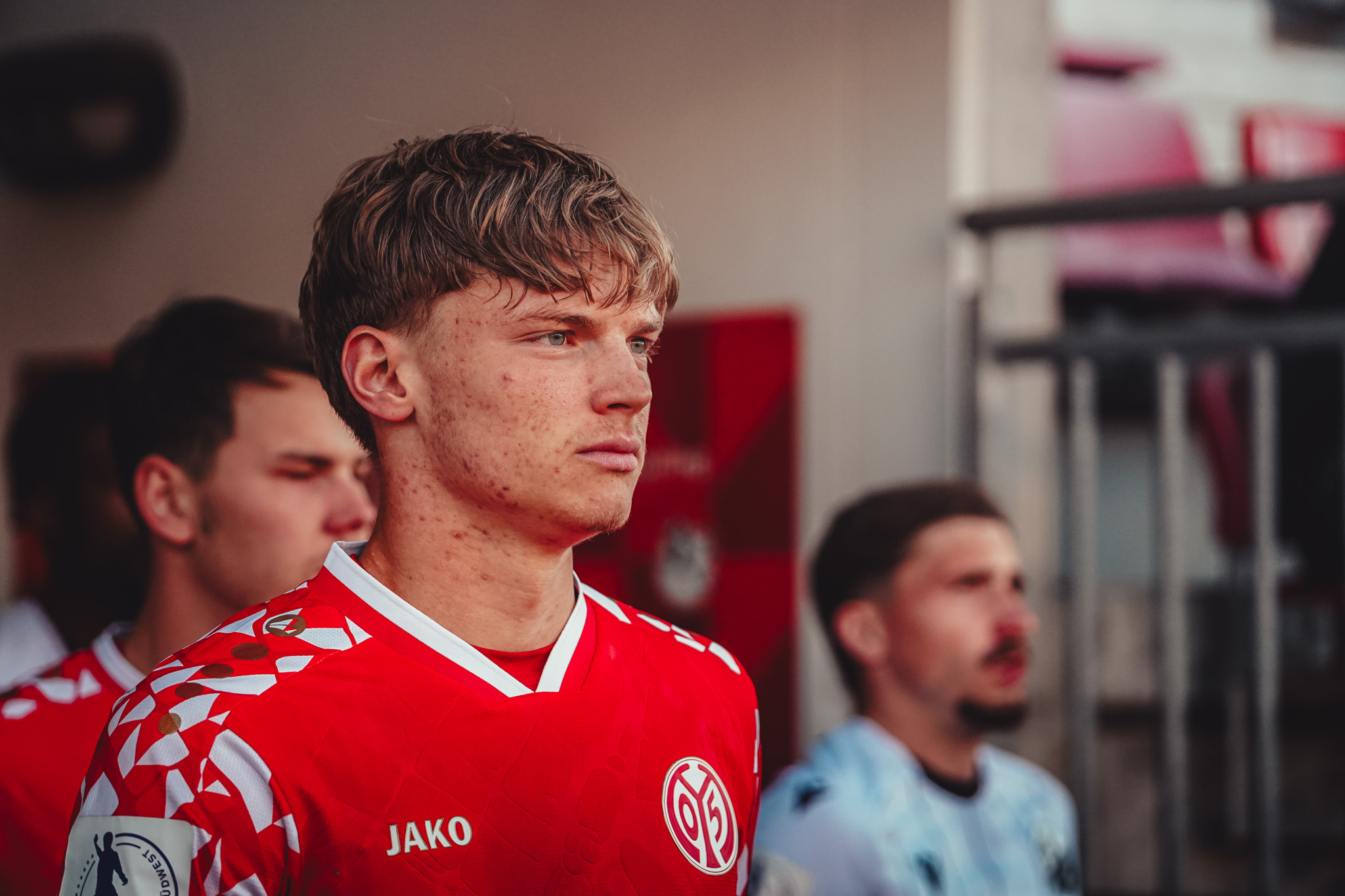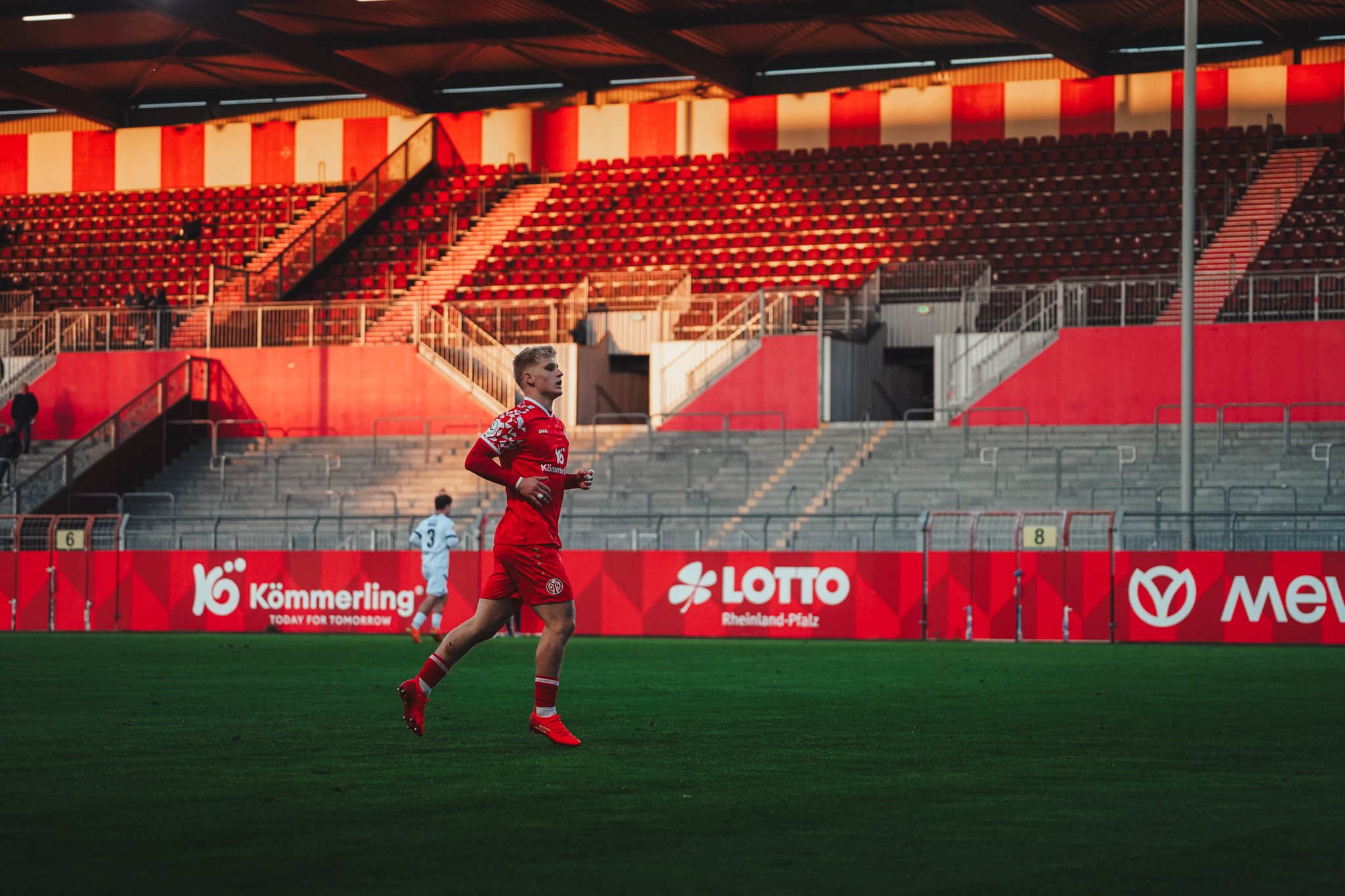 Im Gegenteil, Sandhausens Toptorjäger Testroet kam nach einem Freistoß von Niklas Tarnat von der rechten Seite am Fünfmeterraum unbedrängt zum Kopfball und zu seinem 18. Saisontreffer. Auch diesmal blieb Rieß ohne Abwehrchance, die Gäste hatten die Partie mittlerweile verdientermaßen gedreht (73.). "Der Freistoß war gut geschlagen", kommentierte Hoffmann. Die 05ER fanden im zweiten Durchgang offensiv nicht mehr statt und reagierten mit dem ersten Wechsel. Mika Preßler ersetzte seinen Zwillingsbruder Mats im Angriff für die Schlussphase, die die Gastgeber in Unterzahl bestreiten mussten. Der bereits verwarnte Amann musste nach einem Zweikampf mit Gelb-Rot vom Platz (80.). "Unnötig", befand U23-Chefcoach Hoffmann. "Es war keine Dynamik in der Aktion und Jason hat seinen Gegenspieler nicht mal berührt." Die 05ER bäumten sich mit zehn Mann aber nochmal auf und kamen zu ihrer ersten Gelegenheit in Halbzeit zwei. Lyska war jedoch bei Der Hereingabe von Yunus Malli zur Stelle und wehrte zur Ecke ab, ein Schuss von Dennis Azakir ging drüber (86./87.). Tebo Gabriel und Fritz Engel durften für die letzten Minuten für Gitau und Videira ran. "Die Jungs wollten auch in Unterzahl, haben den Rücken gesucht und versucht, von hinten raus zu kombinieren. Das war auch der Matchplan", so Hoffmann. "Aber wir waren sehr fehlerhaft in eigenem Ballbesitz in der zweiten Hälfte." Das Spiel war kurz darauf nach einem weiteren Ballverlust im Mainzer Aufbauspiel endgültig entschieden. Erneut hieß der Torschütze Mamutovic, der den Ball sehenswert aus rund 20 Metern über Rieß hob und Hoffnungen auf eine Aufholjagd in Unterzahl mit dem Treffer zum 1:3-Endstand zunichte machte. "Der Platzverweis