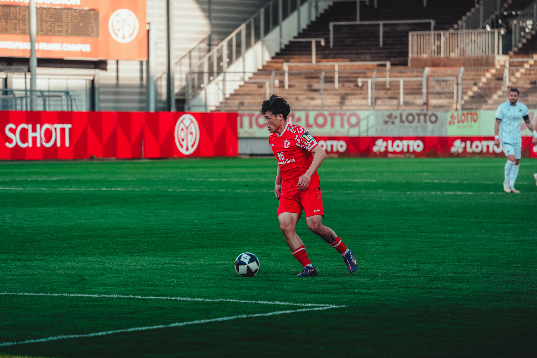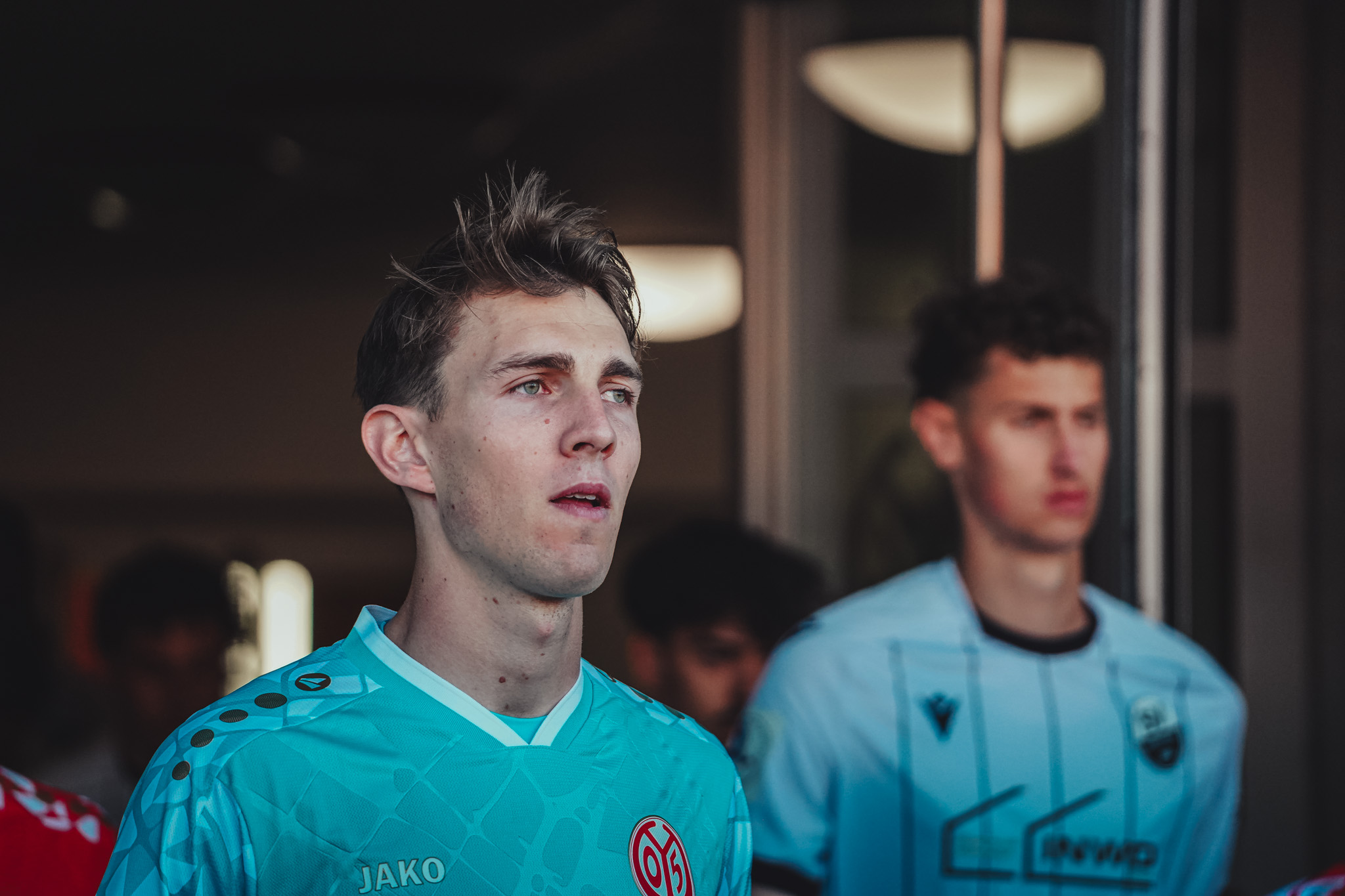 Über Zweikämpfe holten sich die 05ER Sicherheit und Kontrolle, auch mit dem Ball wurde die Hoffmann-Elf im Verlauf der ersten Hälfte stärker. Zunächst verweigerte Schiedsrichter Kadir Yagci den Gastgebern einen möglichen Strafstoß als Gitau von Louis Kolbe im Strafraum unsanft gestoppt wurde. Kurz darauf tankte sich Taiyu Yamasaki auf der linken Außenbahn bis in den gegnerischen Strafraum durch und schoss knapp am linken Pfosten vorbei (22.). Danach beruhigte sich das Geschehen. Die Mainzer U23 hatte gegen den Ball alles im Griff und ließ, abgesehen von zwei ungefährlichen Schüssen, nichts zu. Mit dem Ball erzeugten die 05ER aber wie ihre Gäste keine nennenswerten Aktionen mehr im ersten Durchgang. Es blieb bei der knappen, aber verdienten 1:0-Führung zur Halbzeit in einem bis dato chancenarmen Spiel.
