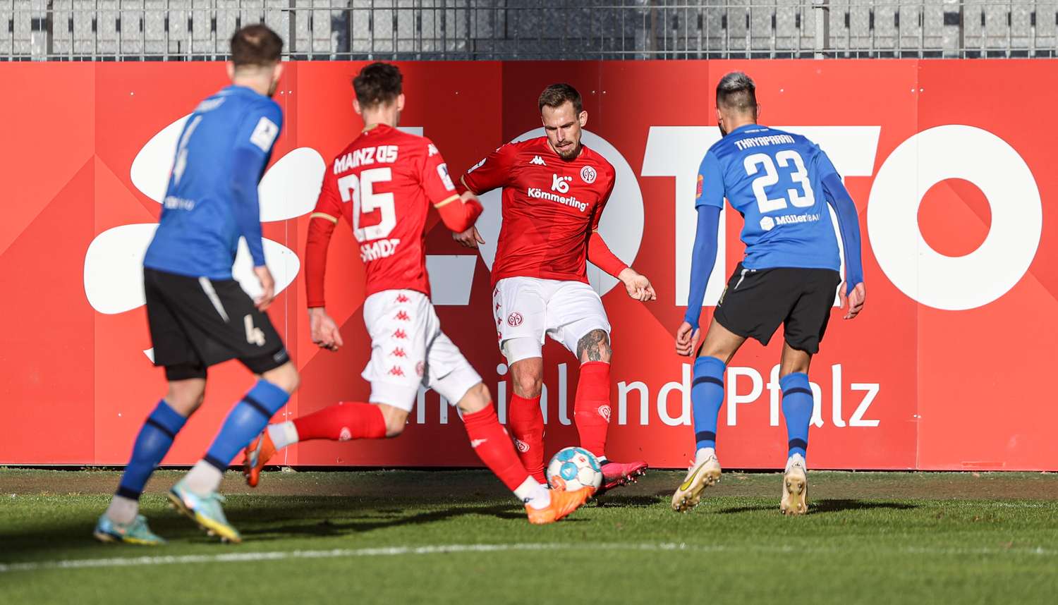 Defensiv zeigten sich die Rheinhessen hingegen über 90 Minuten hochkonzentriert und ließen wenig bis nichts zu. Ein Distanzschuss von Ex-05ER Mounir Bouziane war die beste Gelegenheit der Gäste (56.). So blieb es beim 2:0, das den Mainzern die Punkte 30 bis 32 und den neunten Tabellenplatz beschert. "Ich bin froh, dass wir es heute konstant über 90 Minuten gebracht haben. Wir sind ganz konstant geblieben, haben nach der Halbzeit sogar nochmal einen Tick höher angelaufen und sind nicht, wie zuletzt gegen Bahlingen, tiefer geblieben", lobte Siewert nach der Partie, der auch die eingewechselten Akteure lobte.