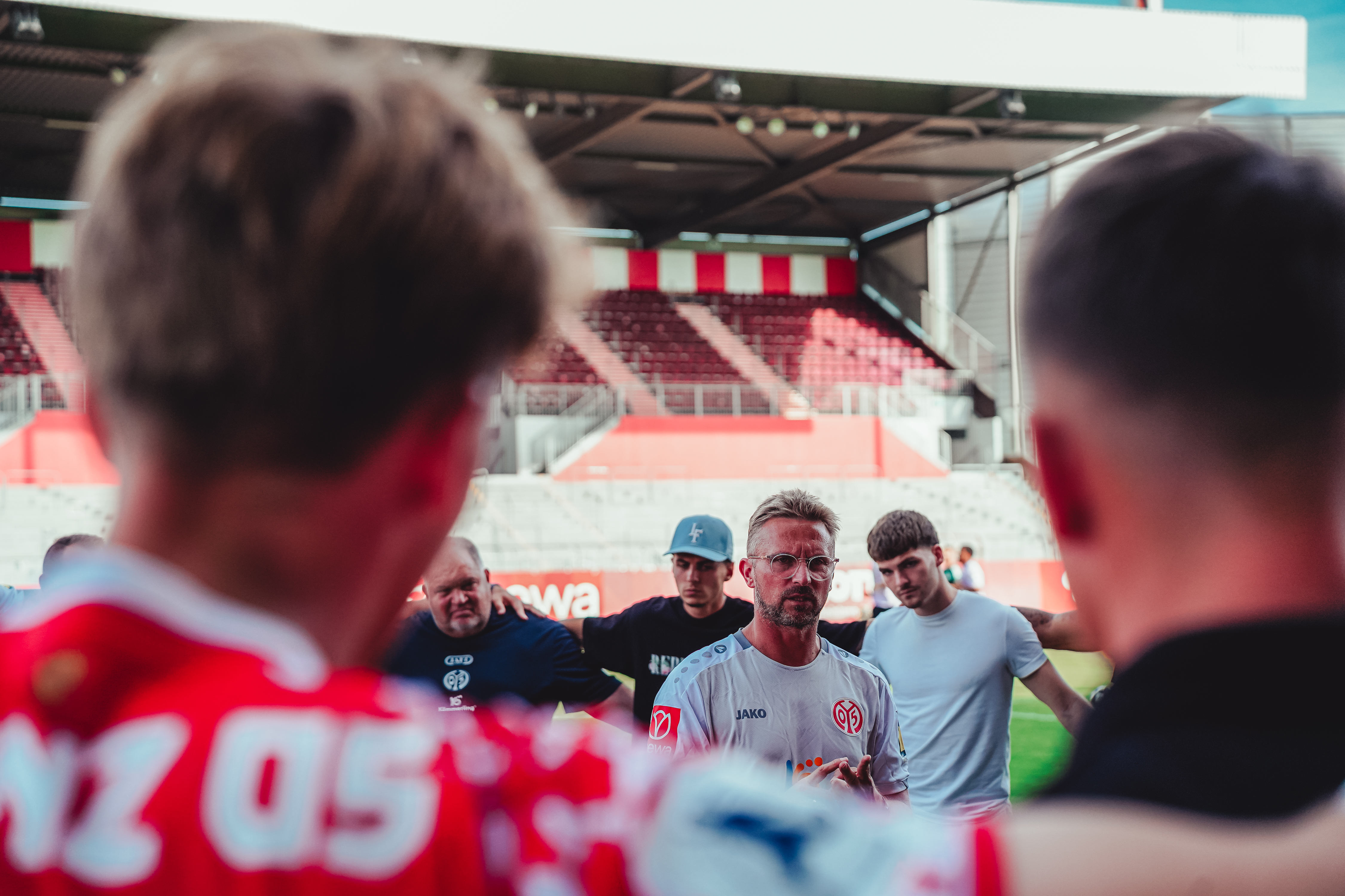 In der Analyse hat Hoffmann schnell erkannt, dass für sein Team, das nach neun Spielen ohne Niederlage und Tabellenplatz drei auf dem Papier der Favorit ist, eine Herausforderung zukommt. "Sie wollen schnell hinten rausspielen und entwickeln jede Menge Dynamik. Dazu haben sie viele Zocker auf dem Platz, gefühlt drei Zehner, dazu zwei Flügelspieler und zwei Sechser, die sich überall hin bewegen. Sie greifen die Box dynamisch an und besetzen sie sehr gut", beschreibt der Mainzer Chefcoach. "Die Gegentore haben sie aus Standards oder Fehlern im Spielaufbau kassiert. Aber sie sind über 90 Minuten mutig, gehen immer voll drauf. Sie spielen Mann gegen Mann über den ganzen Platz und jagen jedem Ball hinterher. Ich habe Hochachtung vor ihrem Ansatz", so Hoffmann.