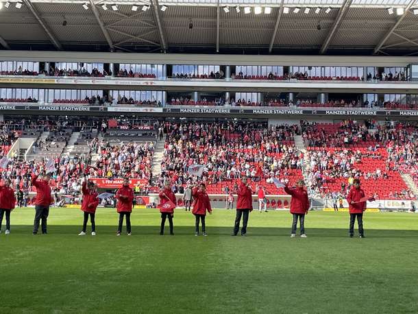 Eine Mitgliedschaft, die es in sich hat: Der vergangene Samstag begann für den elfjährigen Marius, glühender 05-Fan und Mitglied des 05ER KidsClubs, mit einer faustdicken Überraschung. Der Besuch des Heimspiels seines FSV gegen Leipzig war zwar fest eingeplant, von seiner besonderen Rolle ahnte er beim Aufstehen allerdings noch nichts. Erst am Frühstückstisch habe seine Mutter ihm erzählt, dass er am Nachmittag als Fahnenkind einlaufen und vor dem Anpfiff des Bundesliga-Spiels auf besondere Weise Flagge zeigen beziehungsweise schwenken dürfe. Die unmittelbare Folge, neben riesiger Begeisterung? "Ja, ich war sehr nervös und aufgeregt", beschreibt der kleine 05ER seine Empfindungen.