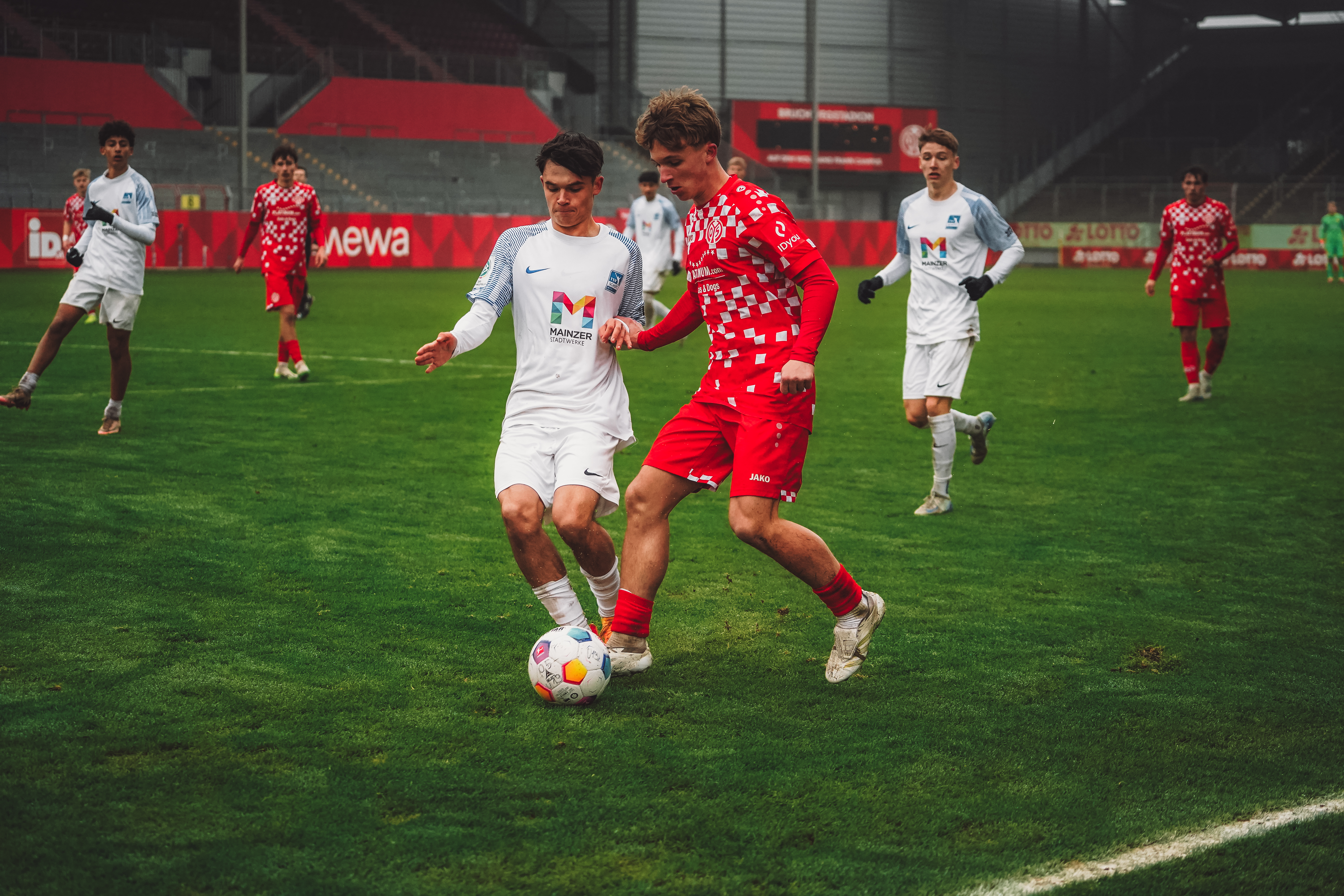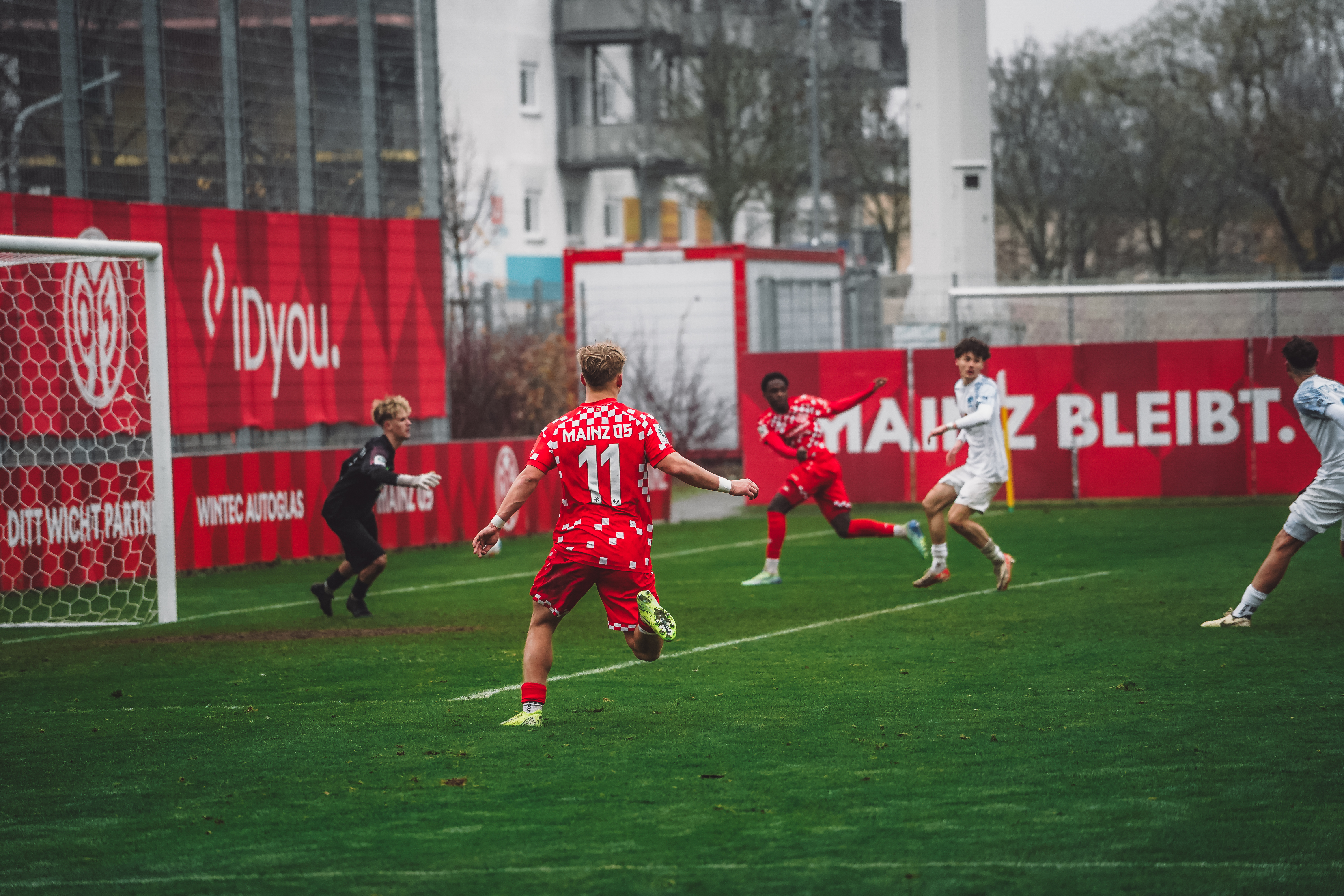 Die Mainzer U19 hat in ihrem letzten Heimspiel des Jahres die Qualifikation für die A-Liga der DFB-Nachwuchsliga geschafft. Das 1:1 gegen den Stadtrivalen TSV SCHOTT Mainz reichte dem FSV aus, um sich Platz 3 in der Vorrundengruppe D zu sichern und in der Rückrunde Teil der 24 besten Mannschaften Deutschlands zu sein. Die 05ER waren über die gesamte Spielzeit die tonangebende Mannschaft gewesen, nutzten bis auf den Ausgleichstreffer von Raul König (15. Minute) aber ihre zahlreichen Chancen nicht, sodass es am Ende beim Unentschieden blieb.