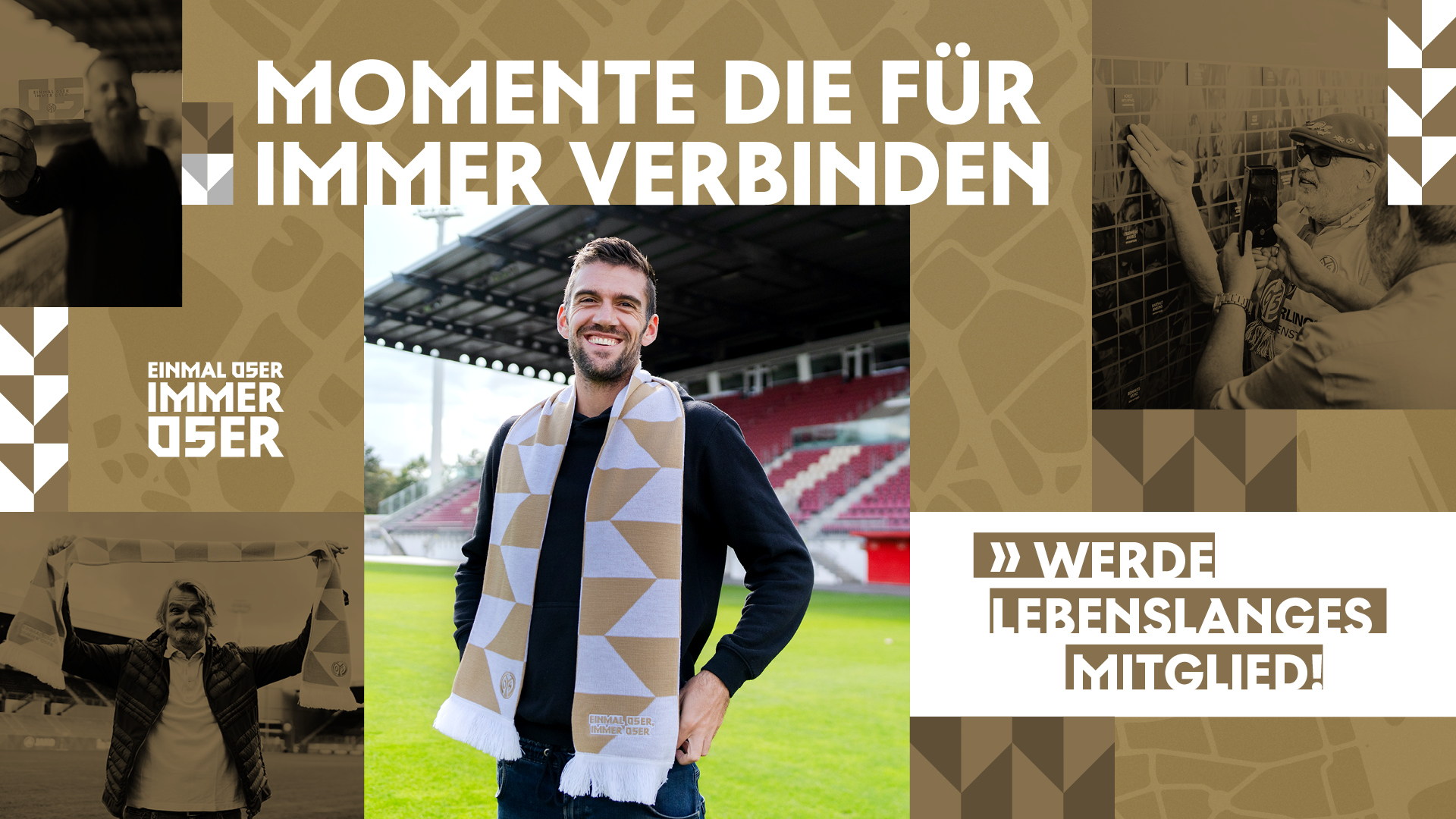 Die Wand an der MEWA ARENA, über der "Einmal 05ER – Immer 05ER“ prangt, stellt seit ihrer Entstehung die gewachsene Tradition unseres Vereins dar und würdigt Menschen, die Mainz 05 über viele Jahre hinweg geprägt und begleitet haben. Zudem steht sie für die Mitglieder, die sich ab jetzt für immer zu unserem Verein bekennen und ihn begleiten wollen – komme was wolle.