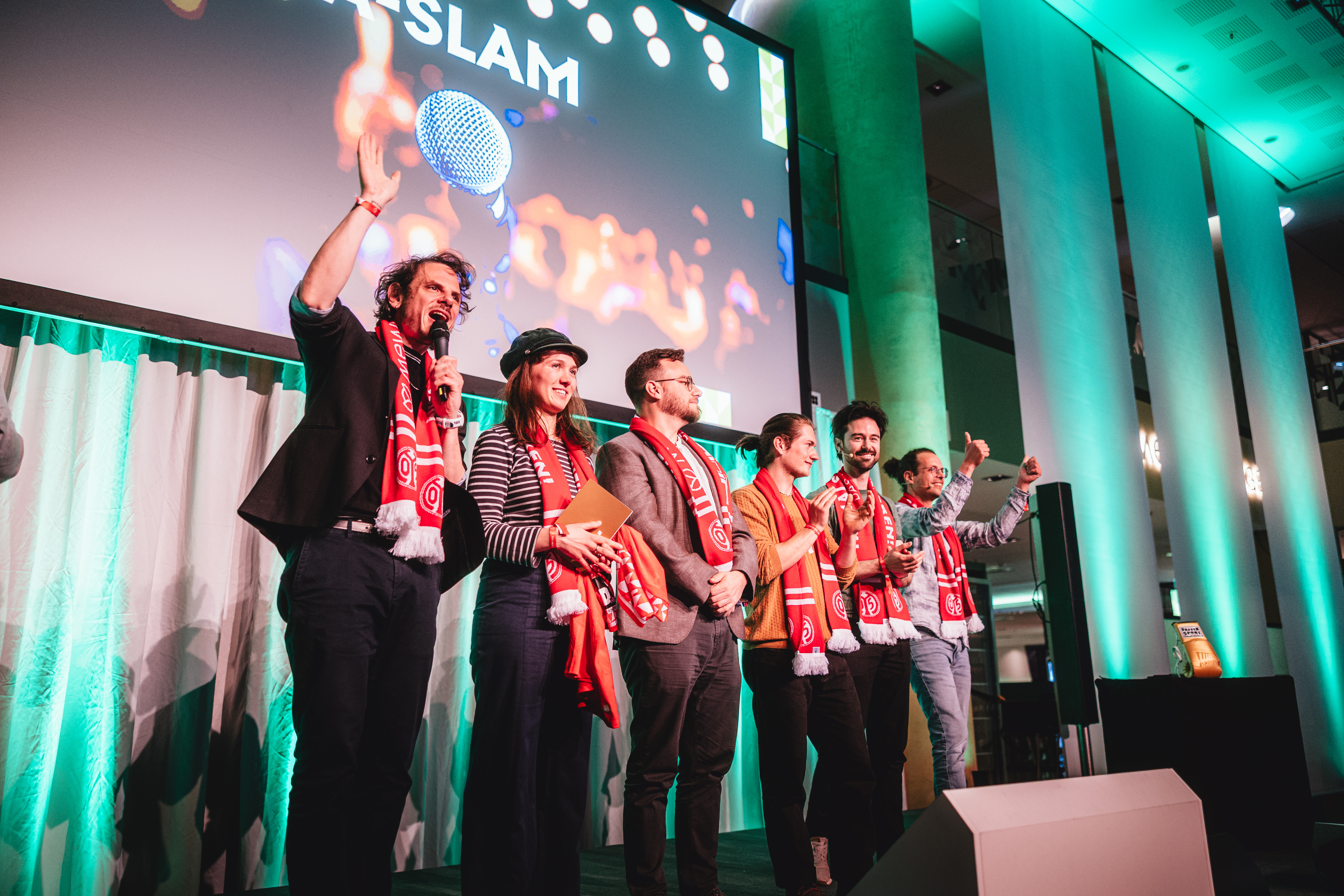 Zum Abschluss des Abends lag die Entscheidung beim Publikum, das per Lautstärke den überzeugendsten Vortrag kürte. Neben dem tosenden Applaus durfte sich die Gewinnerin des Abends, Laura Pareigis, auch über ein aktuelles Mainz-05-Heimtrikot und den KLIMA-SLAM-Pokal in Form von goldenen Boxhandschuhen freuen.