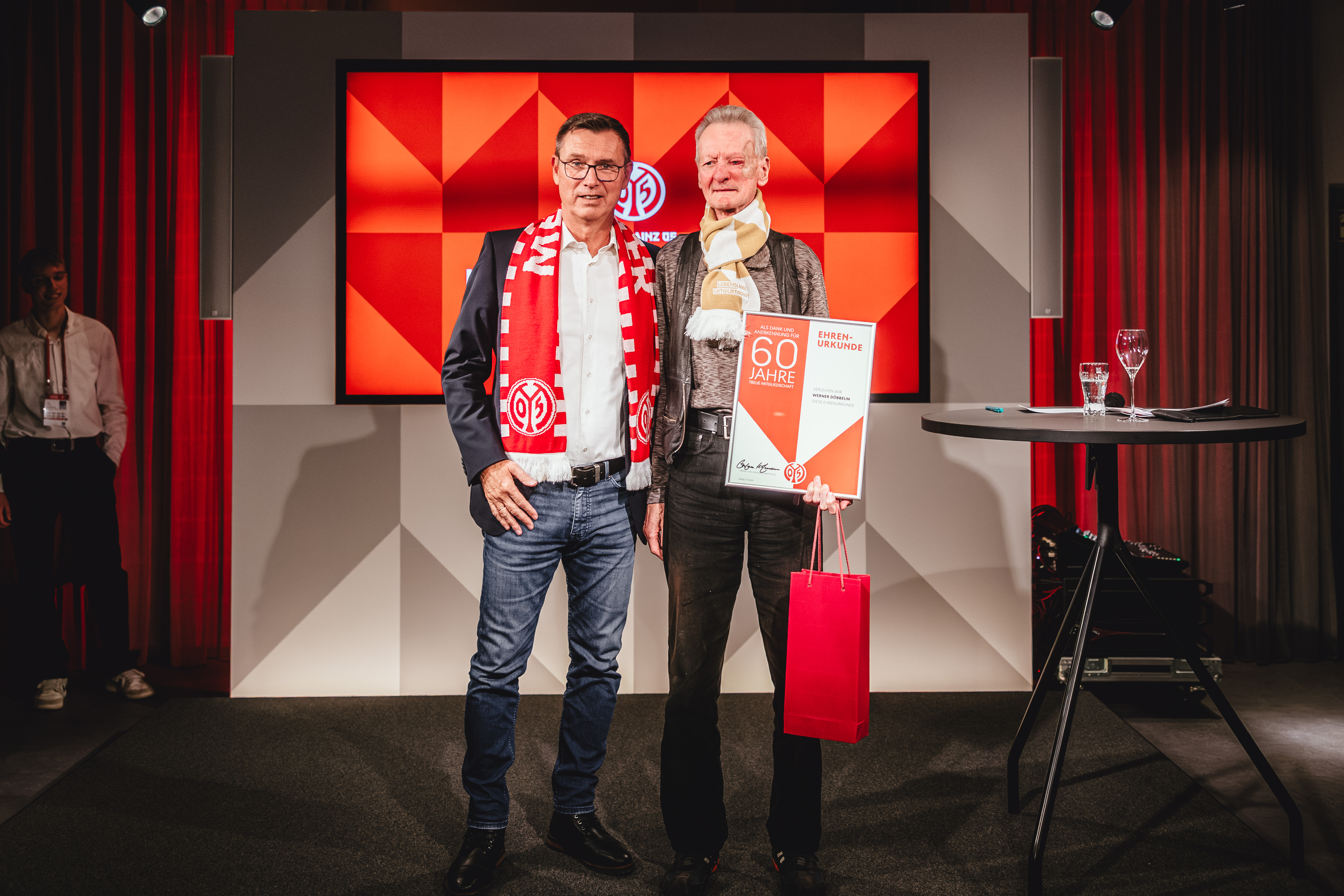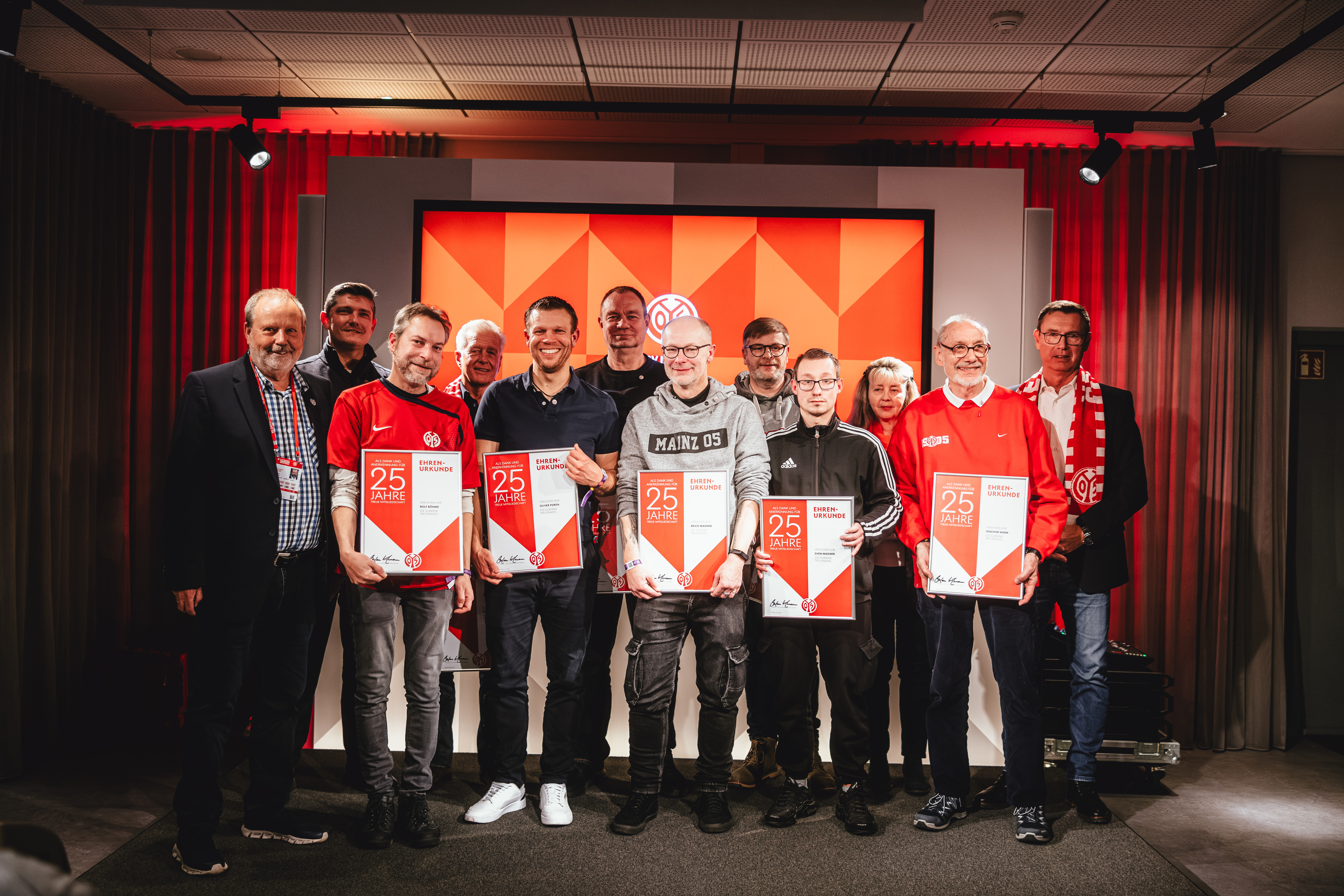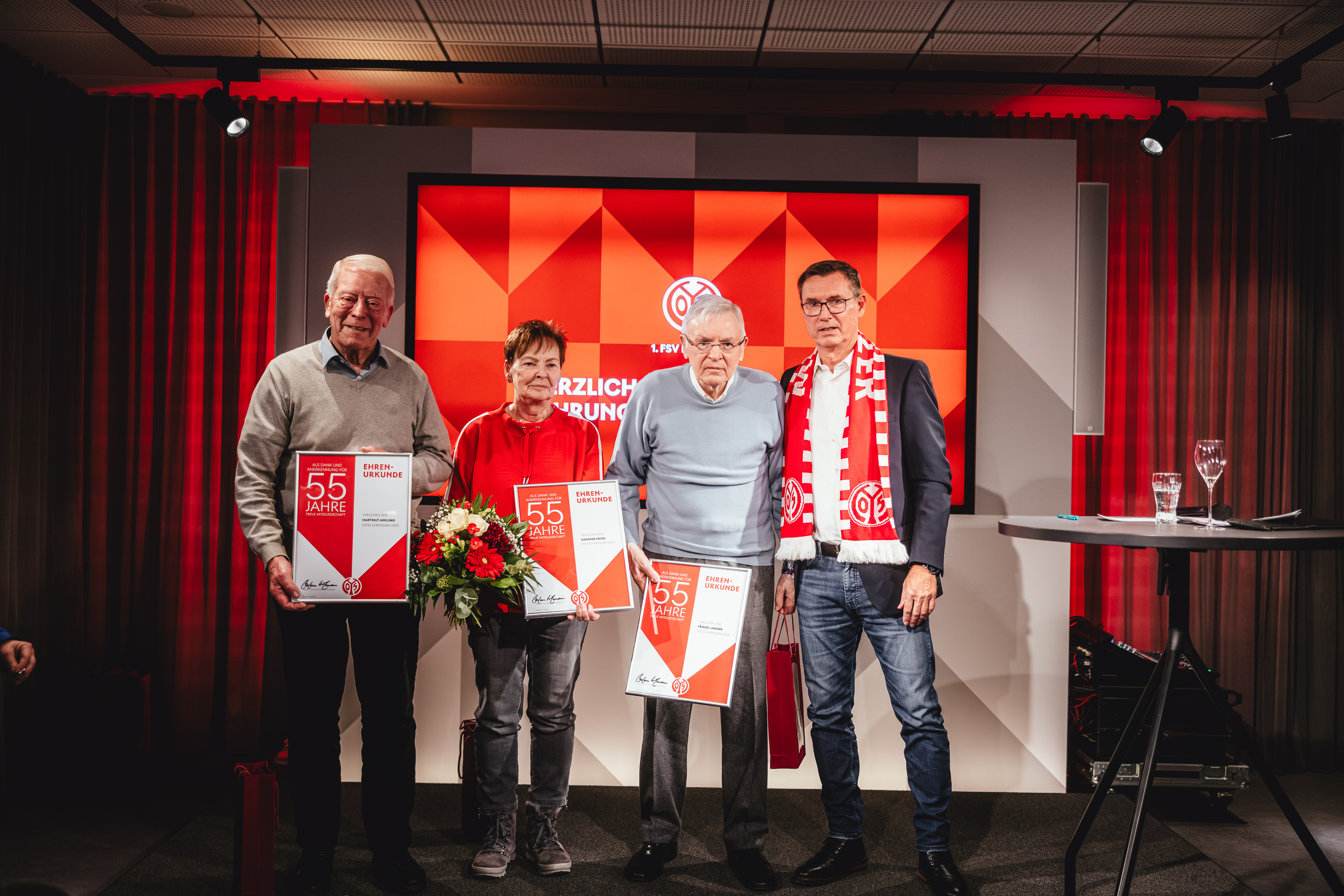 Bereits am vergangenen Freitag im Vorfeld der Partie gegen die TSG 1899 Hoffenheim, und damit drei Tage vor der Mitgliederversammlung 2025, wurden wie jedes Jahr aufs Neue 05-Mitglieder für ihre besonders lange Vereinstreue geehrt. In gebührendem Rahmen im Business-Bereich der MEWA ARENA, begrüßte der Verein, allen voran der Vorstandsvorsitzende Stefan Hofmann, seine Gäste. Einige Mitglieder, die aus verschiedenen Gründen verhindert waren, ließen sich vor Ort vertreten. Jene, die keinen Stellvertreter schicken konnte, erhalten ihre Urkunde zu passender Gelegenheit.