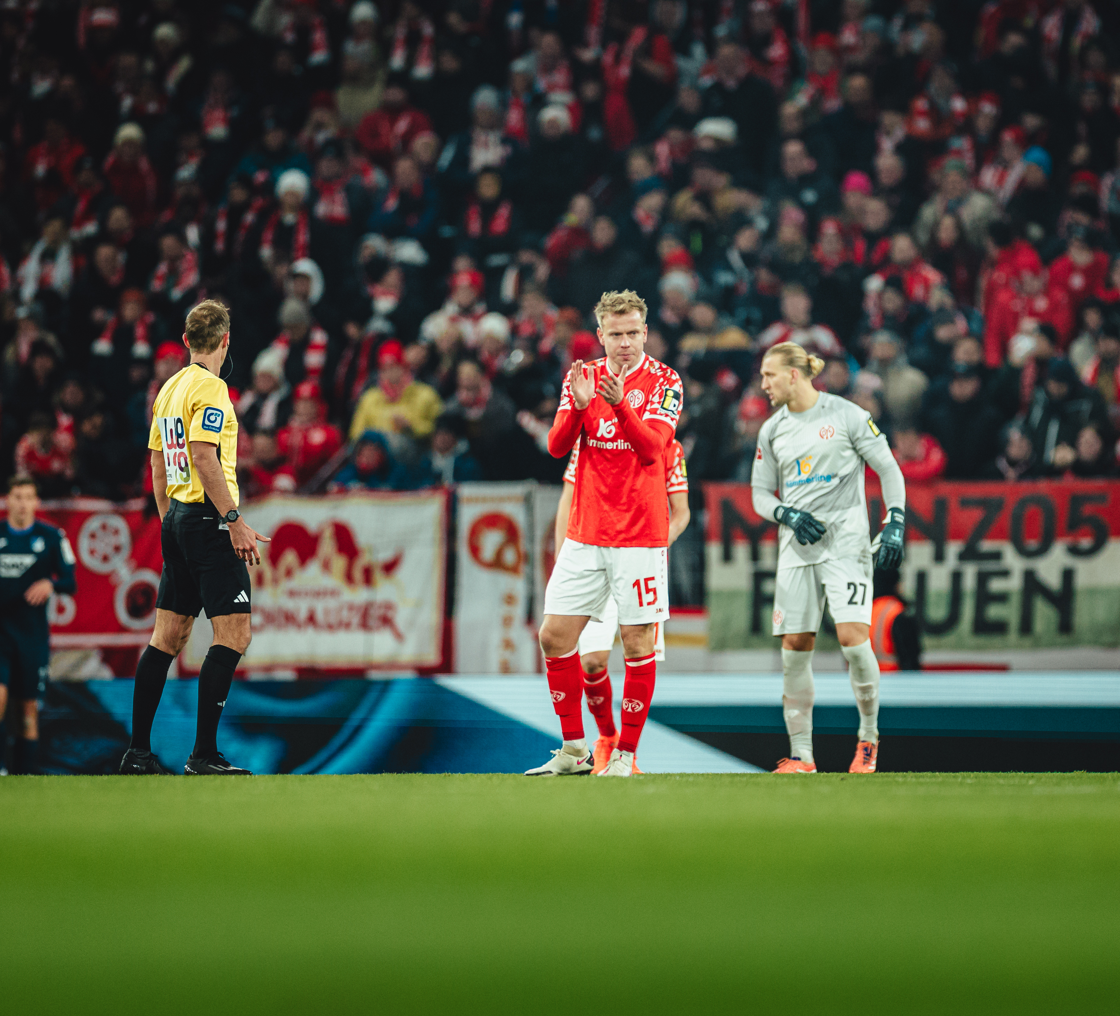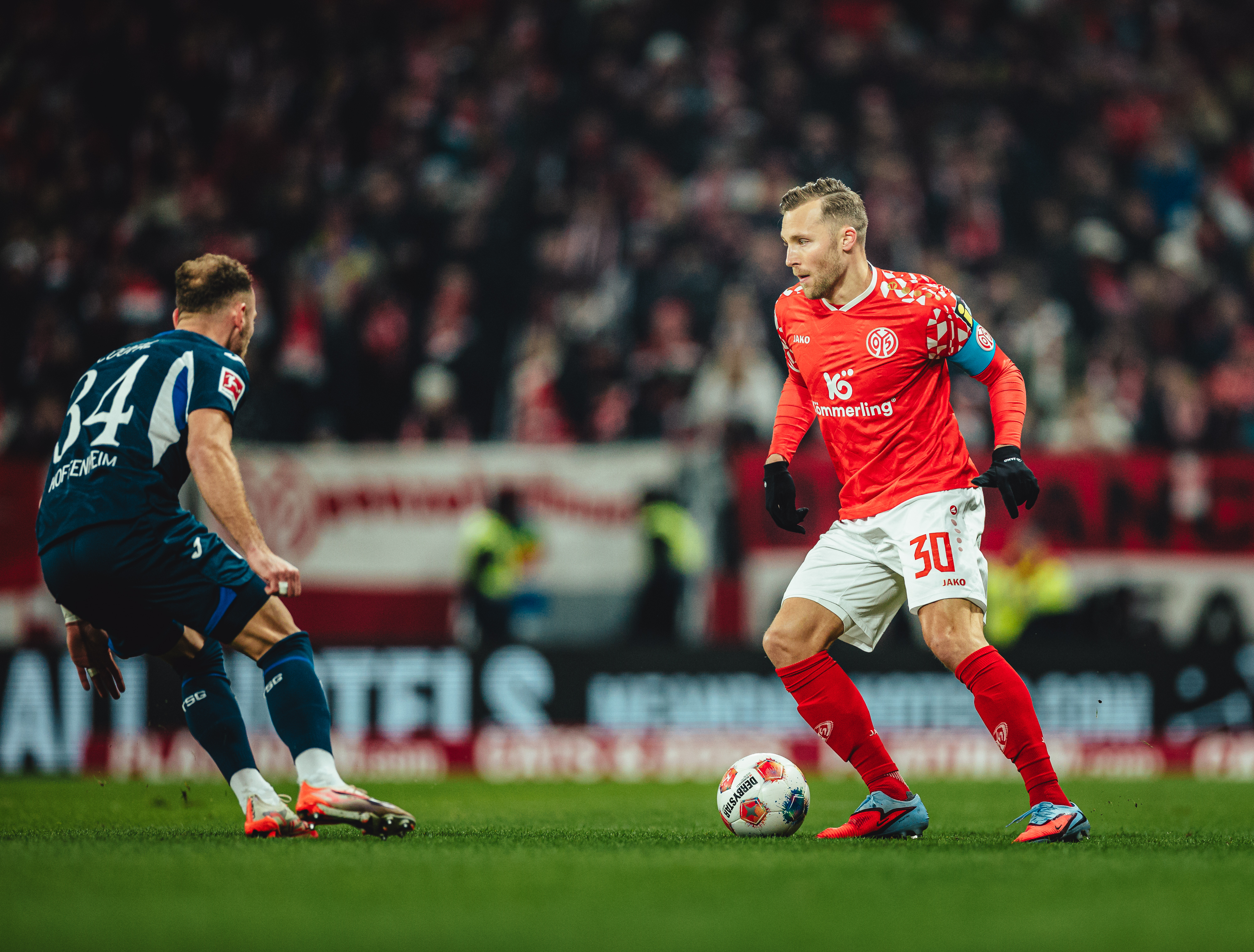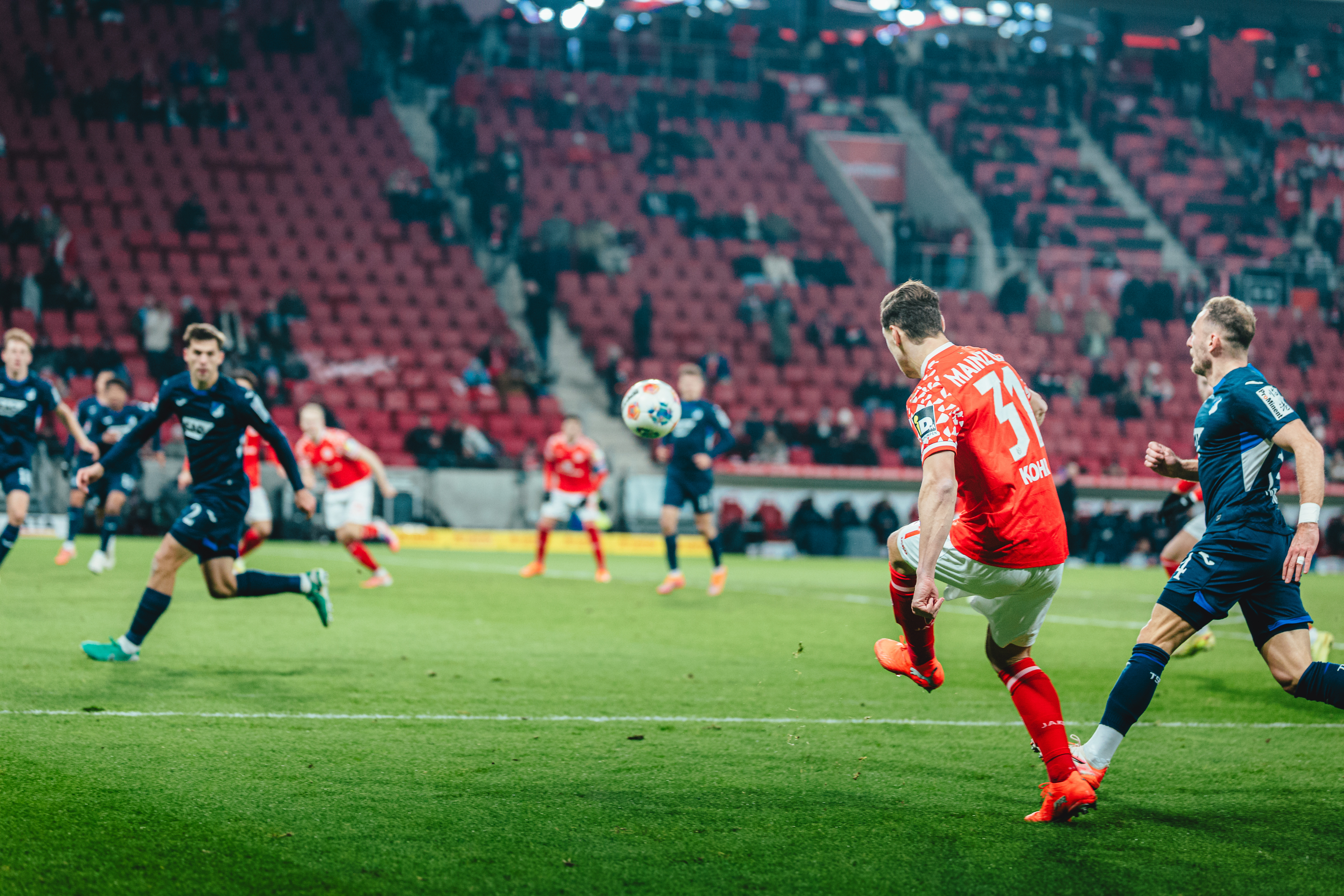 Auch im sechsten Anlauf der Saison hat der 1. FSV Mainz 05 am Freitagabend beim 1:1 (0:1) gegen die TSG 1899 Hoffenheim einen Bundesliga-Heimsieg verpasst. Gegen die Kraichgauer lag das Henriksen-Team zur Pause nach einem Eigentor von Andreas Hanche-Olsen verdient zurück und konnte sich nach einer klaren Leistungssteigerung nach Wiederbeginn nur noch mit dem hochverdienten Ausgleich belohnen, den Joker Danny da Costa besorgte. Bitter für den FSV: Dominik Kohr holte sich in der Schlussphase nach einem Foul an Max Moerstadt im Mittelfeld eine Rote Karte ab und fehlt in den kommenden Wochen in der Bundesliga.