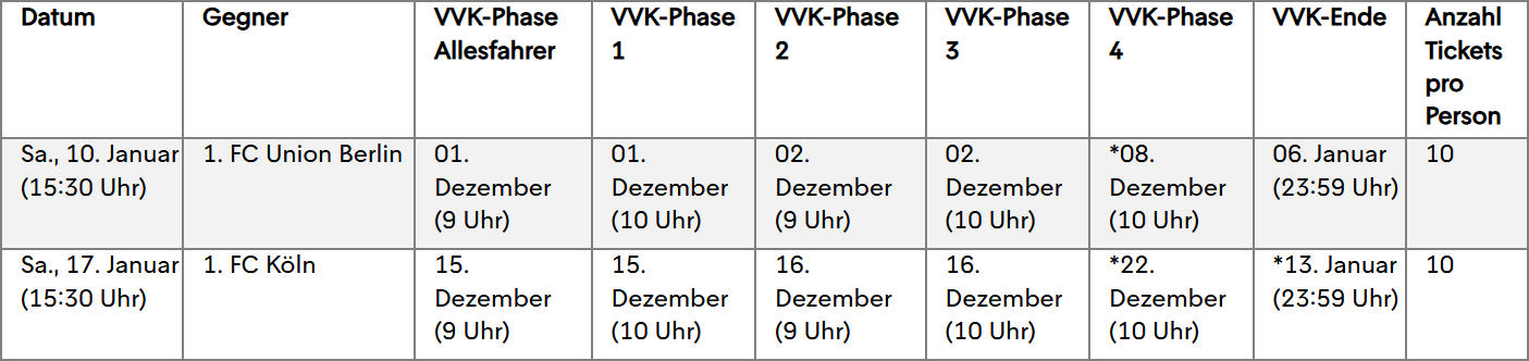 Die Ticketbörse für das Auswärtsspiel beim 1. FC Köln ist bis zum 13. Januar 23.59 Uhr, freigeschaltet.